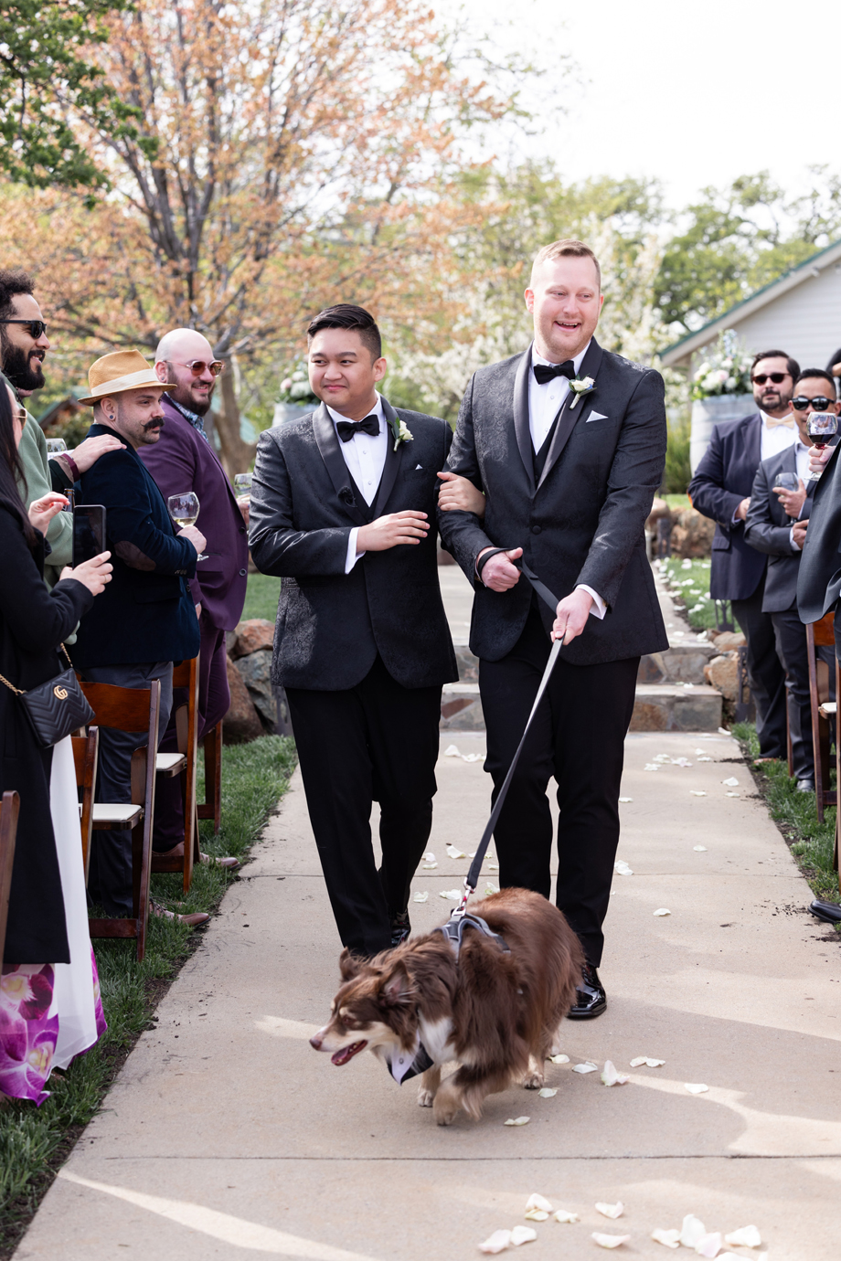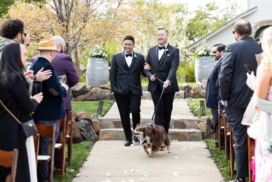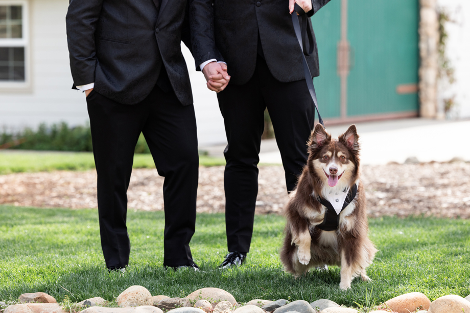 Jimmy and Darwin proceeded to the altar with their doggie, Bear.