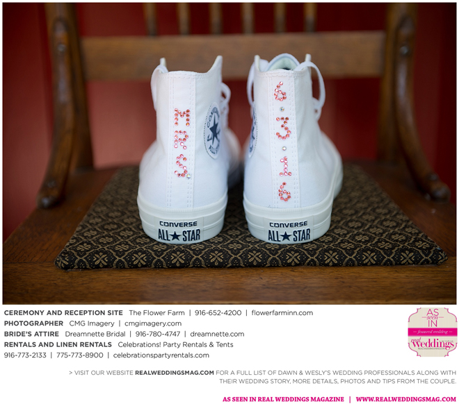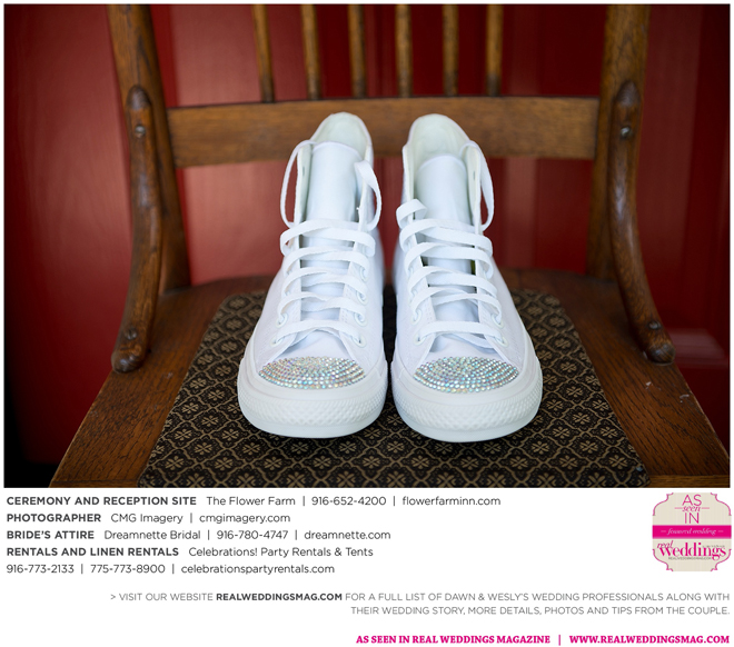 Dawn wore old, her great-grandmother’s pearl necklace and her sister’s pearl earrings, as well as new, white high top Converse that she bedazzled with pink and iridescent rhinestones.