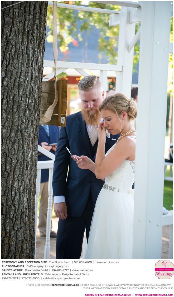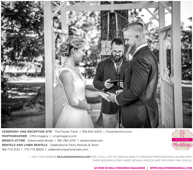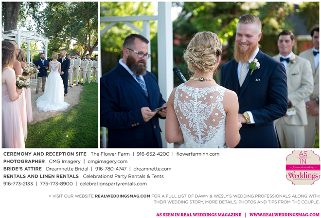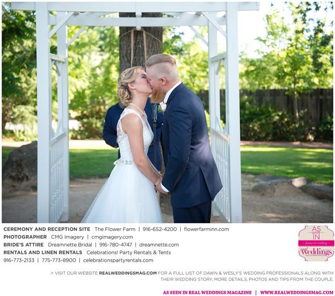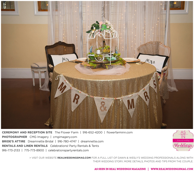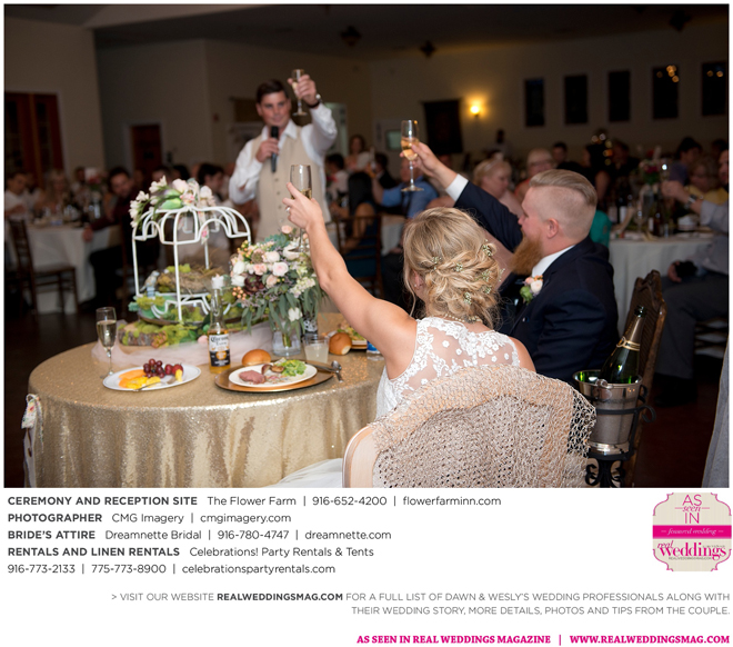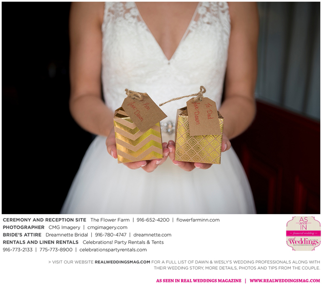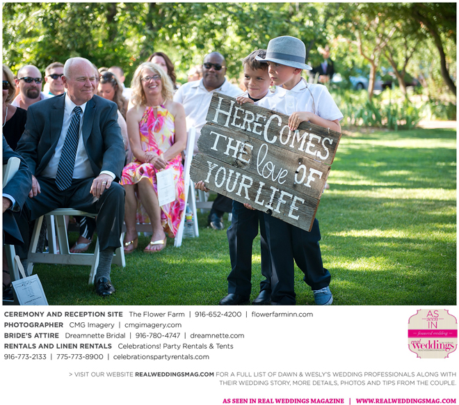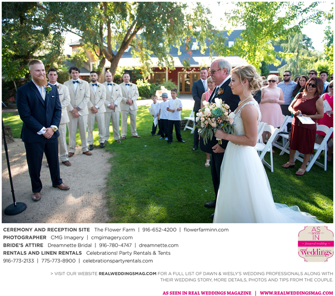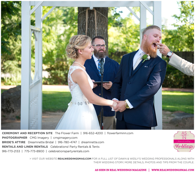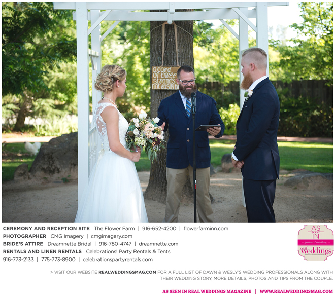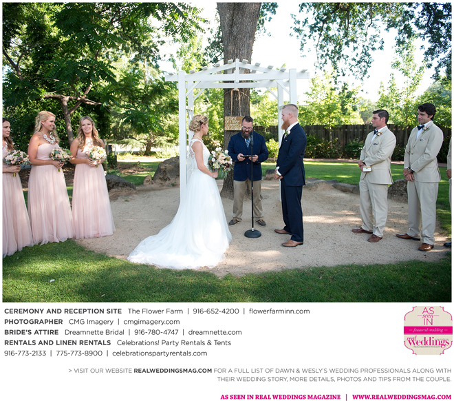 During the ceremony in front of 130 guests, the couple privately exchanged vows. What they didn’t know at the time? Dawn’s sister, the maid of honor, forgot Wes’s ring so another bridesmaid sneaked off in the middle of the ceremony to get it.