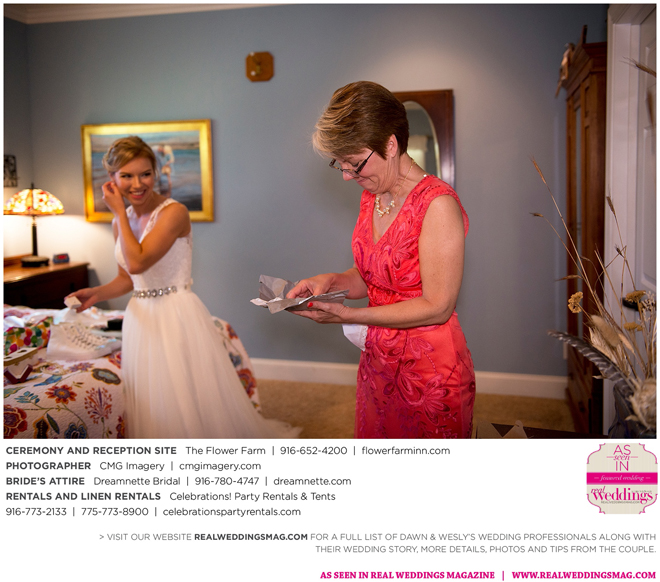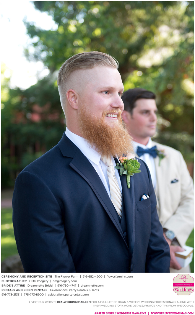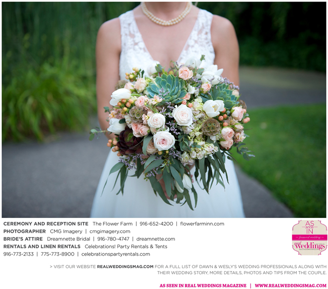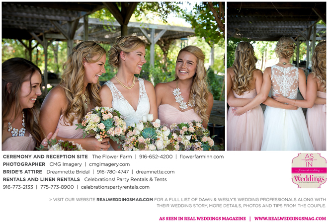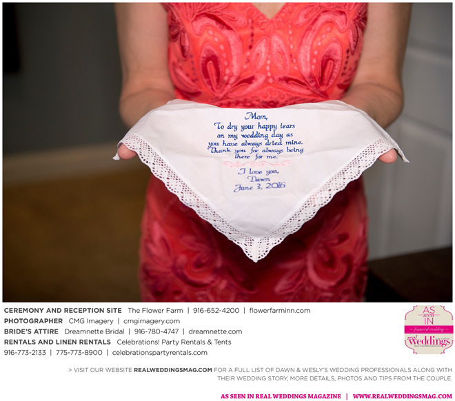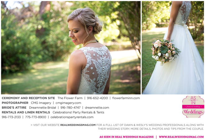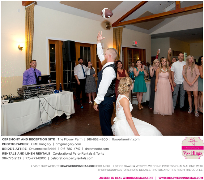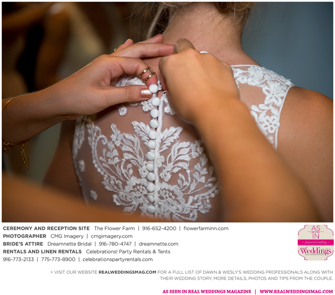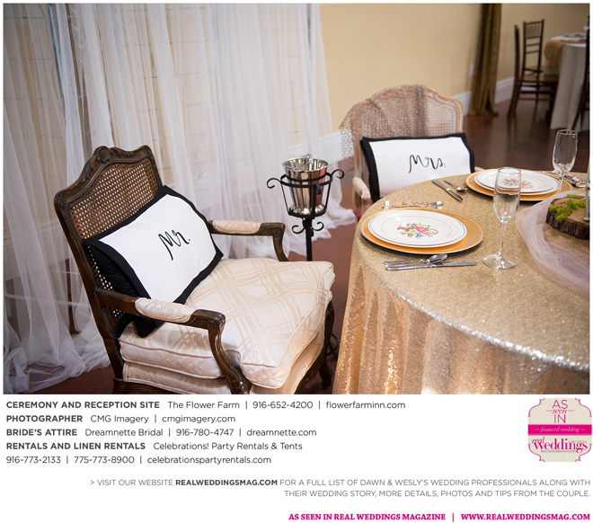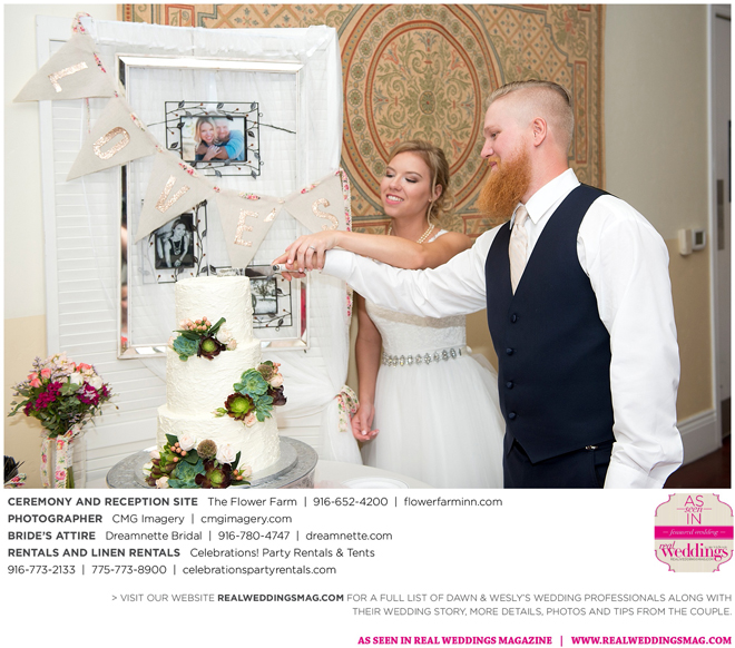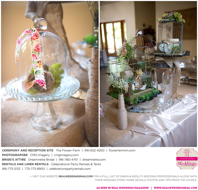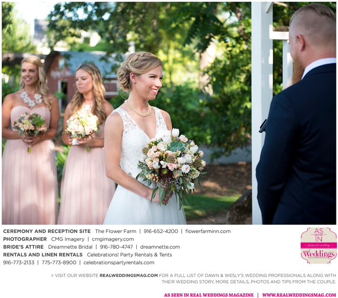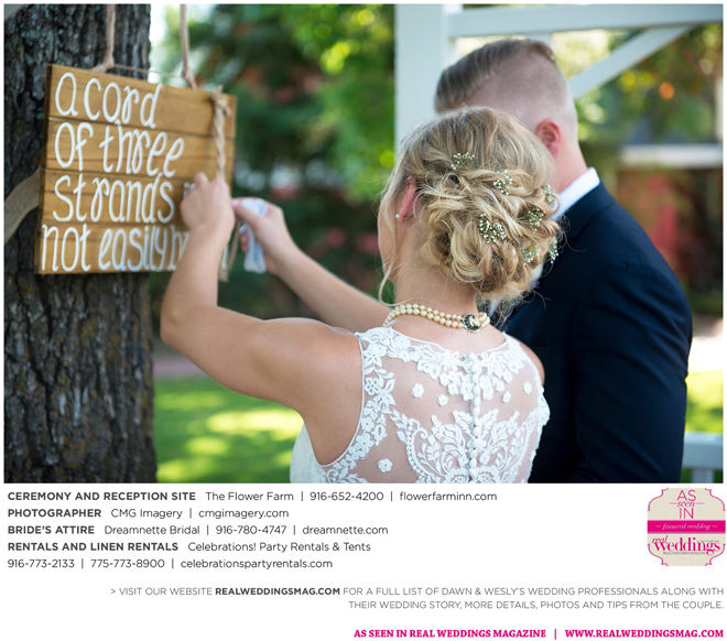 During the ceremony in front of 130 guests, the couple privately exchanged vows. What they didn’t know at the time? Dawn’s sister, the maid of honor, forgot Wes’s ring so another bridesmaid sneaked off in the middle of the ceremony to get it.