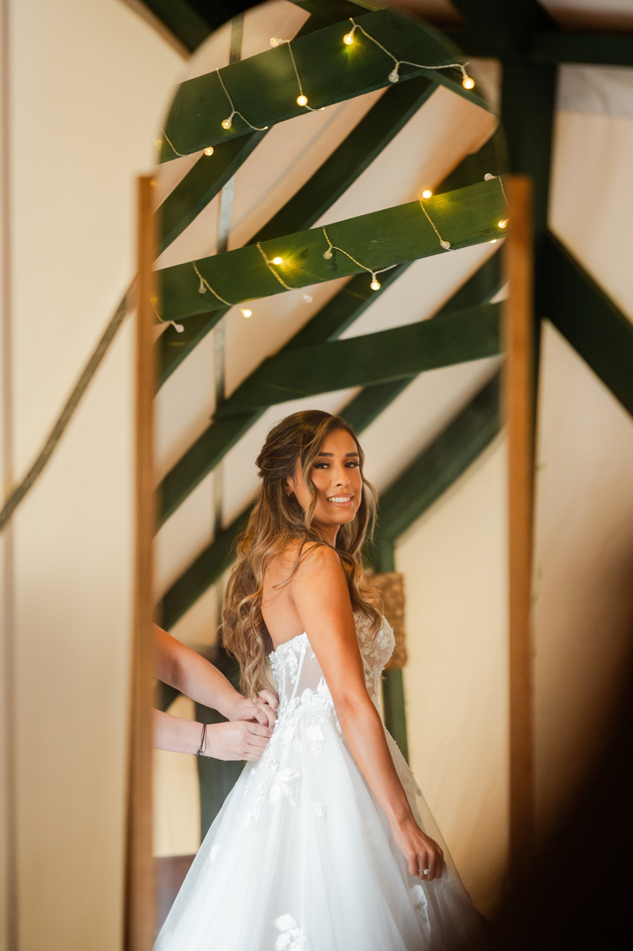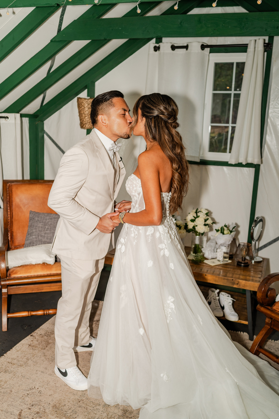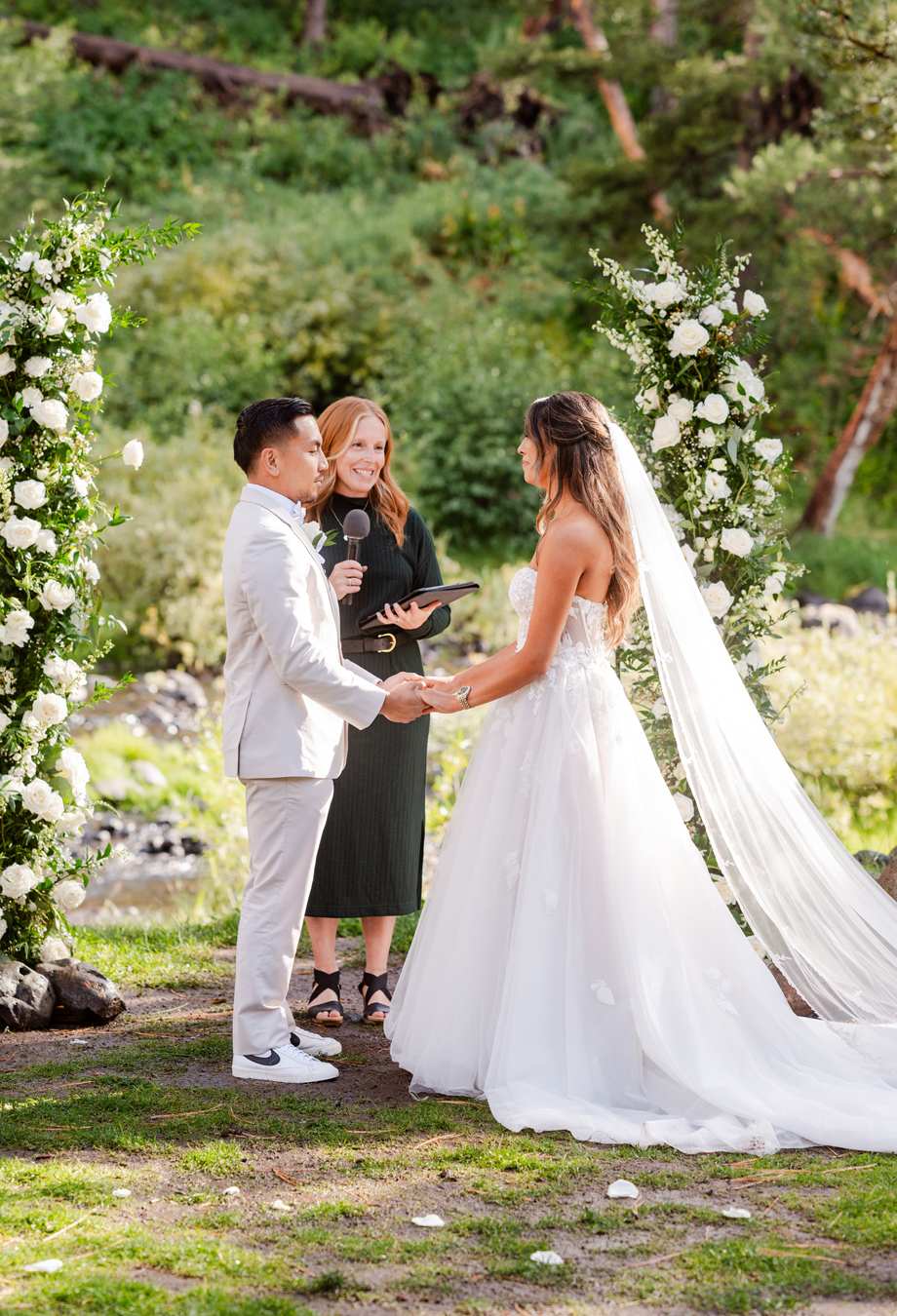 We’re both shy so opted for a ceremony where our officiant spoke the most. I was nervous it might not feel personal but I was wrong! Our officiant, Meghan, sent us each a questionnaire, which we both answered privately. She then crafted a script that felt so personal—sharing bits and pieces of our feelings toward each another and our love story.