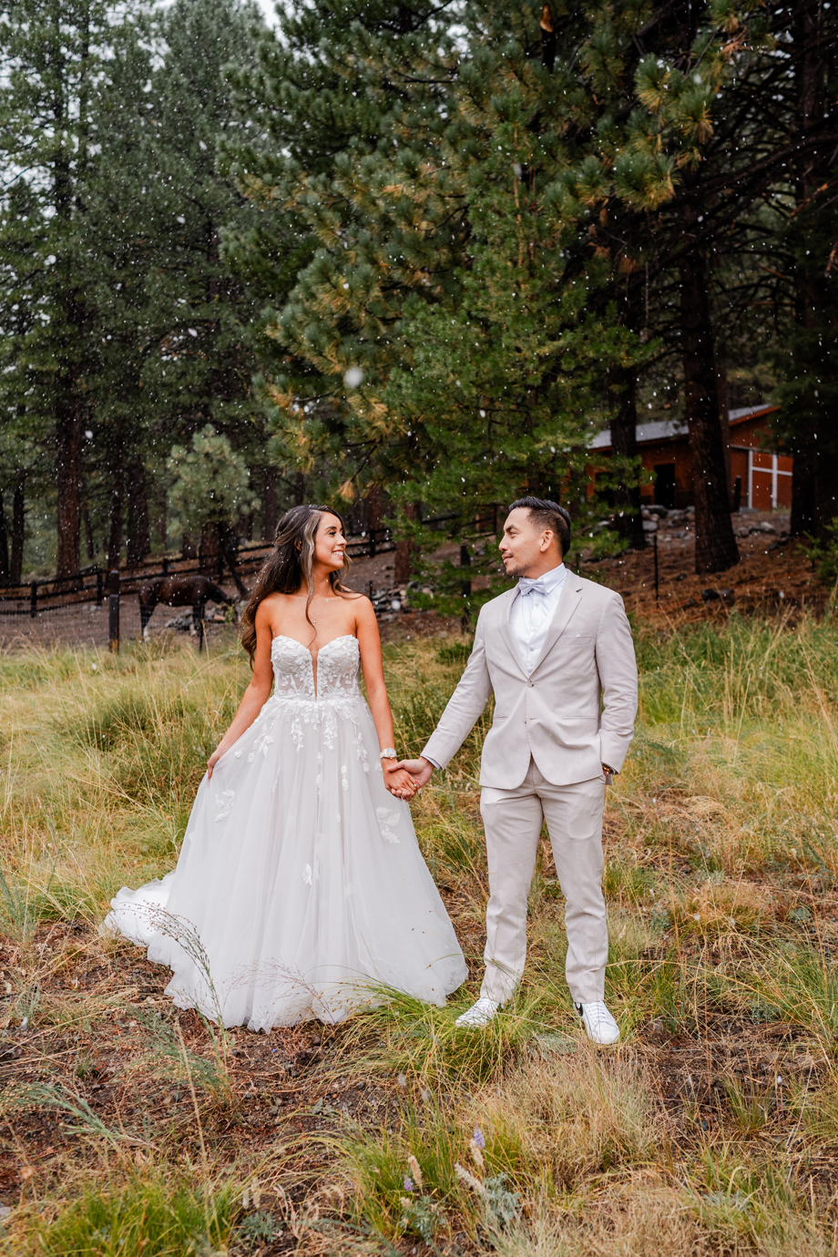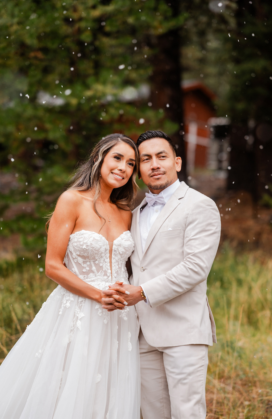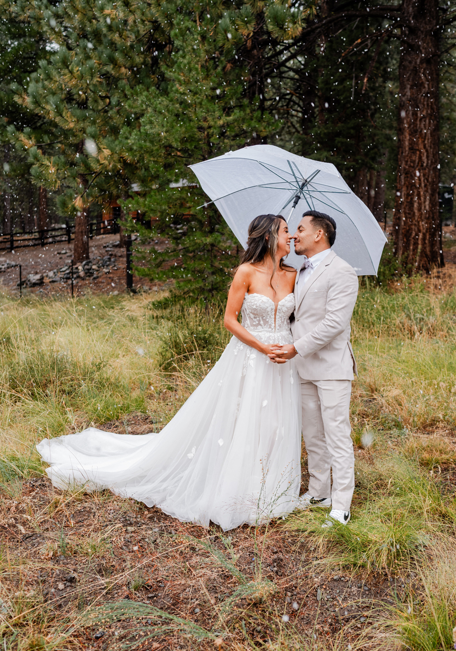 The rain in the morning was expected but the snow was a complete shock. We went with it, however, and got some beautiful wedding pictures and video footage with the drama of the snow falling!