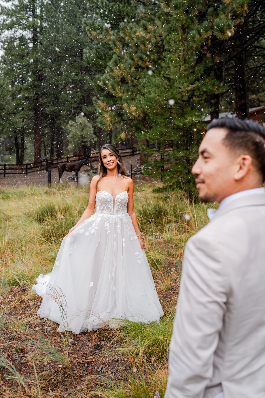John: The pivotal turning point in the weather. Hours before the scheduled ceremony time, we were covered in rain and then snow with what seemed like no end in sight. Our guests were holed up in their cars in the venue parking lot riding out the storm. Our wedding planners were working on a backup plan. Then, just 20-30 minutes before the ceremony, the clouds parted and the sun came out. It made the ceremony that much more memorable.