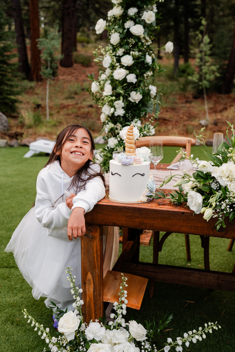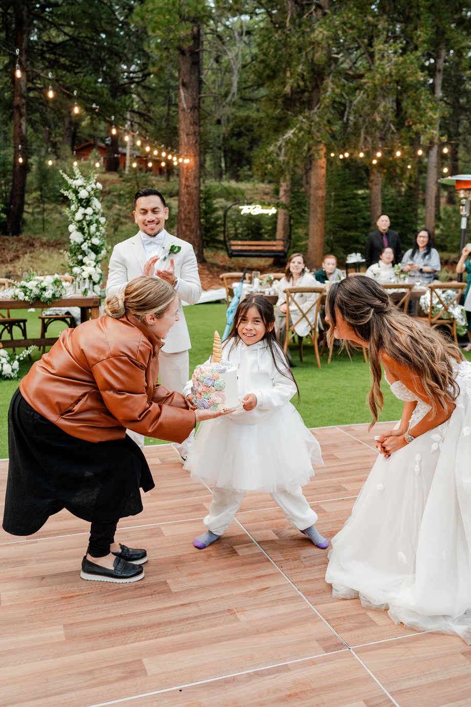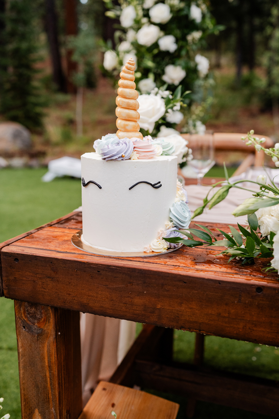 We opted out of a wedding cake and got our daughter—whose birthday was a week after the wedding—a unicorn cake instead, so the whole family could sing “Happy Birthday” to her during the reception.