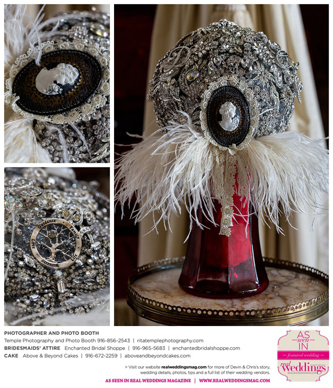 I walked down the aisle holding a handmade brooch bouquet that contained antique brooches from all the women in my family.