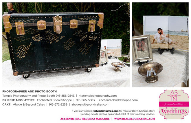 The wedding’s style was romantic, vintage and antique. Devin’s favorite details included a vintage trunk sign and her bouquet. “They both turned out great and are items I will always hold on to and treasure. When we have guests over, those two items get a lot of attention,” she says.