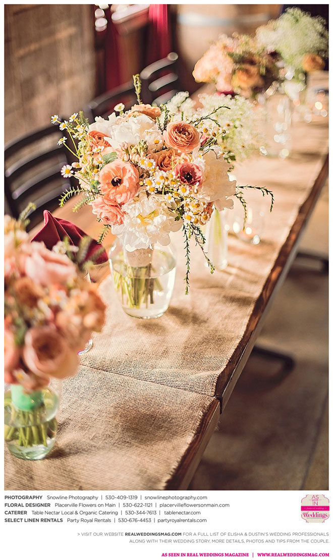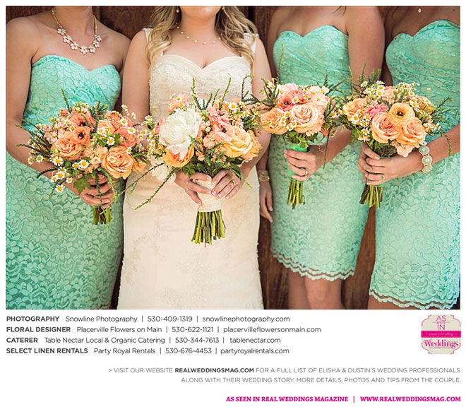 Though they went with a traditional ceremony, they chose a fresh color palette of mint and peach to bring out the cheerful and bright feel of their springtime wedding. Elisha wanted to incorporate a rustic feel to their reception, opting to use her DIY skills to create unique décor. The beauty of these personal touches, Elisha says, gave her family and friends a more intimate experience. “It’s important to be able to look back on that day with no regrets,” she says, “so being true to what you want is very important.”