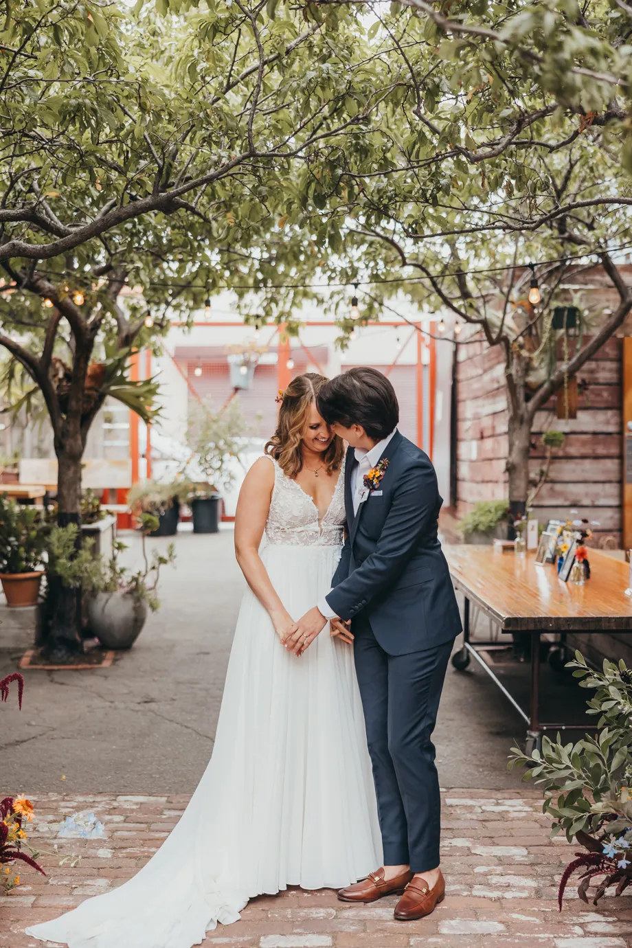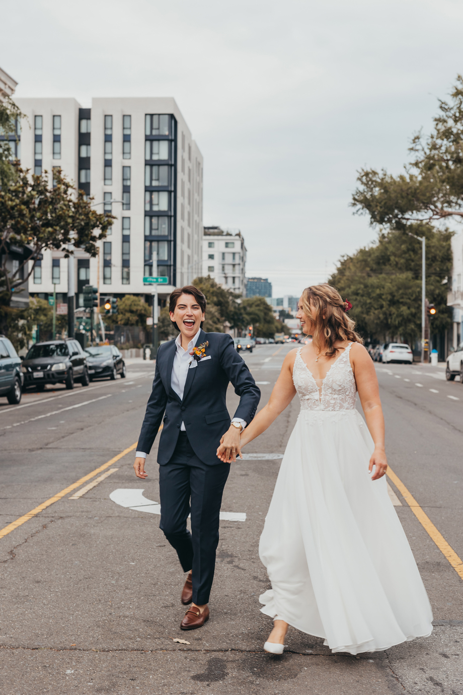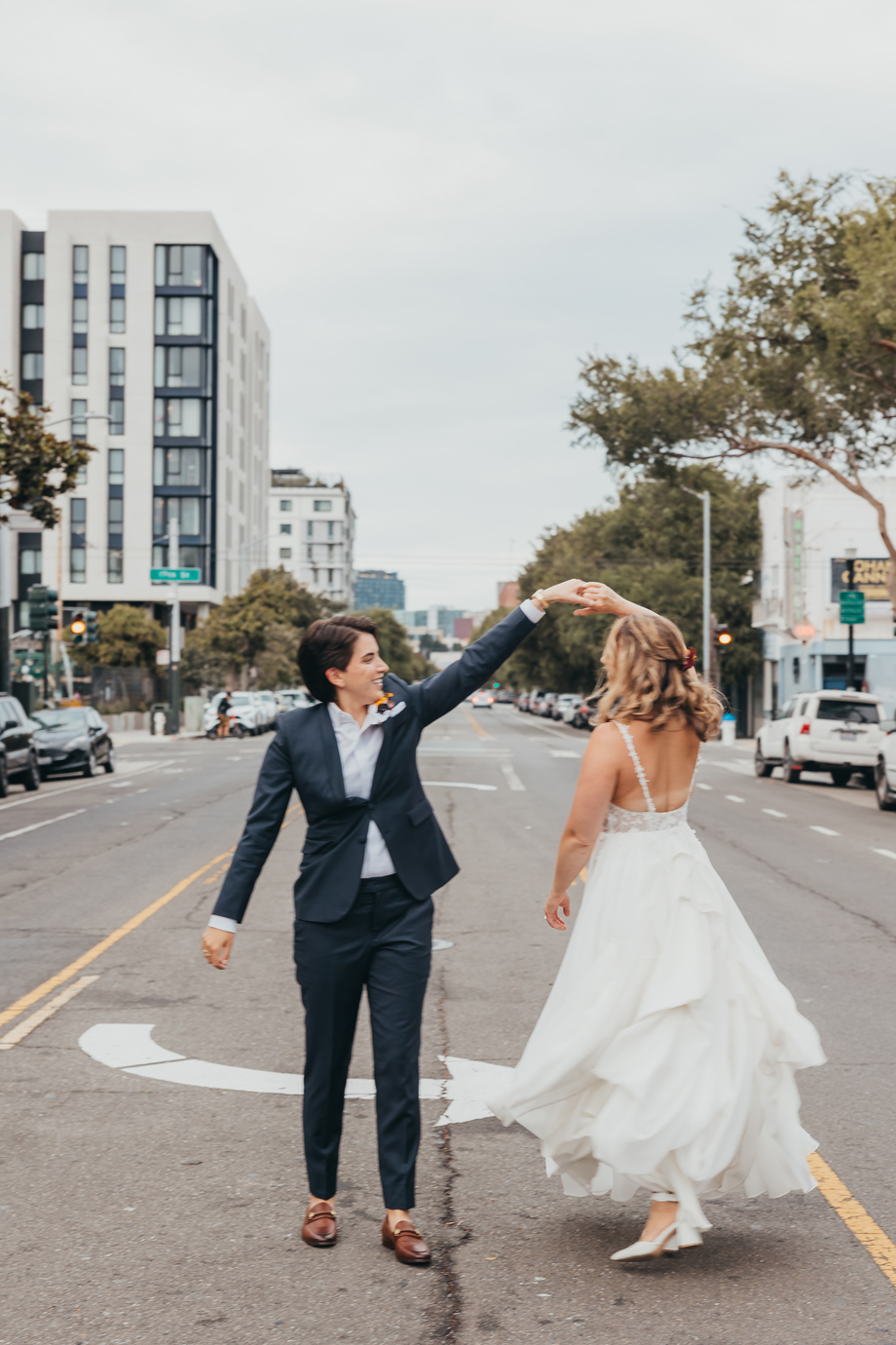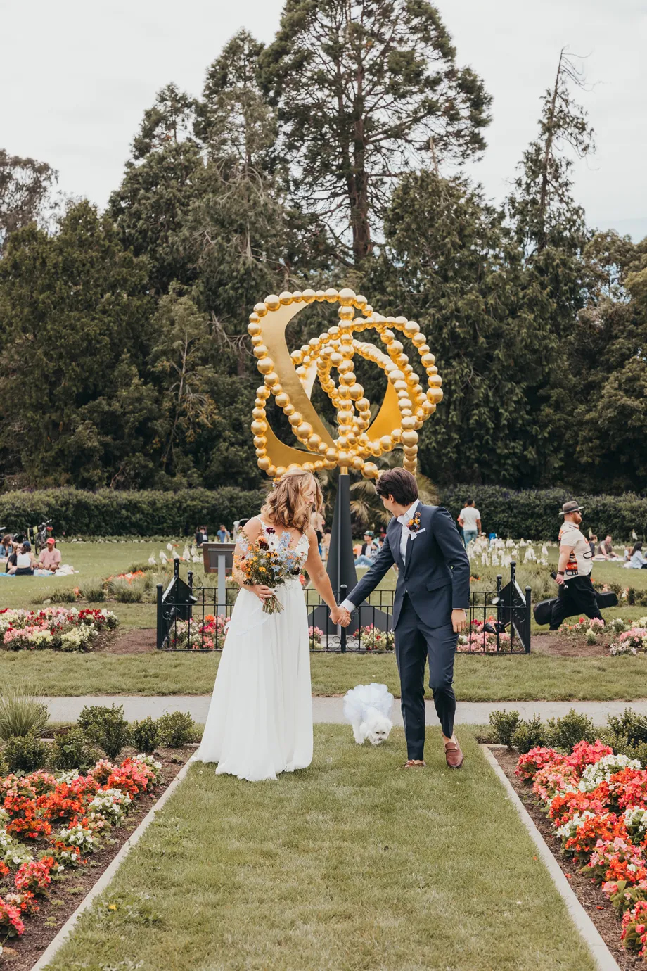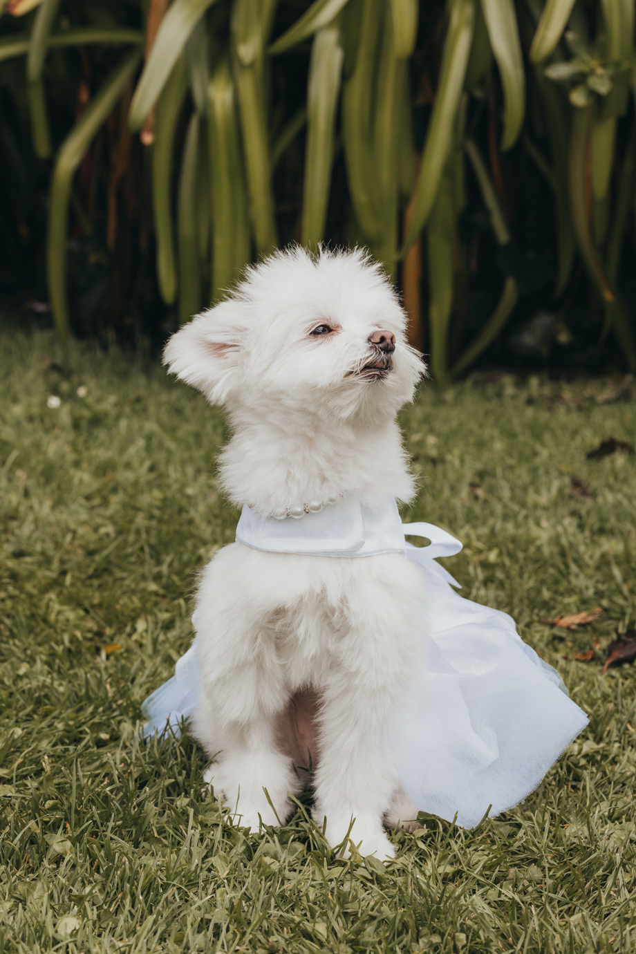 We had our dog, Lola, come down the aisle in a decorated wagon. She is our princess so it was very fitting. She was pulled by our flower girl, Eva, which was very special. Our close friend officiated the ceremony and we had another close friend read a poem by Frida Kahlo.