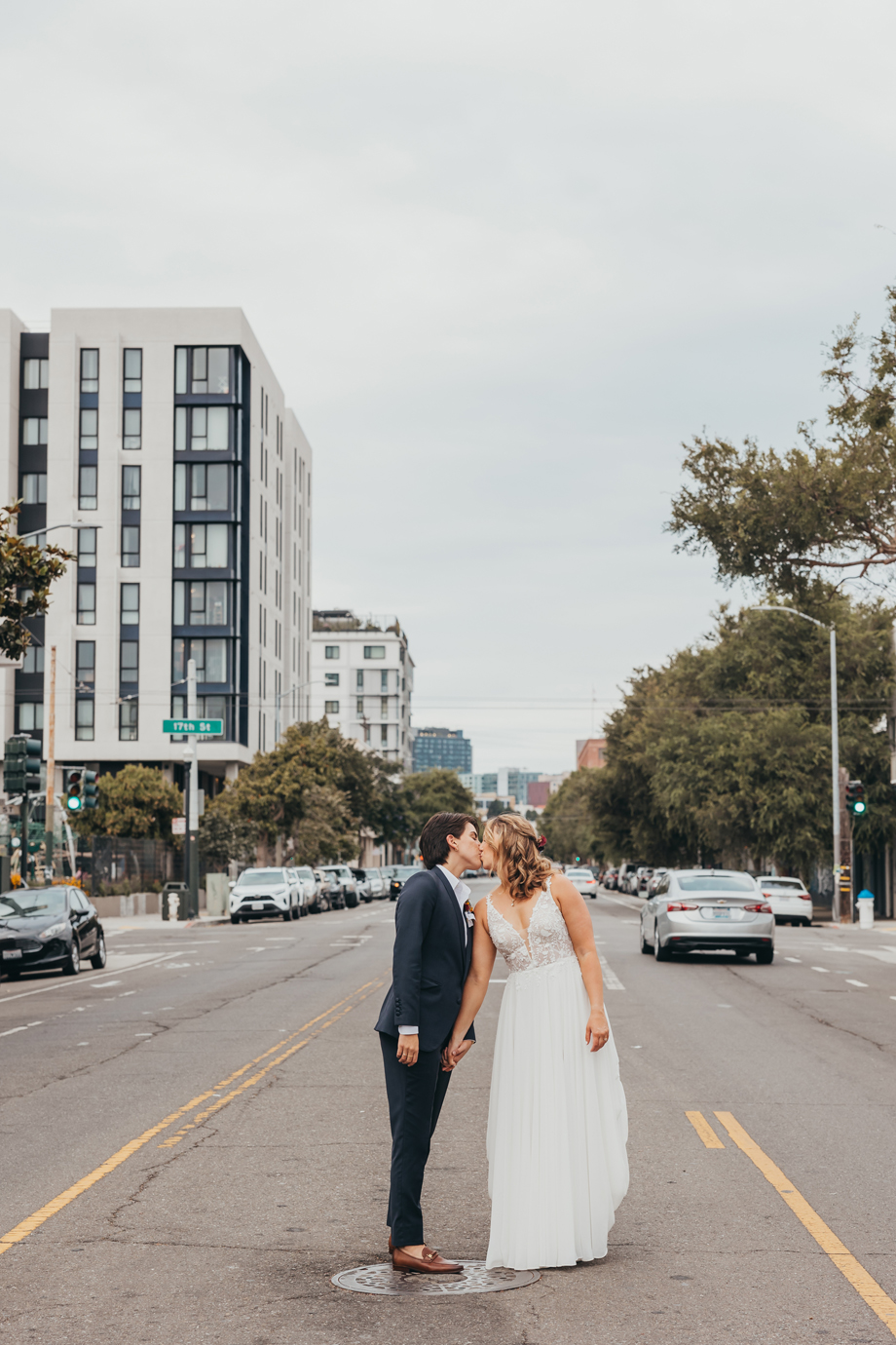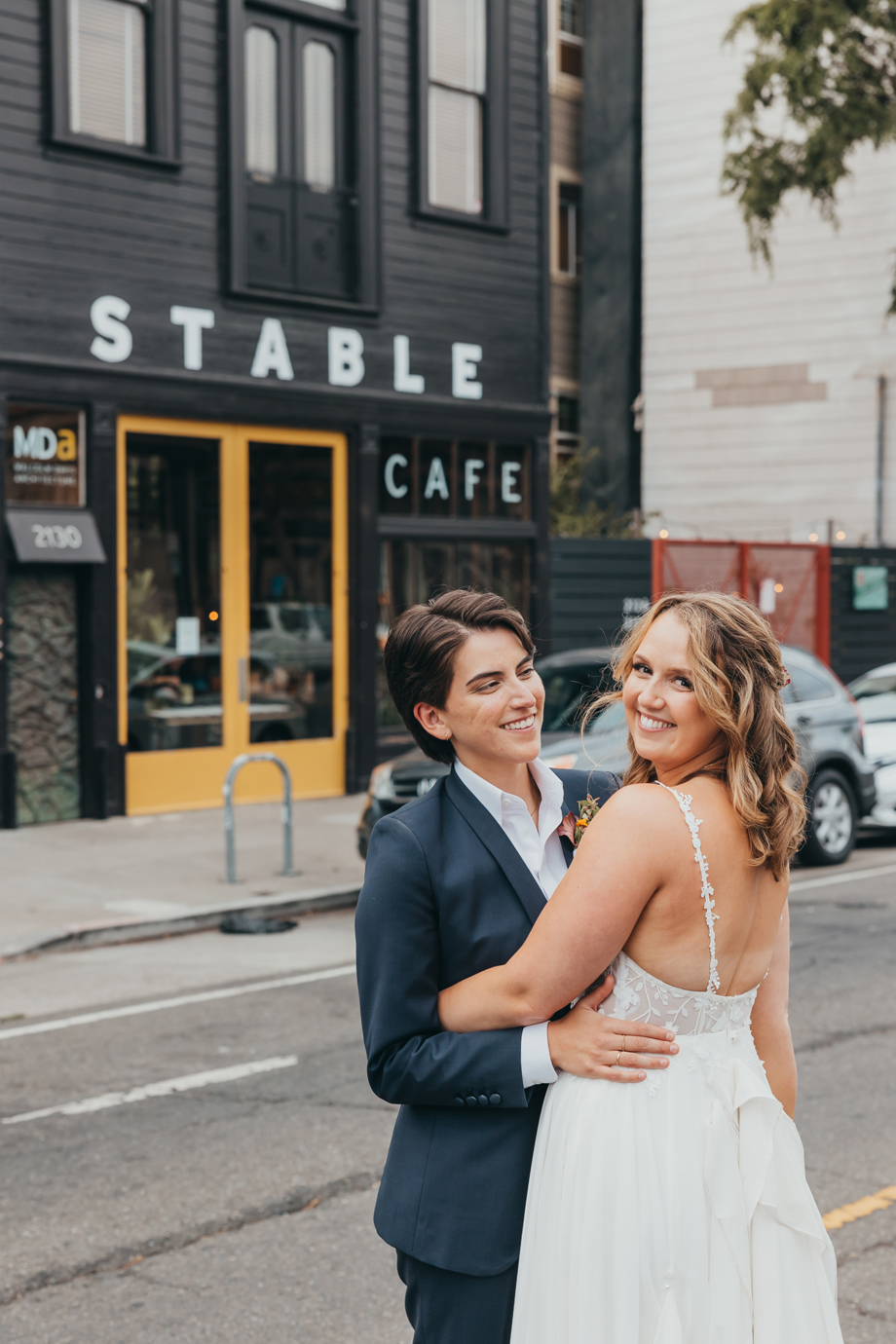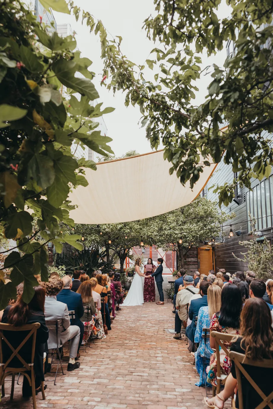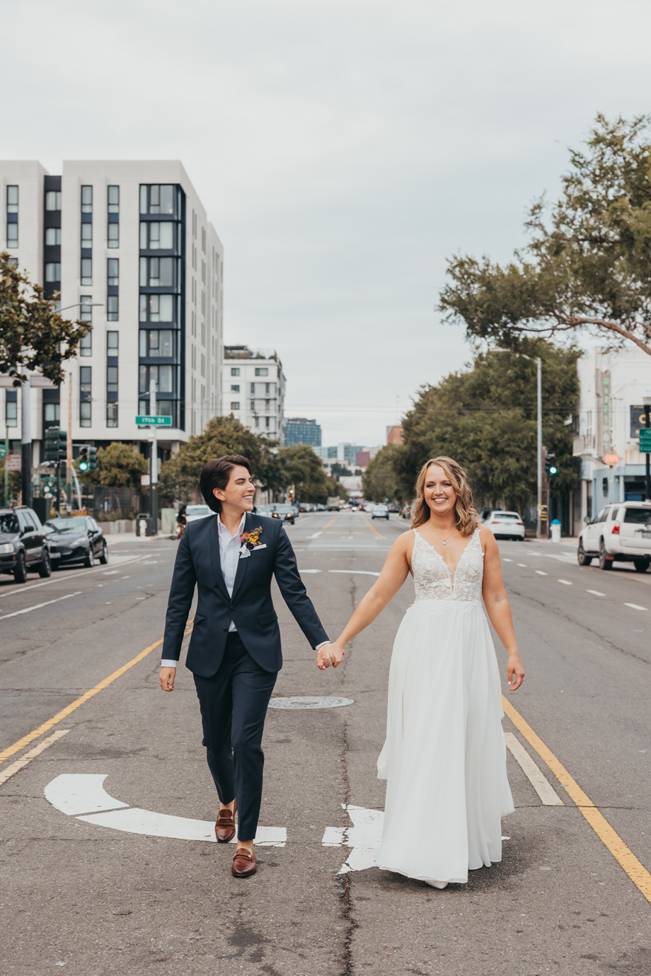 We had our dog, Lola, come down the aisle in a decorated wagon. She is our princess so it was very fitting. She was pulled by our flower girl, Eva, which was very special. Our close friend officiated the ceremony and we had another close friend read a poem by Frida Kahlo.