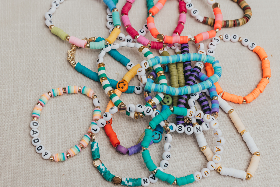 We made friendship bracelets for everyone at the wedding. Some of them were inside jokes and some of them were just random funny words. Our guests loved them so much and spent the whole night trading them with each other.