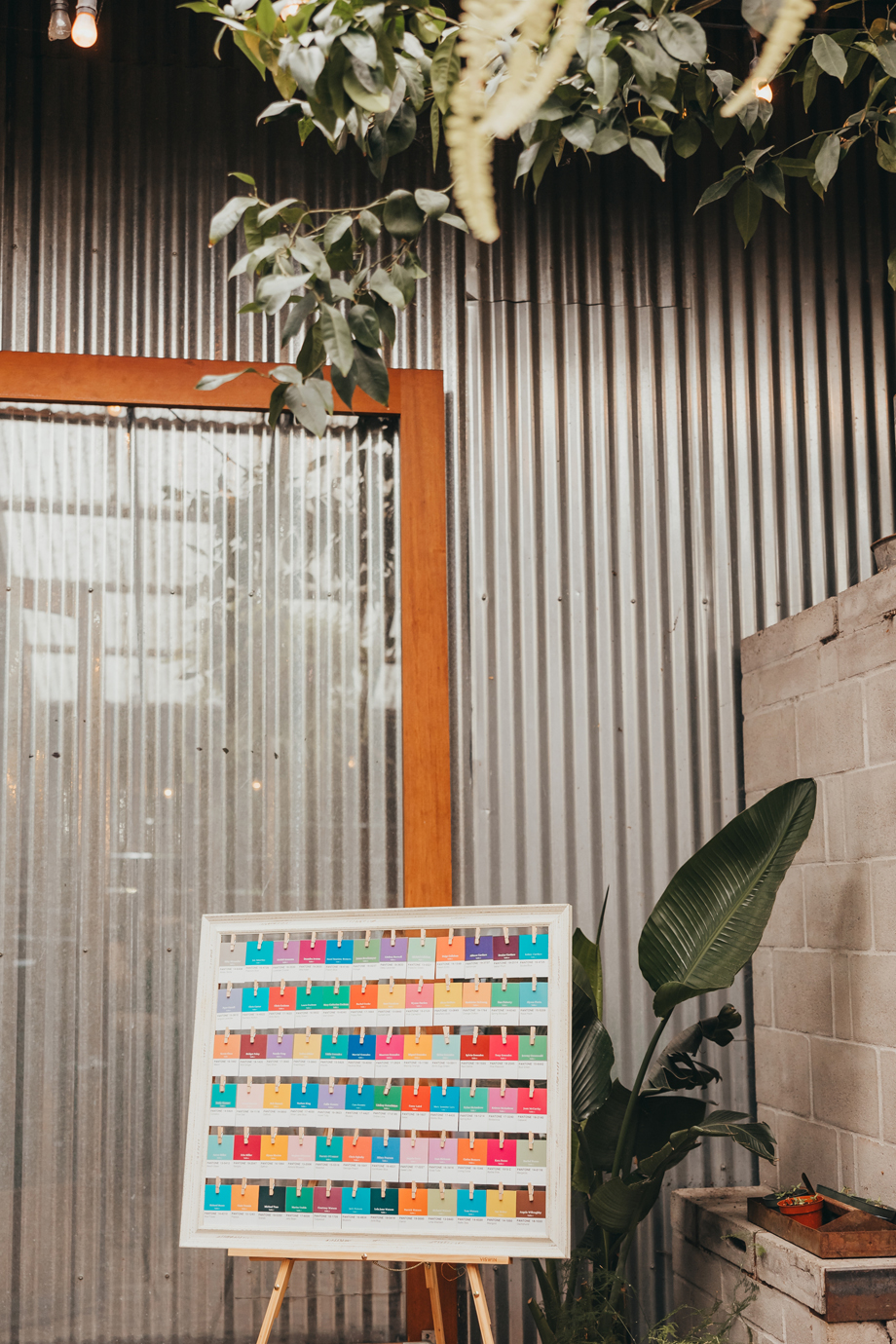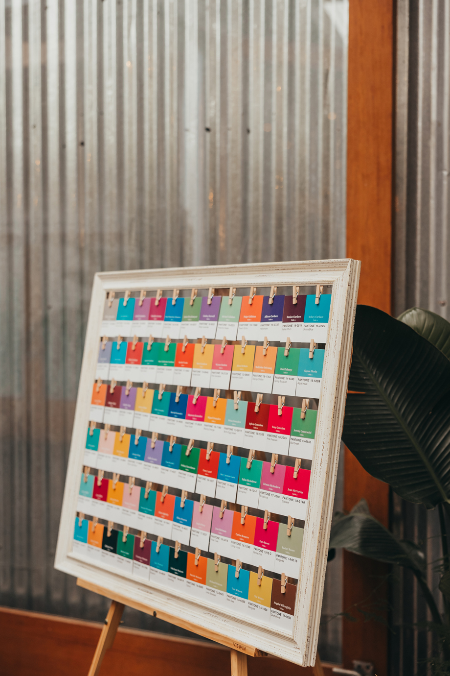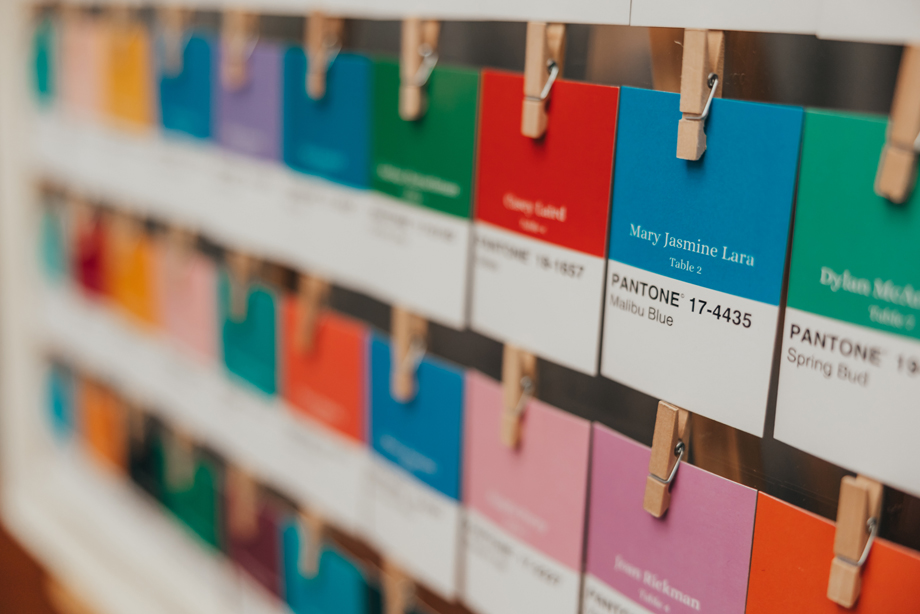I loved the escort cards that Liz made, which were Pantone cards with a specific color assigned to each person based on their personality.