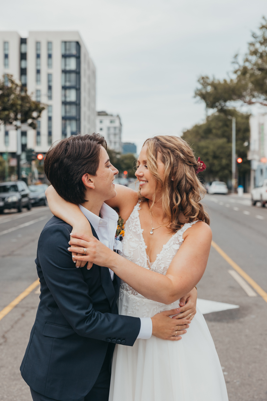 We got engaged in May 2022 when Veronica proposed to Liz on a foggy hike near the golden gate bridge. Liz surprised Veronica by proposing back with a ring she had been carrying with her for several months, for this exact moment.