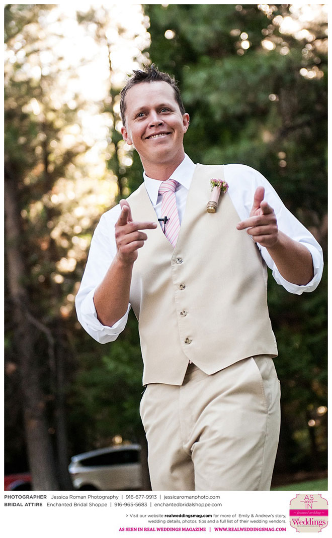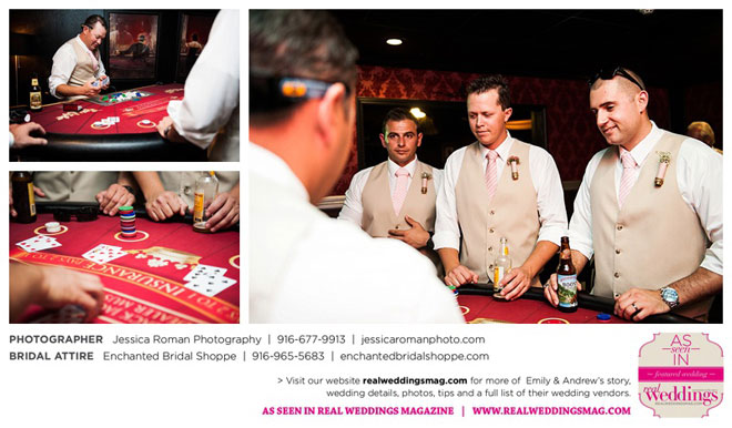 He planned a banner evening of Cirque du Soleil, the Bellagio fountains, the gondola at The Venetian and reservations at a top-notch steakhouse, where he proposed over dessert. Emily could tell something was amiss, but only later did she find out “the main reason Andy was acting so strange was because he hadn’t planned the exact place or time he would propose during the night, so at every stop…he debated on whether [it] was the perfect time and place. It literally made him sick!”