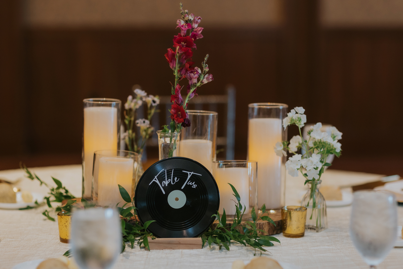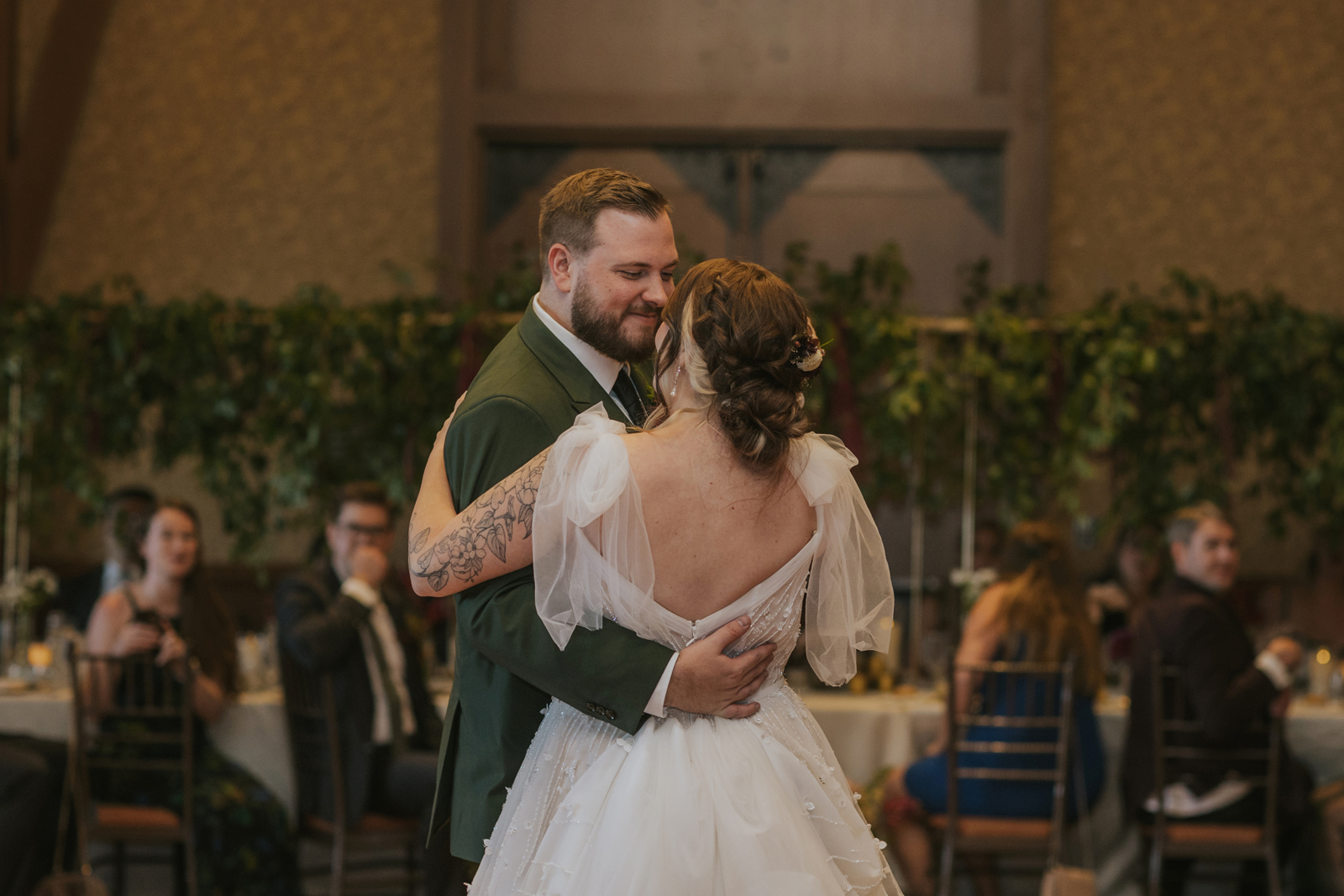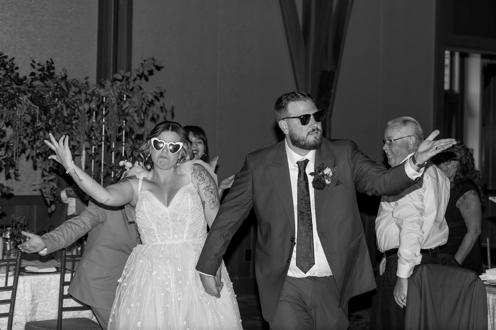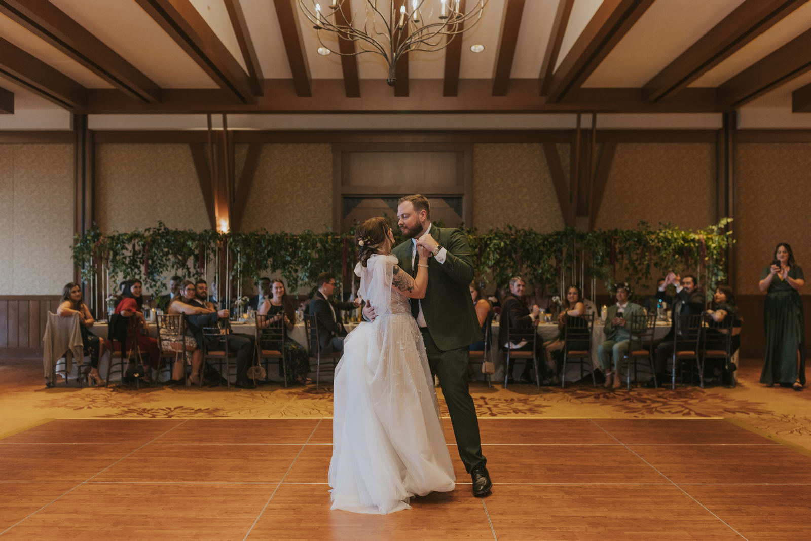 Our reception was so fun! Starting off with a bang – Jake and I entered to the Succession theme song and our guest LOVED it! Followed by Jake’s dance with his sisters. Unfortunately, his mom passed away seven years ago, but he chose to dance with his sisters to her favorite song. It was a really sweet way to honor her and his sisters. Our photo booth was also a blast! all of our guests loved it and Cody, the attendant from Epik, was so awesome! He got everyone hyped up about the booth. Epik even gave us a book filled with all the pictures to take home that night too. It was such a sweet surprise! We used After the Tone as our guestbook and it was such an awesome alternative to the usual guest books! We got our voicemails back and it is such an amazing memento of the day. We can tell our guests really had fun with it. Now we have something to listening to every anniversary! Lastly the dance floor! We LOVE a wedding dance floor! We truly danced all night even when guests were taking a break you could always find us on the dance floor. At one point, “Sugar We’re Going Down” by Fallout Boy came on and the room erupted! Everyone 40 and under was on the dance floor, we even had two mosh pits and a circle pit going! We were all screaming our lungs out and we will remember that forever. The last song of the night was “First Date” by Blink 182! Our wedding party actually walked down the aisle to an instrumental version of this song for the ceremony so this was such a great way to tie in the ceremony to the reception! Also who doesn’t wanna go feral with all their buds to Blink?!