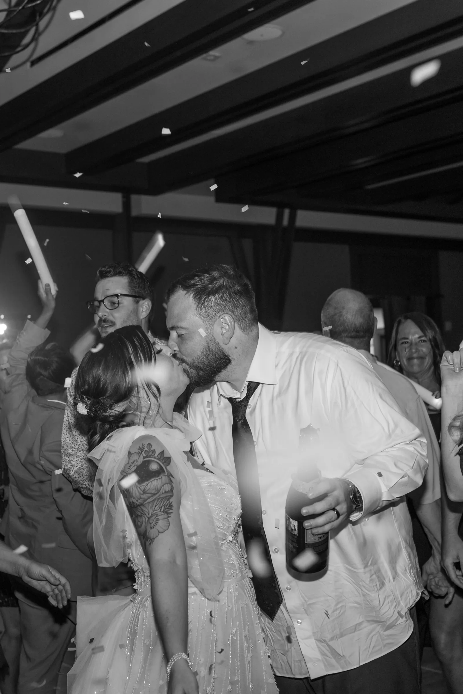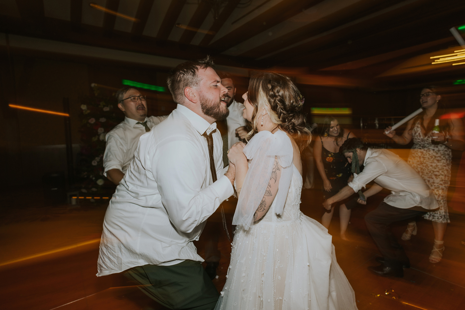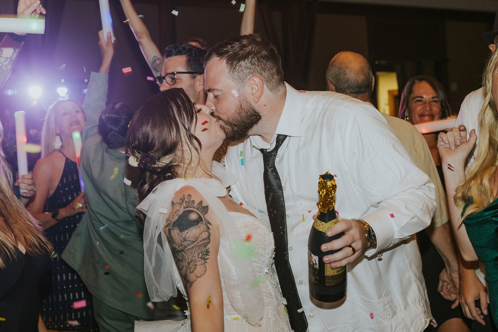 Our reception was so fun! Starting off with a bang – Jake and I entered to the Succession theme song and our guest LOVED it! Followed by Jake’s dance with his sisters. Unfortunately, his mom passed away seven years ago, but he chose to dance with his sisters to her favorite song. It was a really sweet way to honor her and his sisters. Our photo booth was also a blast! all of our guests loved it and Cody, the attendant from Epik, was so awesome! He got everyone hyped up about the booth. Epik even gave us a book filled with all the pictures to take home that night too. It was such a sweet surprise! We used After the Tone as our guestbook and it was such an awesome alternative to the usual guest books! We got our voicemails back and it is such an amazing memento of the day. We can tell our guests really had fun with it. Now we have something to listening to every anniversary! Lastly the dance floor! We LOVE a wedding dance floor! We truly danced all night even when guests were taking a break you could always find us on the dance floor. At one point, “Sugar We’re Going Down” by Fallout Boy came on and the room erupted! Everyone 40 and under was on the dance floor, we even had two mosh pits and a circle pit going! We were all screaming our lungs out and we will remember that forever. The last song of the night was “First Date” by Blink 182! Our wedding party actually walked down the aisle to an instrumental version of this song for the ceremony so this was such a great way to tie in the ceremony to the reception! Also who doesn’t wanna go feral with all their buds to Blink?!