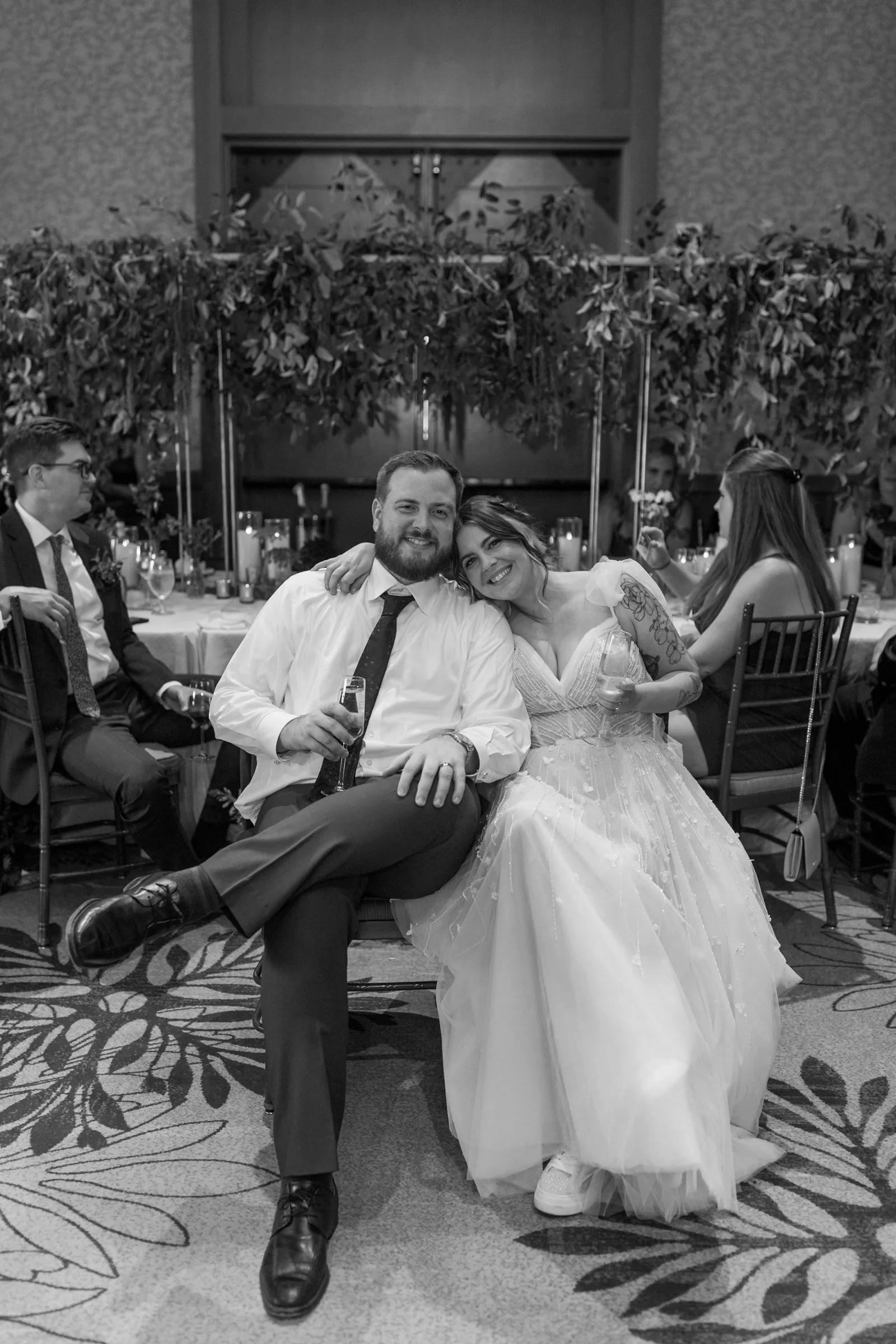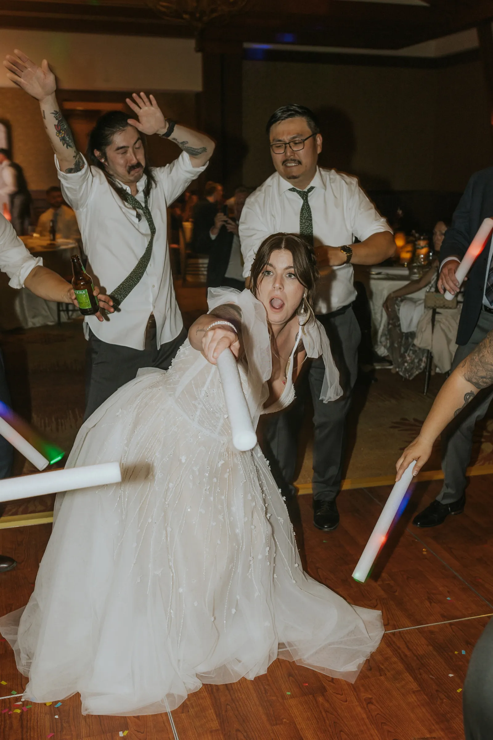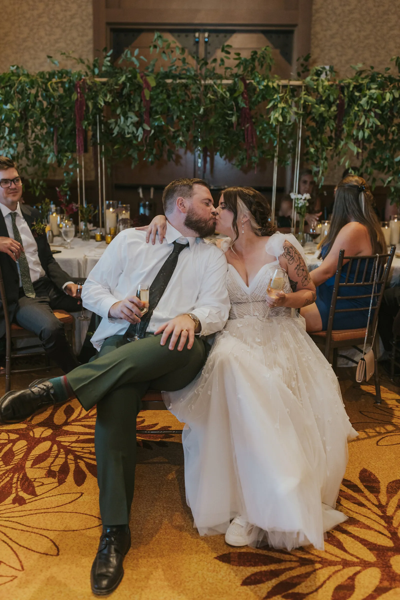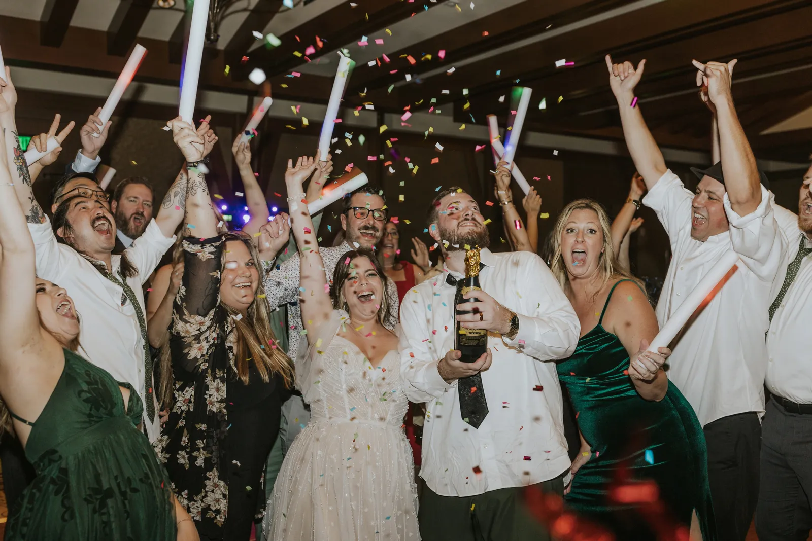 Our reception was so fun! Starting off with a bang – Jake and I entered to the Succession theme song and our guest LOVED it! Followed by Jake’s dance with his sisters. Unfortunately, his mom passed away seven years ago, but he chose to dance with his sisters to her favorite song. It was a really sweet way to honor her and his sisters. Our photo booth was also a blast! all of our guests loved it and Cody, the attendant from Epik, was so awesome! He got everyone hyped up about the booth. Epik even gave us a book filled with all the pictures to take home that night too. It was such a sweet surprise! We used After the Tone as our guestbook and it was such an awesome alternative to the usual guest books! We got our voicemails back and it is such an amazing memento of the day. We can tell our guests really had fun with it. Now we have something to listening to every anniversary! Lastly the dance floor! We LOVE a wedding dance floor! We truly danced all night even when guests were taking a break you could always find us on the dance floor. At one point, “Sugar We’re Going Down” by Fallout Boy came on and the room erupted! Everyone 40 and under was on the dance floor, we even had two mosh pits and a circle pit going! We were all screaming our lungs out and we will remember that forever. The last song of the night was “First Date” by Blink 182! Our wedding party actually walked down the aisle to an instrumental version of this song for the ceremony so this was such a great way to tie in the ceremony to the reception! Also who doesn’t wanna go feral with all their buds to Blink?!
