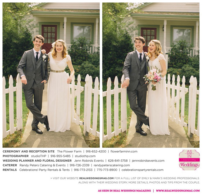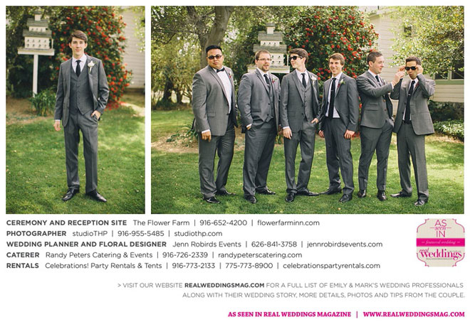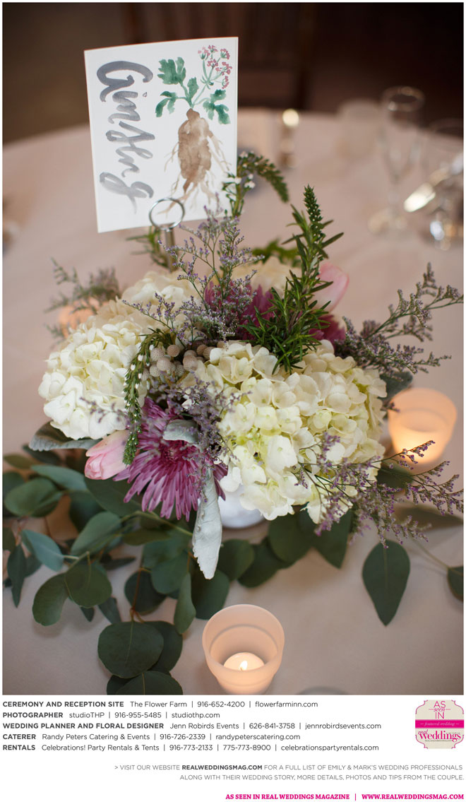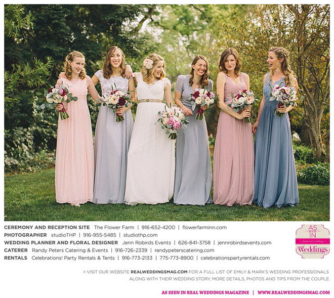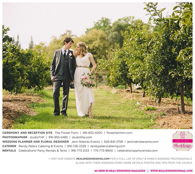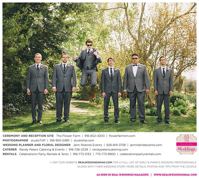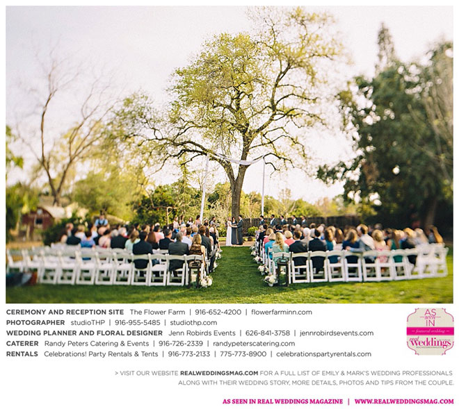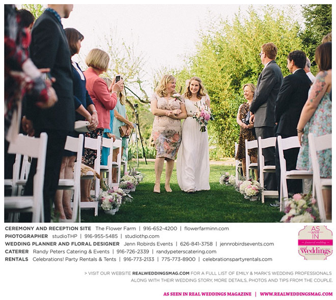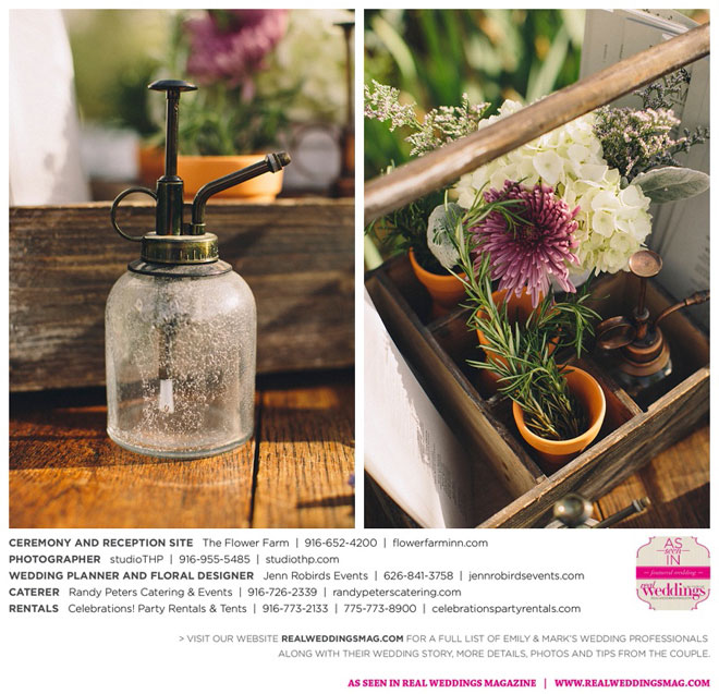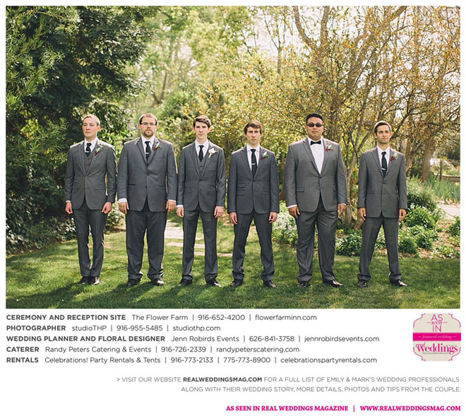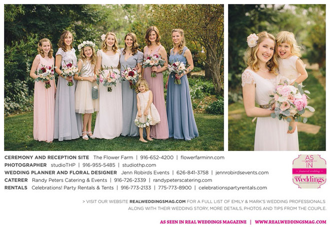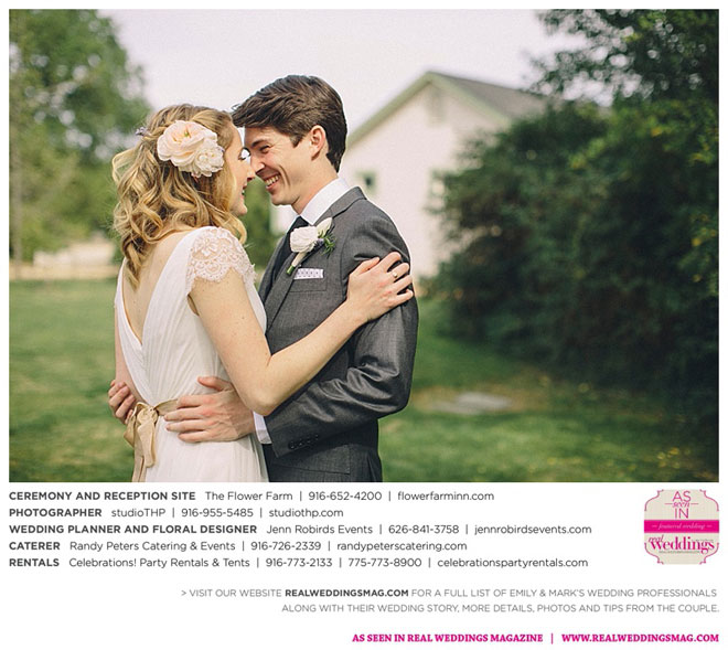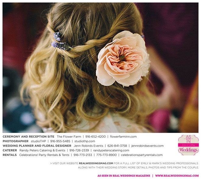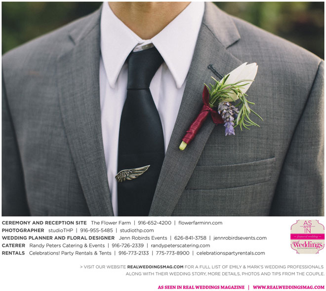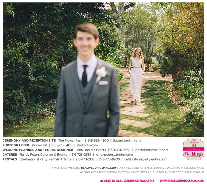 About 160 of the couple’s family and friends attended their ceremony and reception at The Flower Farm in Loomis. To bring in a personal touch, the nuptials incorporated family and close friends. “My dad presented a reading during the ceremony—I was so touched that he lent his voice—and our officiant was a personal friend of mine, whom I respect and love immensely. Her humor kept me laughing and her sageness made me cry,” Emily says.