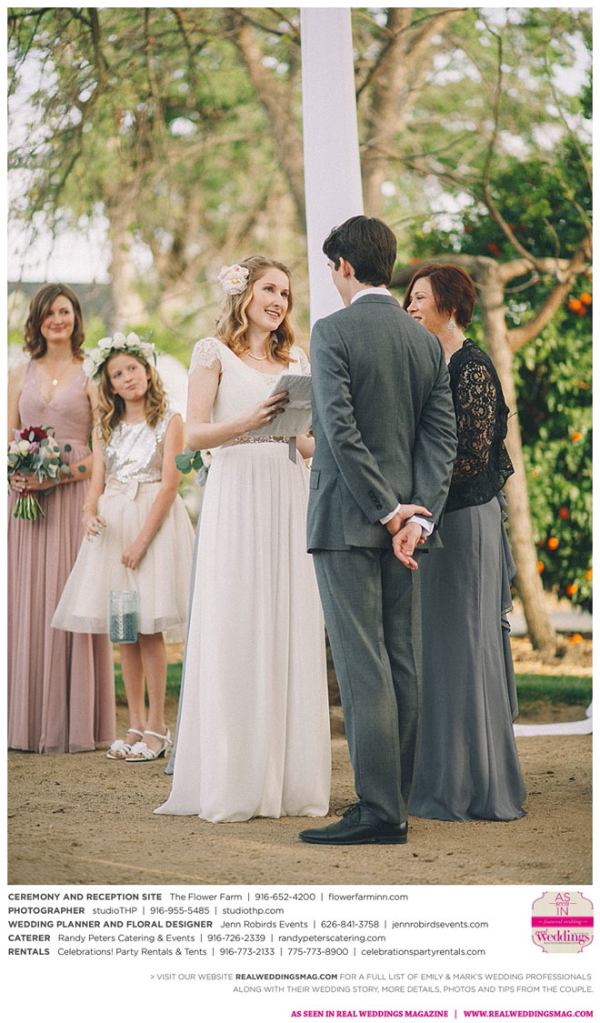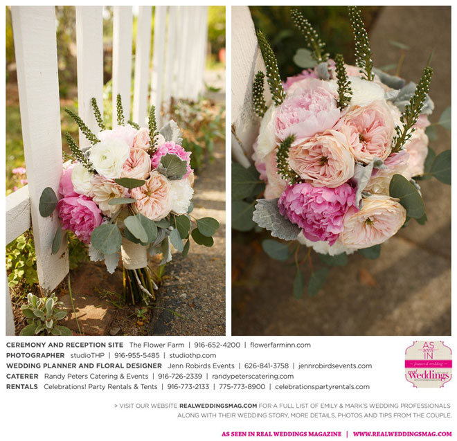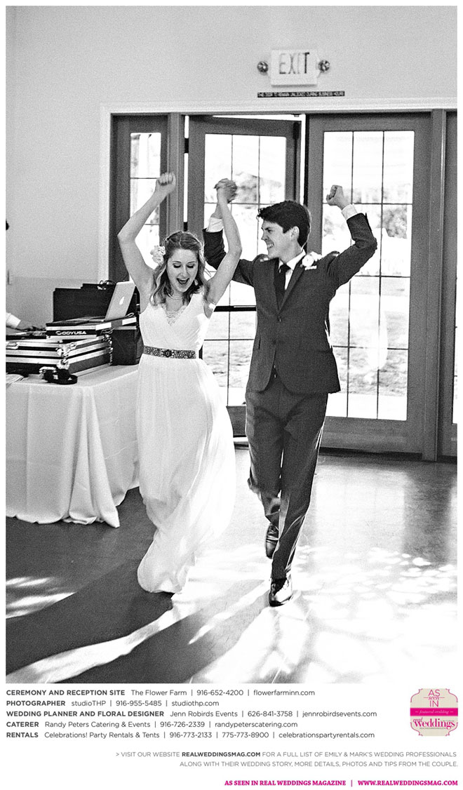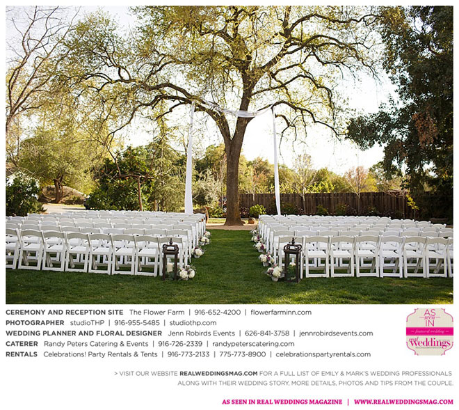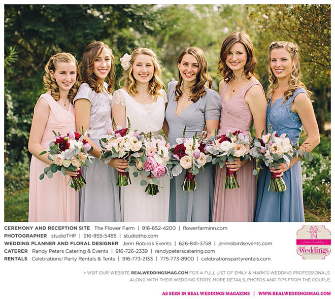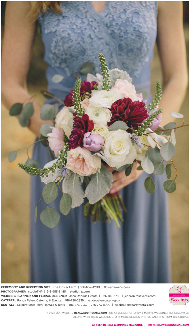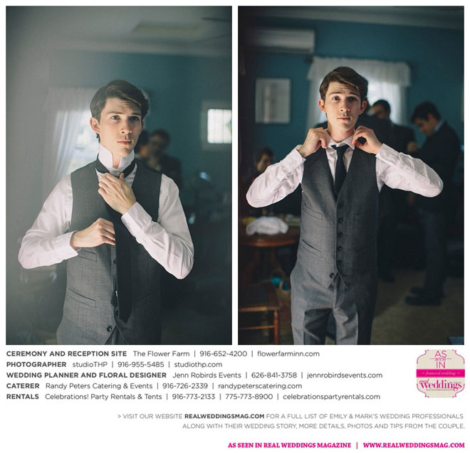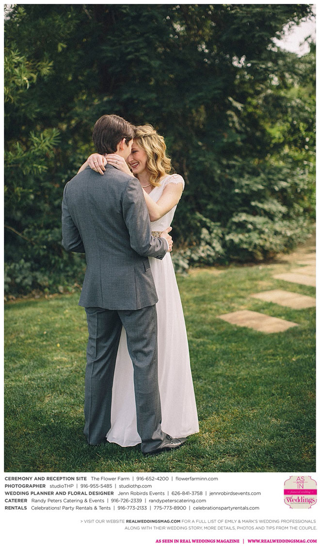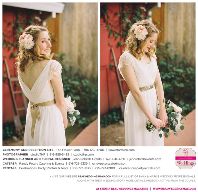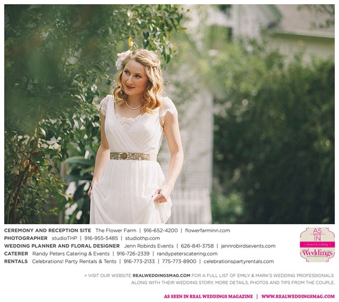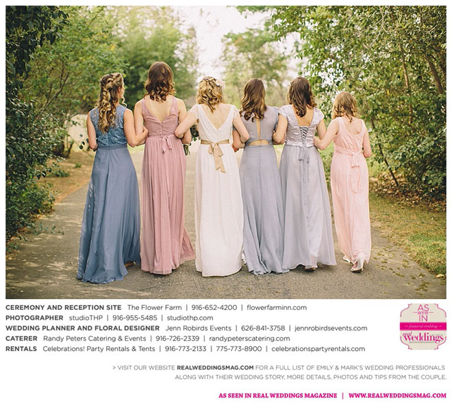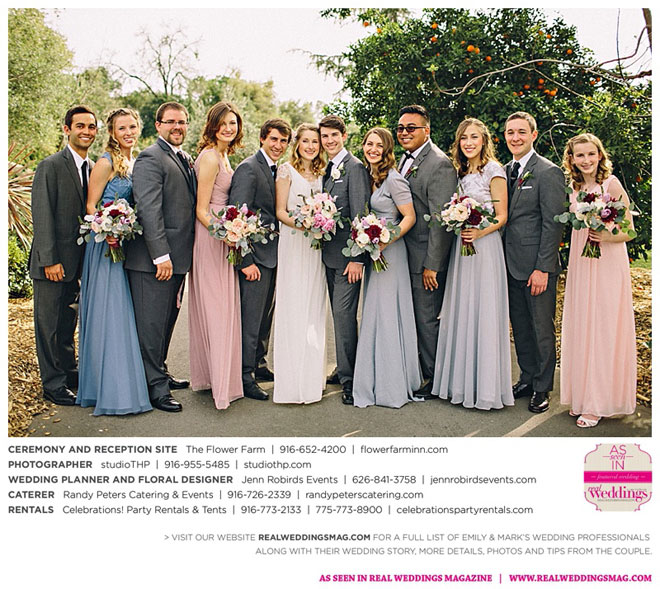 About 160 of the couple’s family and friends attended their ceremony and reception at The Flower Farm in Loomis. To bring in a personal touch, the nuptials incorporated family and close friends. “My dad presented a reading during the ceremony—I was so touched that he lent his voice—and our officiant was a personal friend of mine, whom I respect and love immensely. Her humor kept me laughing and her sageness made me cry,” Emily says.