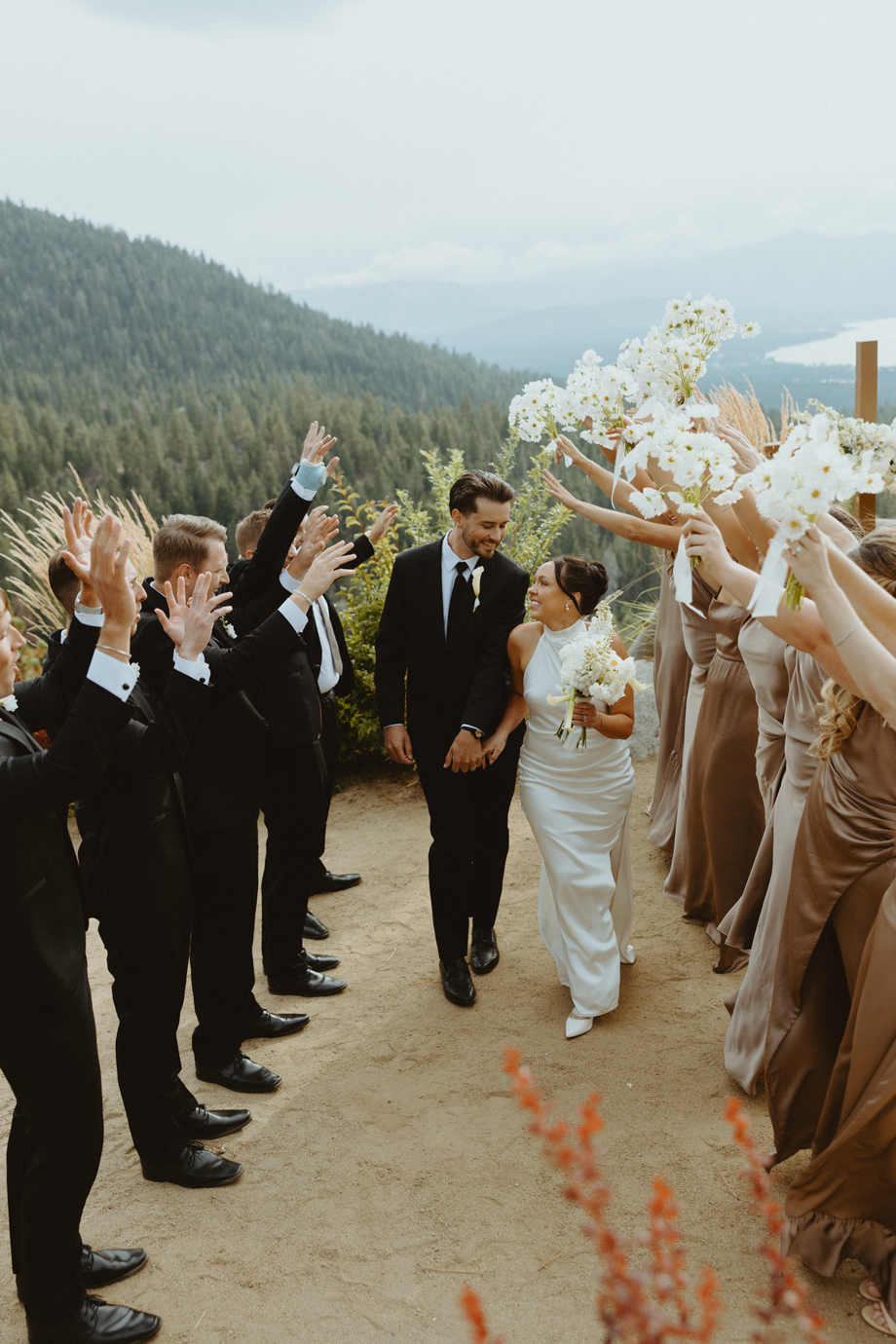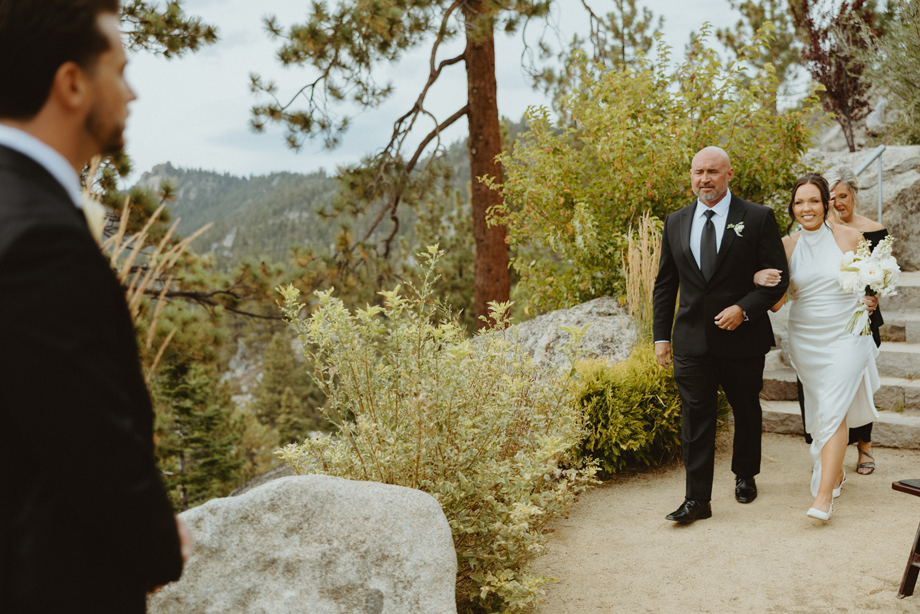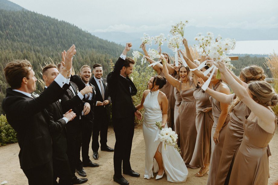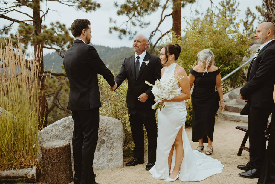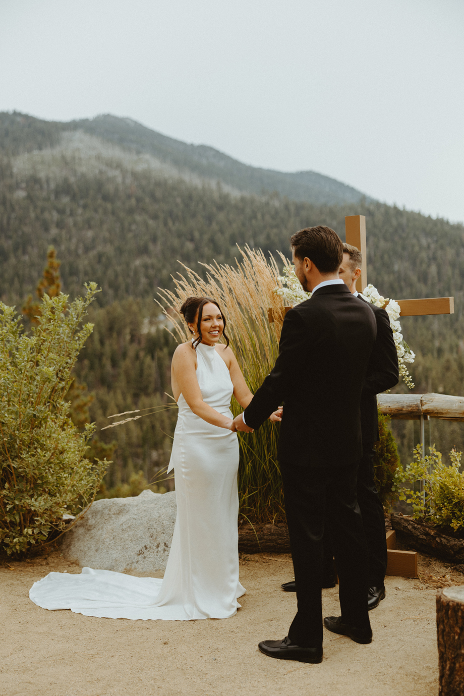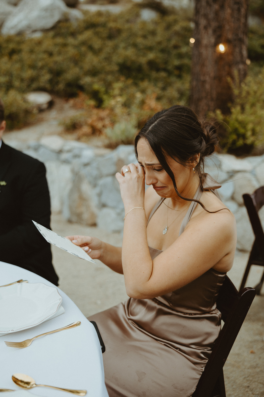 Emily: Honestly everything about the day was so amazing to me. I think if I had focused on wanting a “perfect” wedding I could have been upset very quickly. Our chef canceled the night before, it was 49 degrees and freezing in the middle of AUGUST in Lake Tahoe, and none of the decor would stay up on the tables because of the wind. However, I tried to focus on the fact that I was marrying the best man to exist surrounded by the BEST support system including friends and family in an absolutely stunning place. It shifted my mindset from dwelling on the things I could not control/change to feeling like I was living a fairy tale. The ceremony was so wholesome and special to me that it was my favorite part of the day.Watching Matthew become so vulnerable and emotional really made me feel his love for me that much deeper.