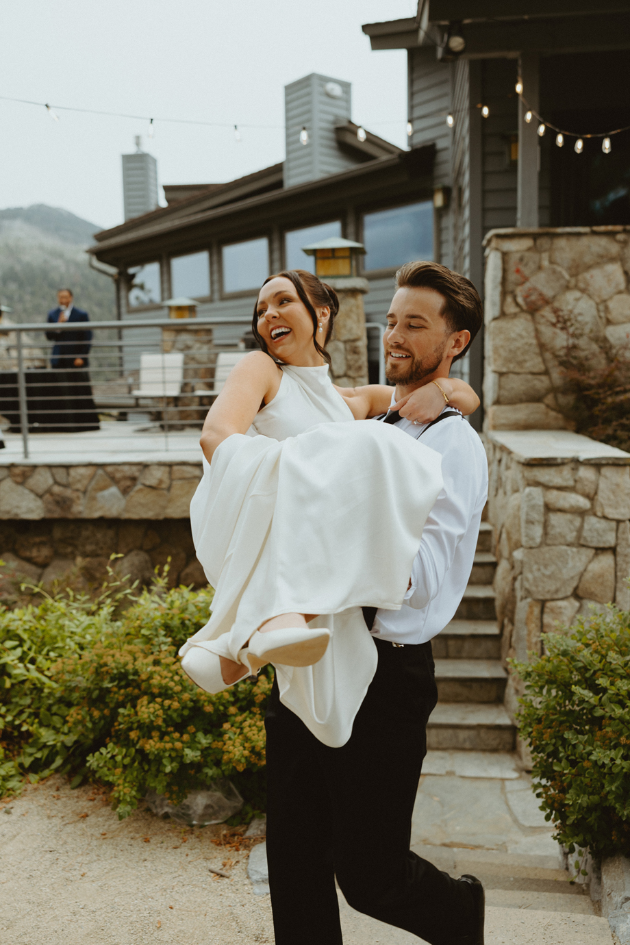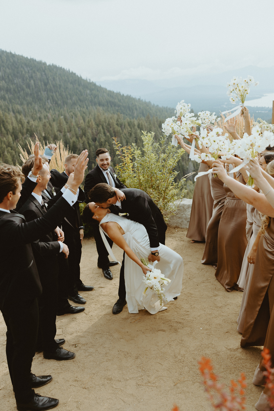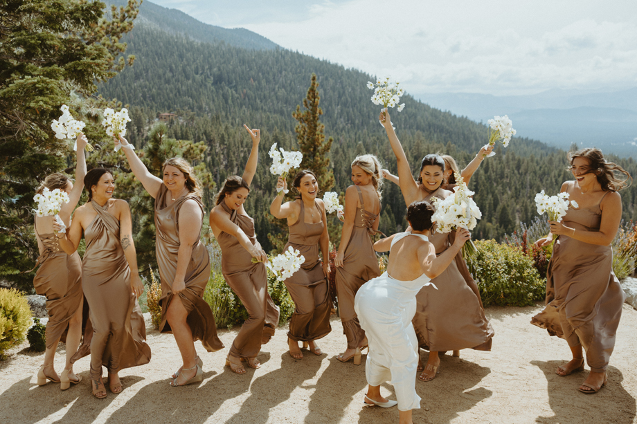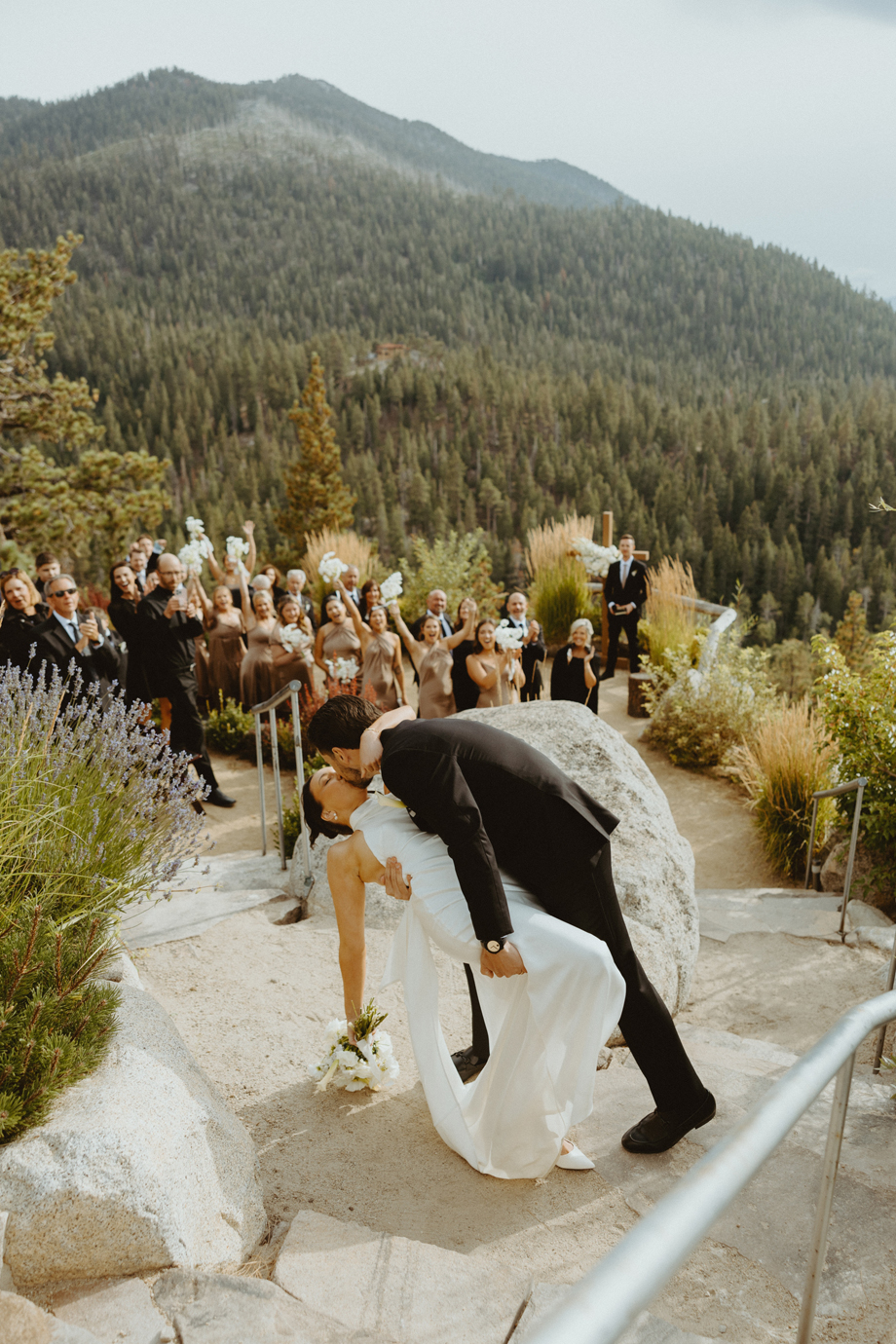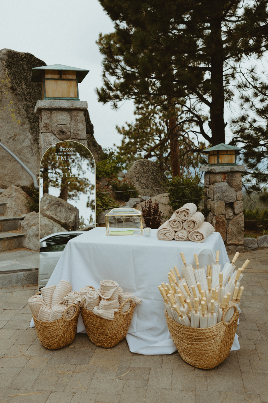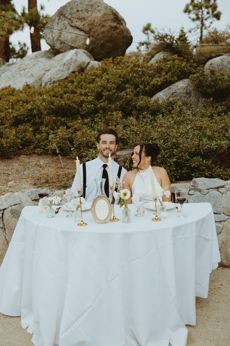 Emily: Honestly everything about the day was so amazing to me. I think if I had focused on wanting a “perfect” wedding I could have been upset very quickly. Our chef canceled the night before, it was 49 degrees and freezing in the middle of AUGUST in Lake Tahoe, and none of the decor would stay up on the tables because of the wind. However, I tried to focus on the fact that I was marrying the best man to exist surrounded by the BEST support system including friends and family in an absolutely stunning place. It shifted my mindset from dwelling on the things I could not control/change to feeling like I was living a fairy tale. The ceremony was so wholesome and special to me that it was my favorite part of the day.Watching Matthew become so vulnerable and emotional really made me feel his love for me that much deeper.