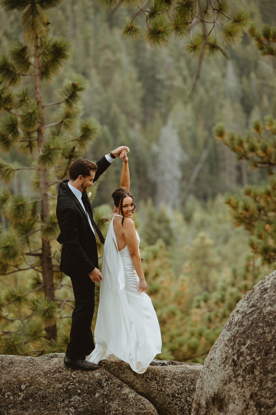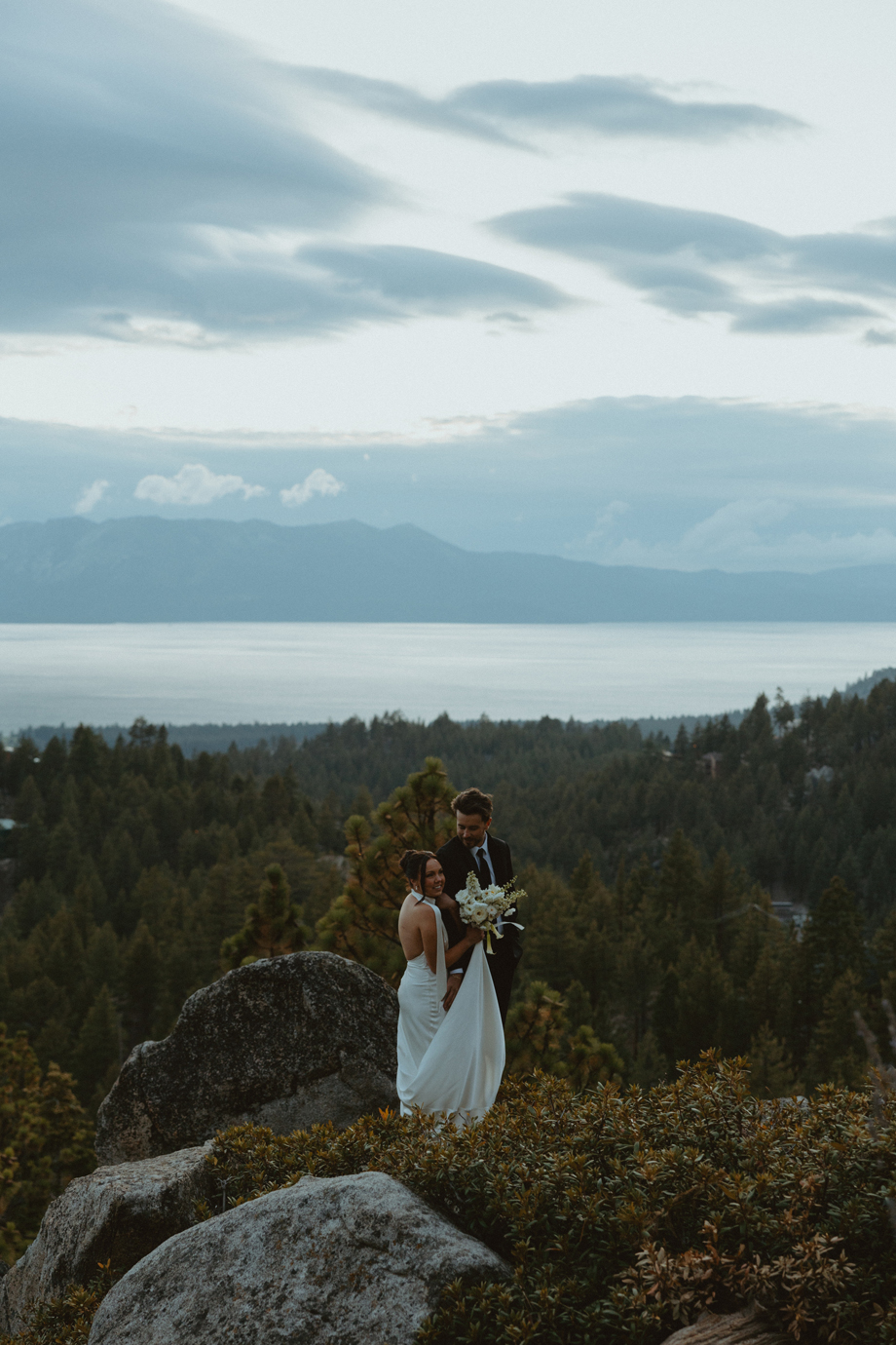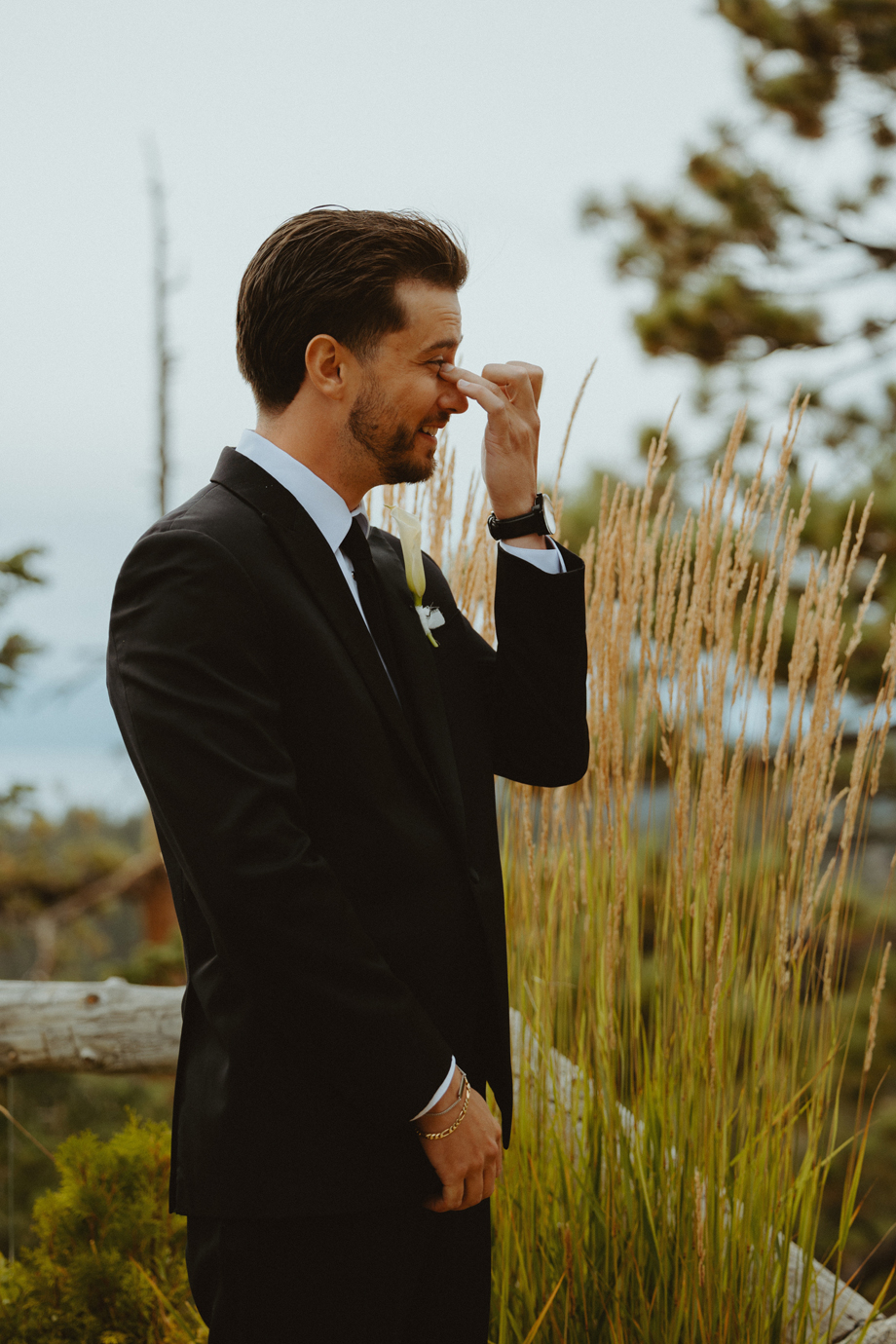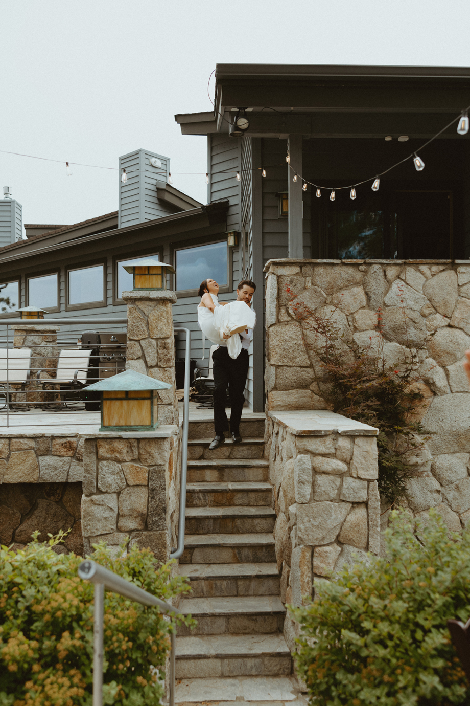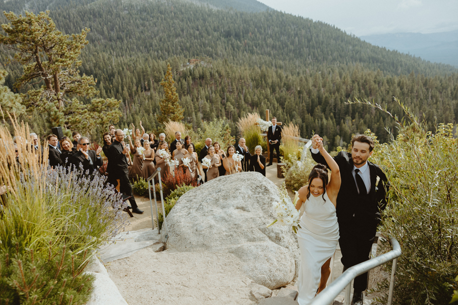 Emily: Honestly everything about the day was so amazing to me. I think if I had focused on wanting a “perfect” wedding I could have been upset very quickly. Our chef canceled the night before, it was 49 degrees and freezing in the middle of AUGUST in Lake Tahoe, and none of the decor would stay up on the tables because of the wind. However, I tried to focus on the fact that I was marrying the best man to exist surrounded by the BEST support system including friends and family in an absolutely stunning place. It shifted my mindset from dwelling on the things I could not control/change to feeling like I was living a fairy tale. The ceremony was so wholesome and special to me that it was my favorite part of the day.Watching Matthew become so vulnerable and emotional really made me feel his love for me that much deeper.