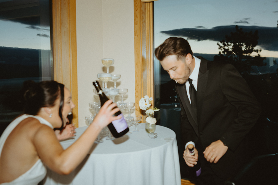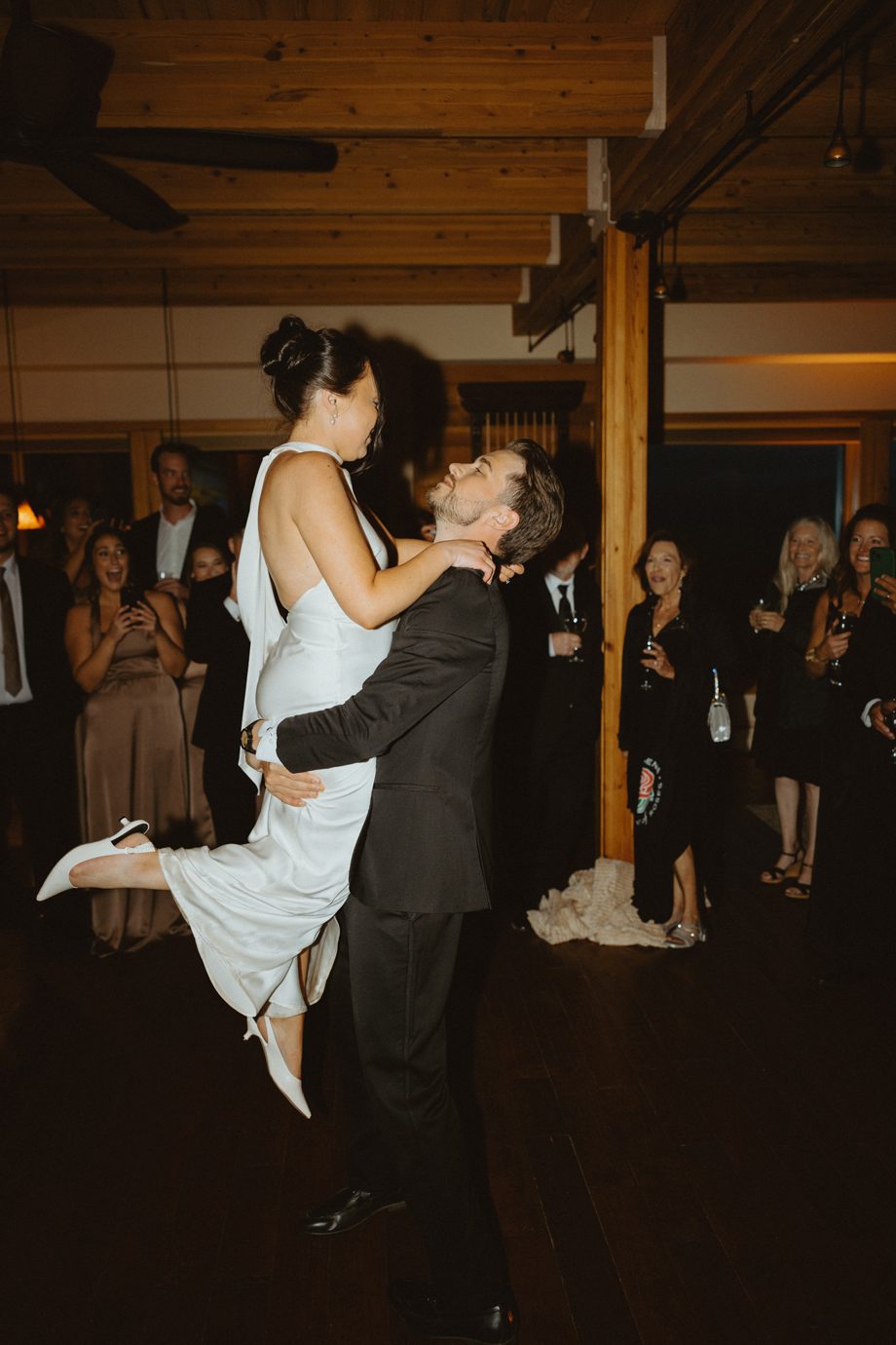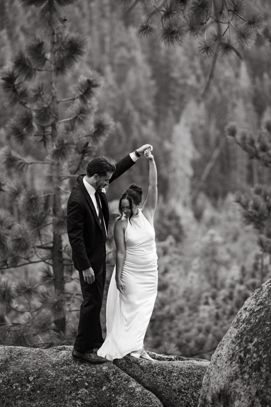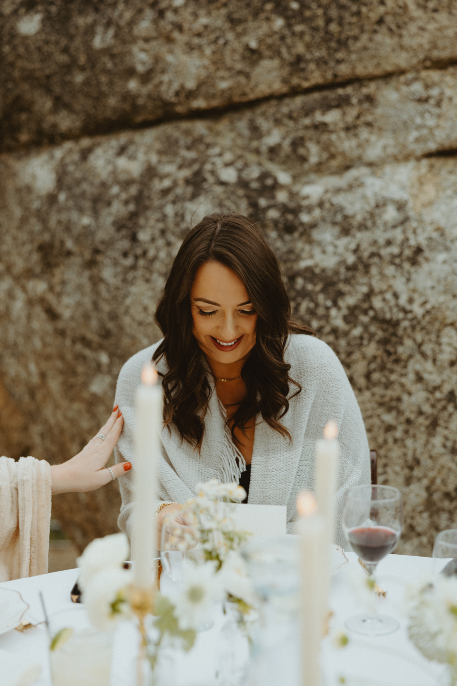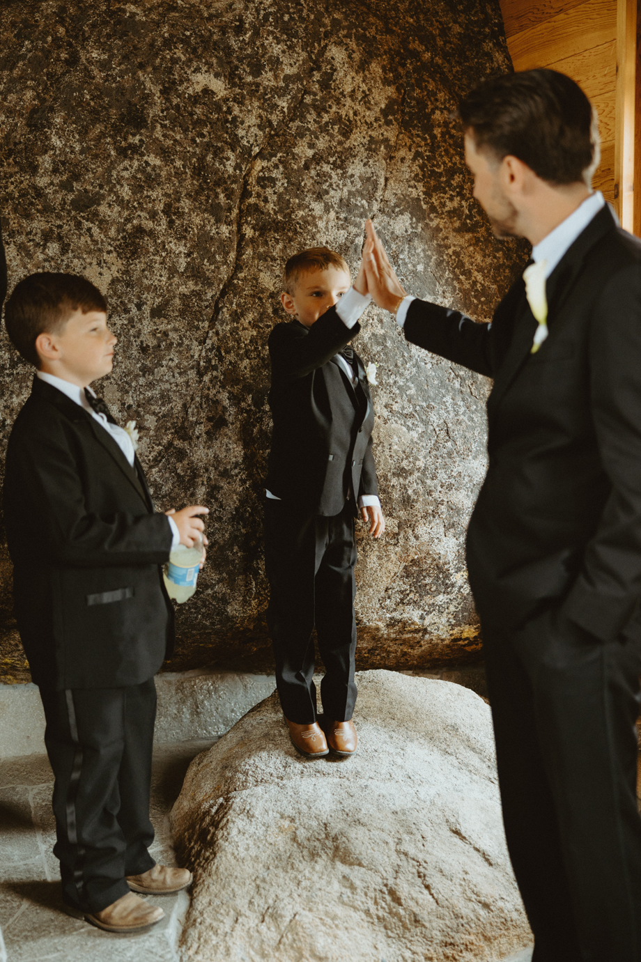 Emily: Honestly everything about the day was so amazing to me. I think if I had focused on wanting a “perfect” wedding I could have been upset very quickly. Our chef canceled the night before, it was 49 degrees and freezing in the middle of AUGUST in Lake Tahoe, and none of the decor would stay up on the tables because of the wind. However, I tried to focus on the fact that I was marrying the best man to exist surrounded by the BEST support system including friends and family in an absolutely stunning place. It shifted my mindset from dwelling on the things I could not control/change to feeling like I was living a fairy tale. The ceremony was so wholesome and special to me that it was my favorite part of the day.Watching Matthew become so vulnerable and emotional really made me feel his love for me that much deeper.