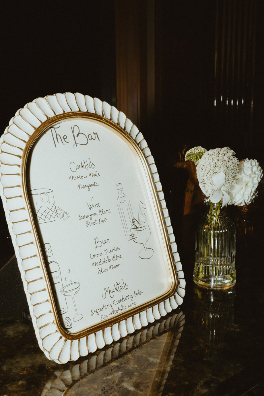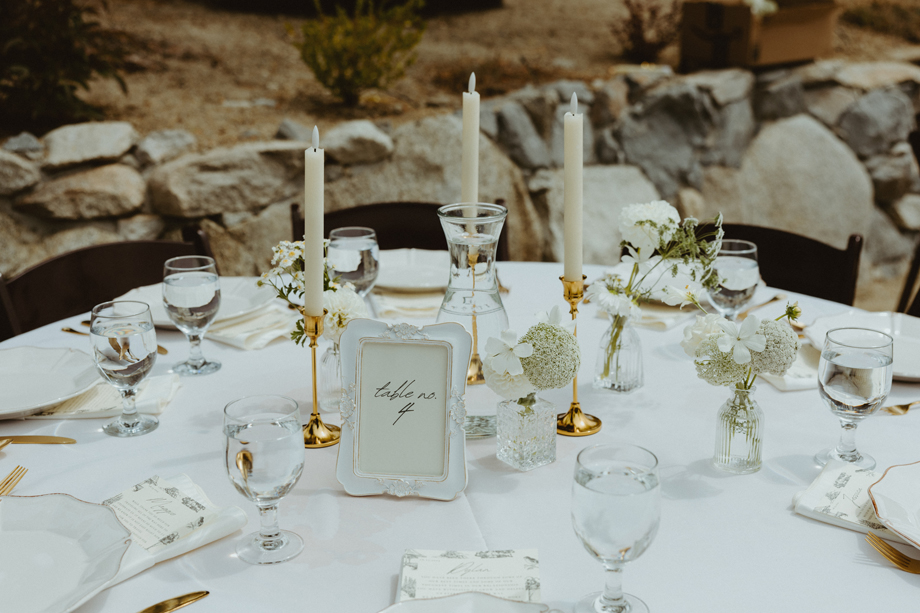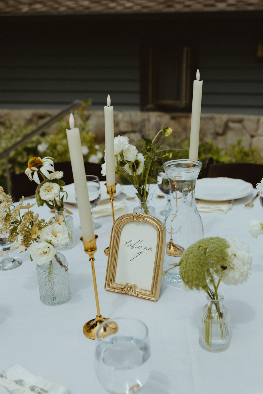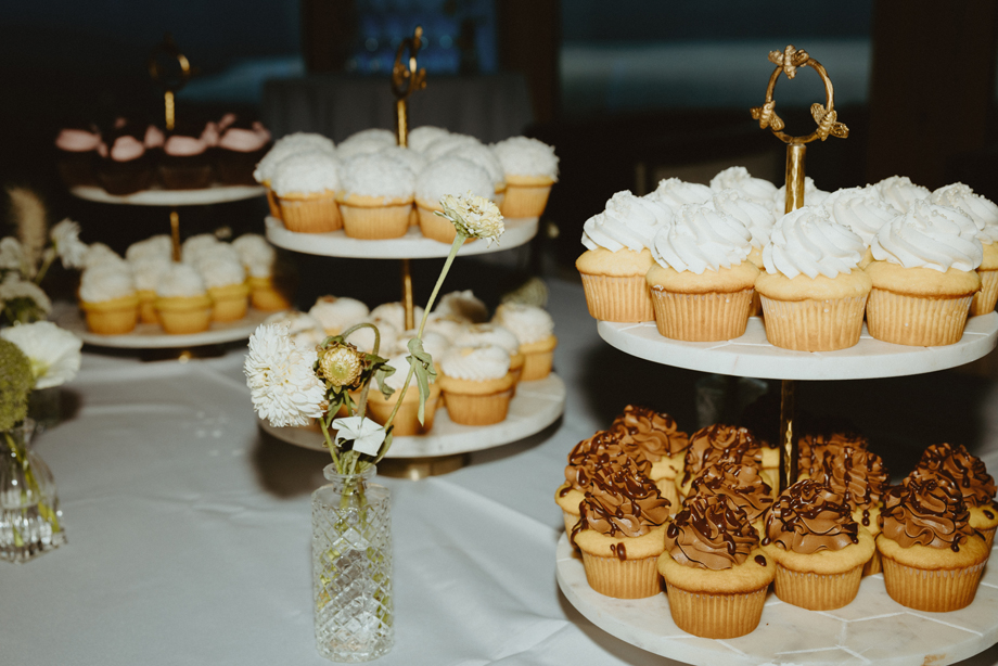 The white wildflowers and bridesmaids’ Cosmos bouquets! It was so pretty on the tables having the wild flowers with the gold accents. The gold really made it feel very classy.