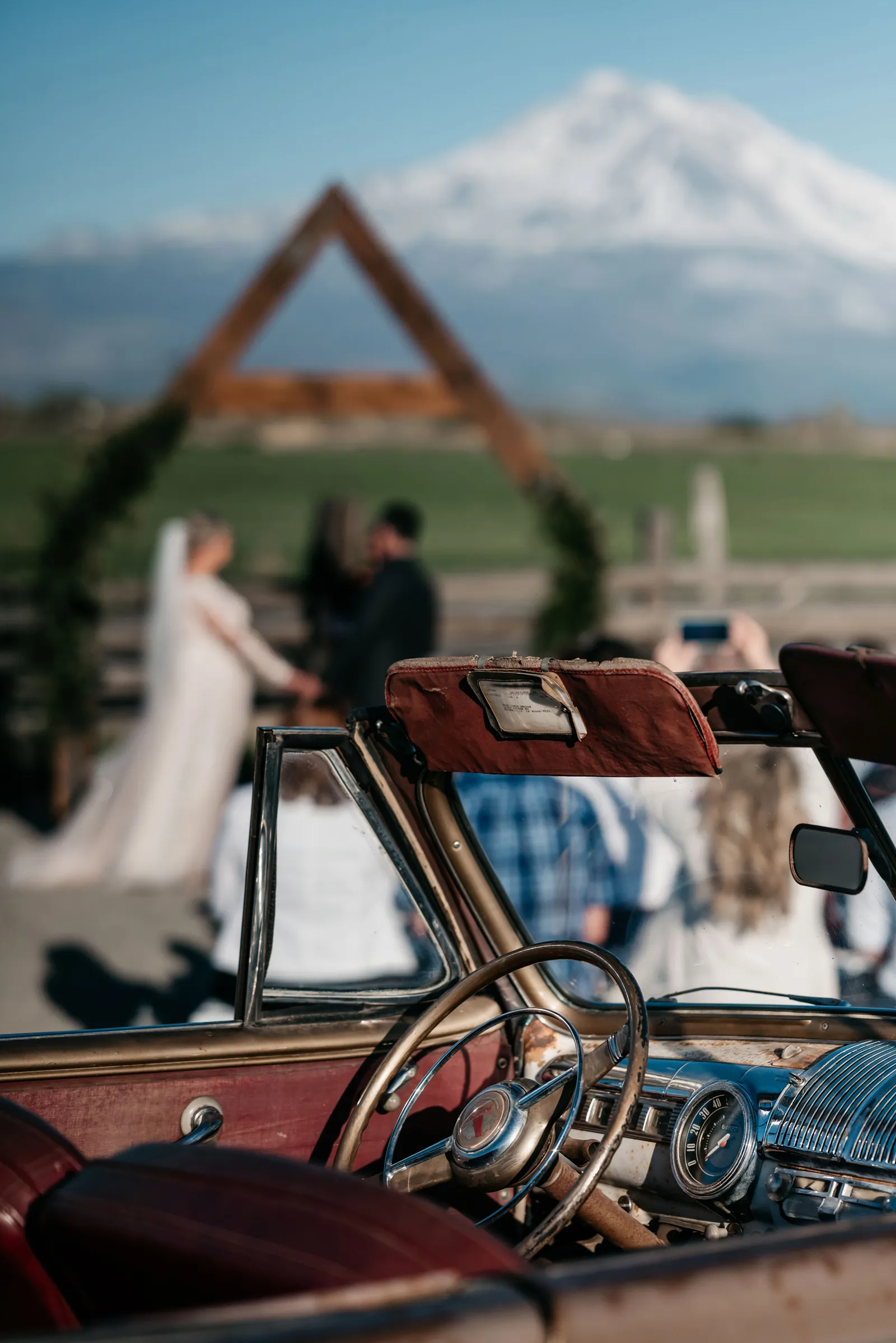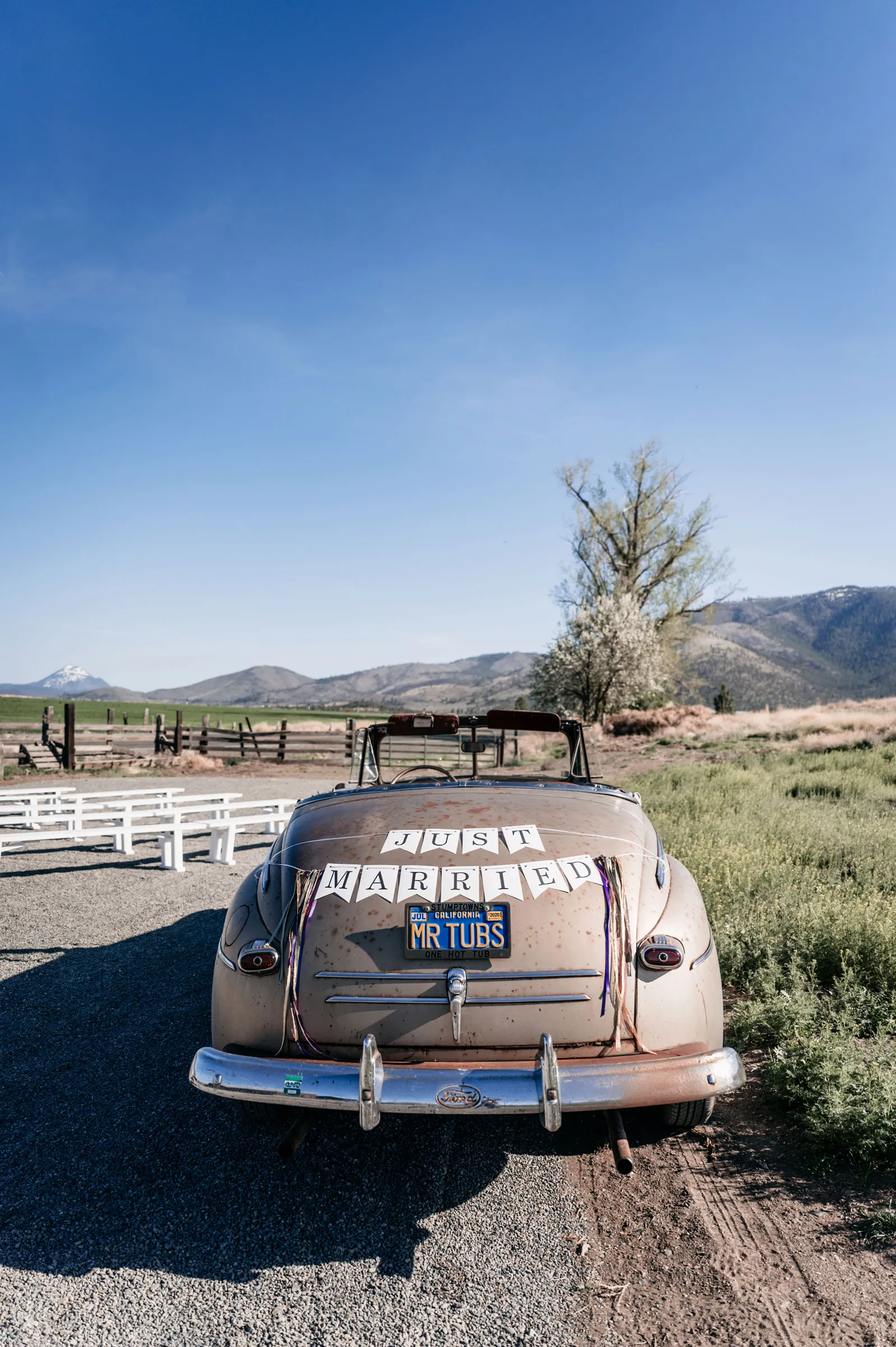 We planned to “getaway” in our family’s 1946 Ford Super Deluxe Convertible after the ceremony. It took a few tries to get the car started, leaving everyone with bated breath and comments of “Come on! You can do it!” After a few attempts, the beloved “Mr. Tubs” finally started and we took off down the road while everyone waved and cheered. It was so much fun!