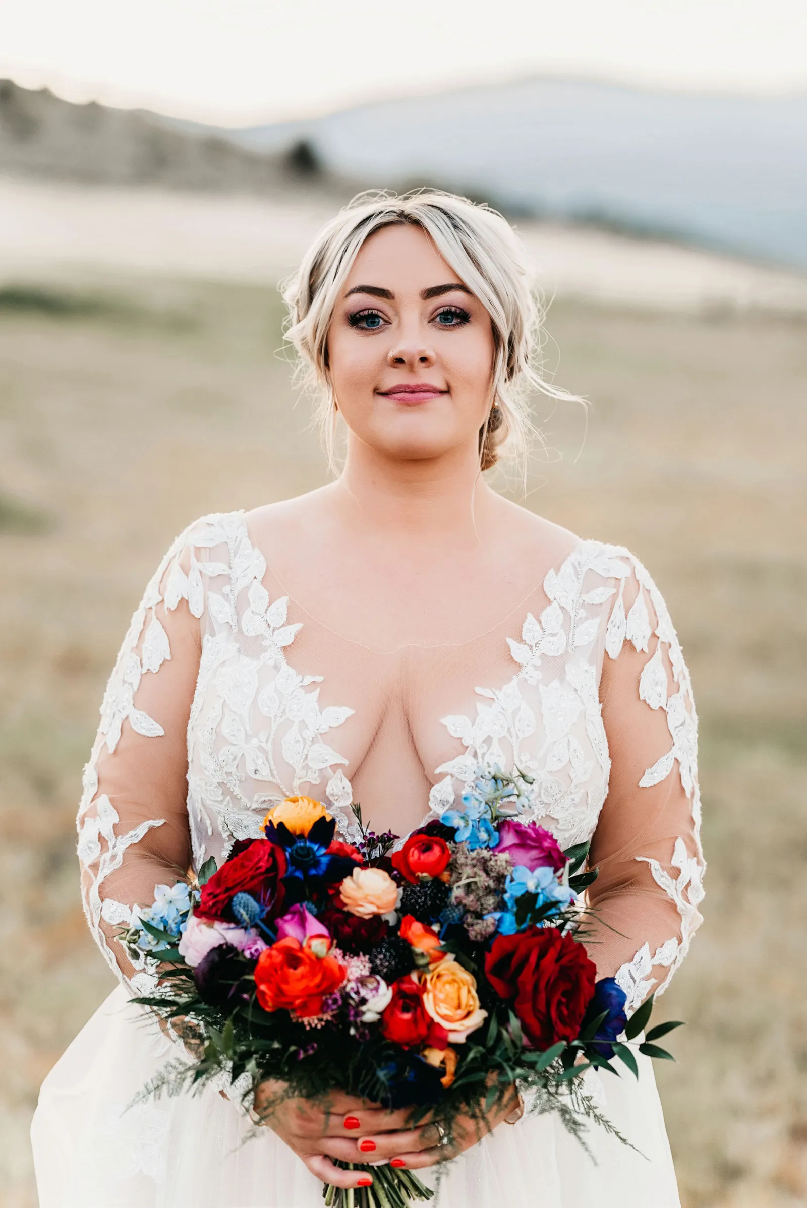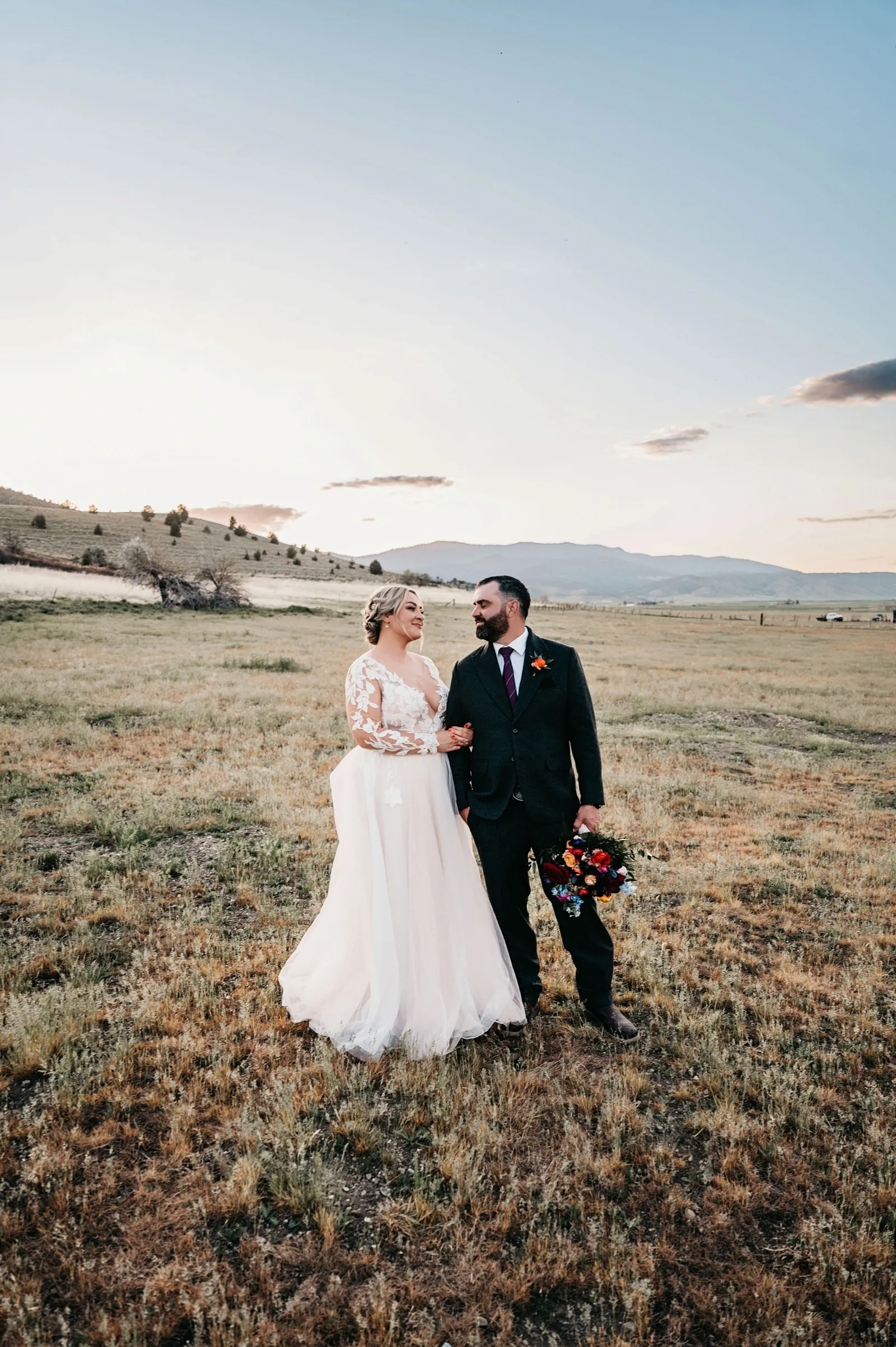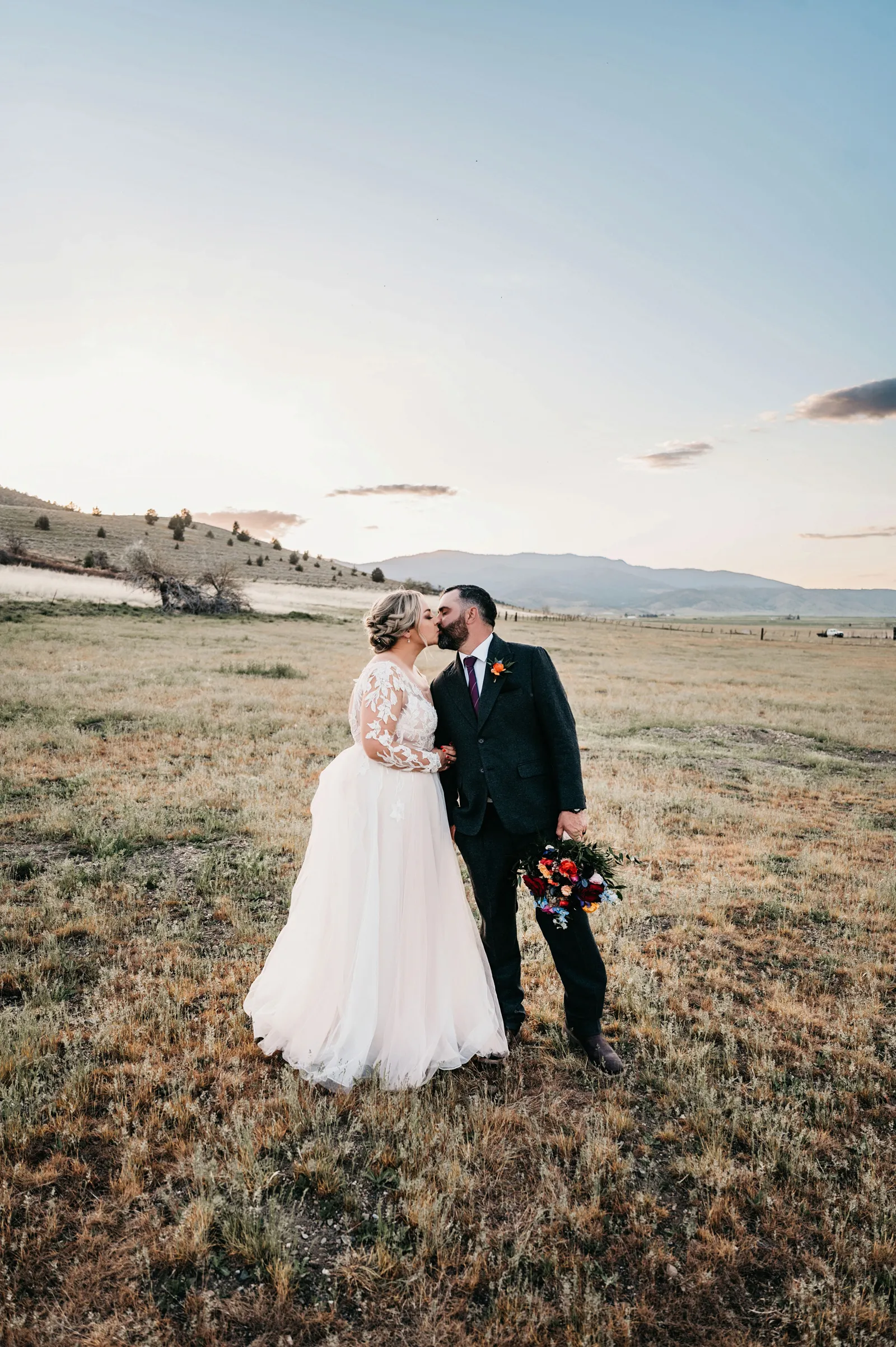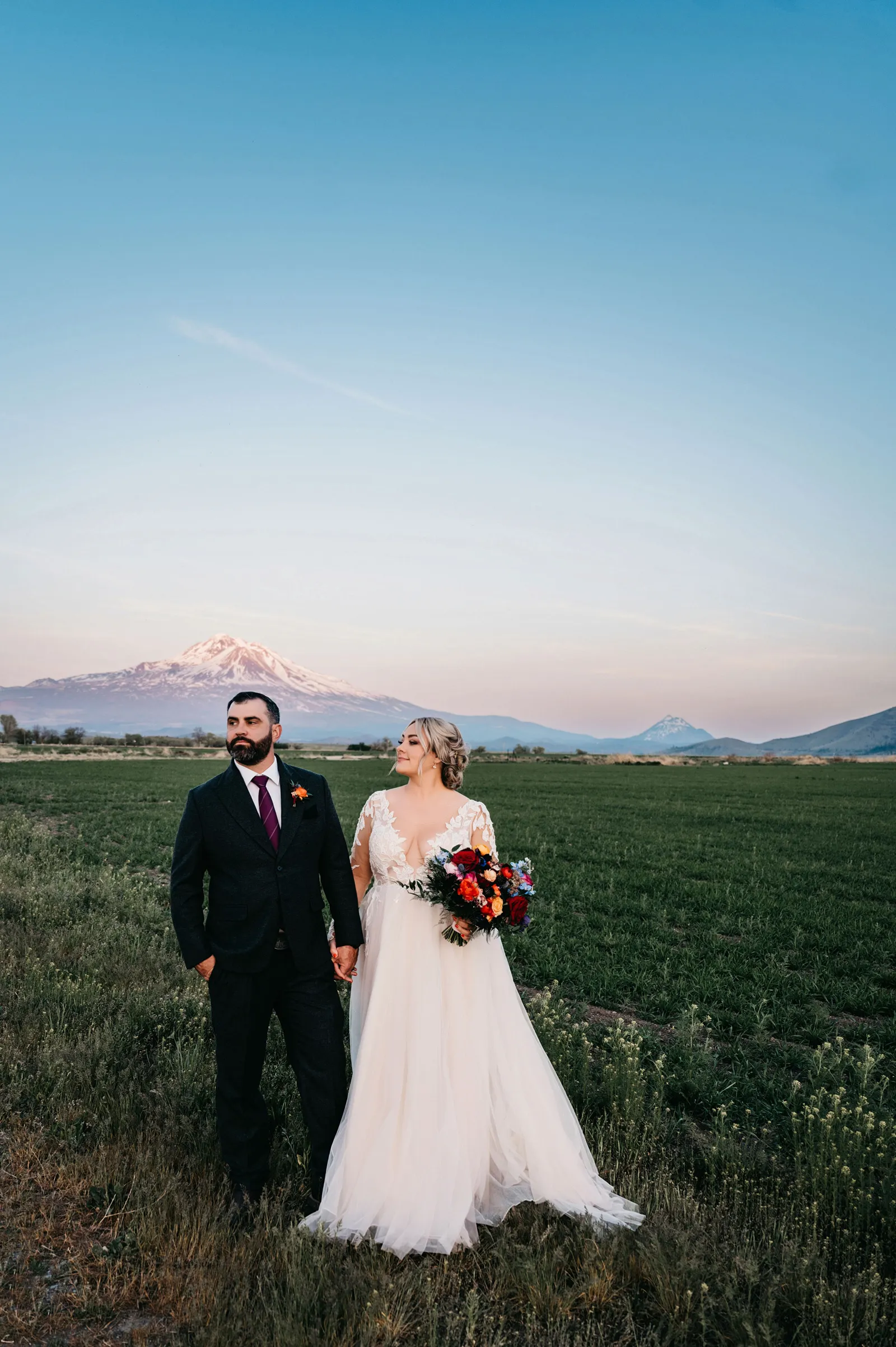 The ceremony was simple, yet special. We stood under an arch built by the groom, framing Mount Shasta in the background. Carl Lysgaard (the bride’s late father’s dear friend) performed the ceremony, and did so beautifully! We decided to forego a wedding party and just keep the main focus on us, as a couple. It was the best decision! It kept the ceremony short and sweet, but beautiful and meaningful.