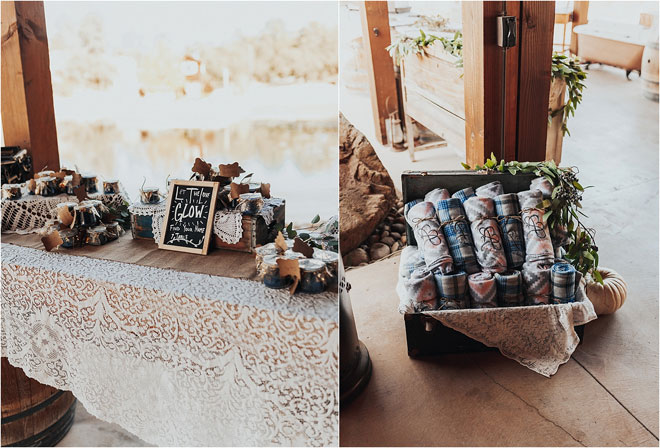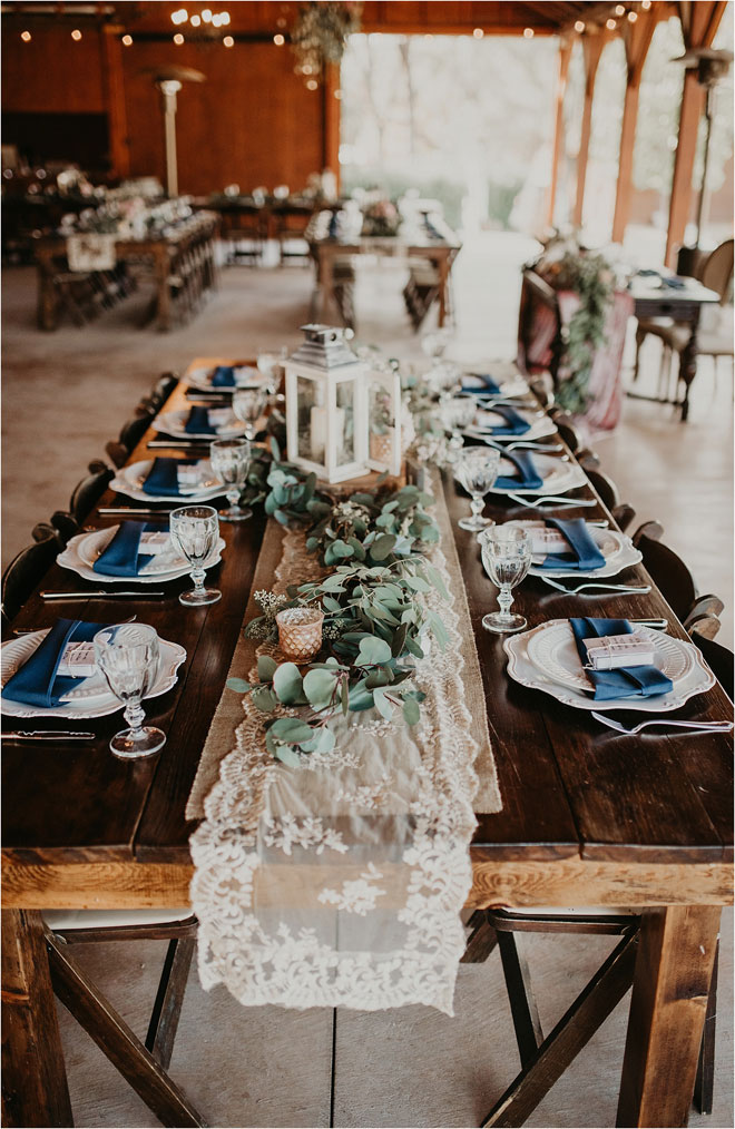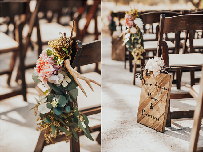 To celebrate their histories and passions, they chose an upscale country theme which melded beautifully with their chosen location. Most importantly, though, they wanted their wedding to feel as relaxed as a family reunion, with many friends and family staying at their venue in cabins the weekend of the event. Erin explains, “We had people from all over the country attend our wedding and stay at the ranch for the weekend. Dogs included! It was three days of family and fun!”