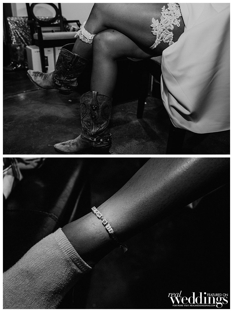 For her something old, Essy wore her first pair of boots, gifted to her eight years ago, along with her mother’s wedding veil. Her grandmother’s earrings were her borrowed item and her something blue was an anklet etched with the words “Dream Big.”