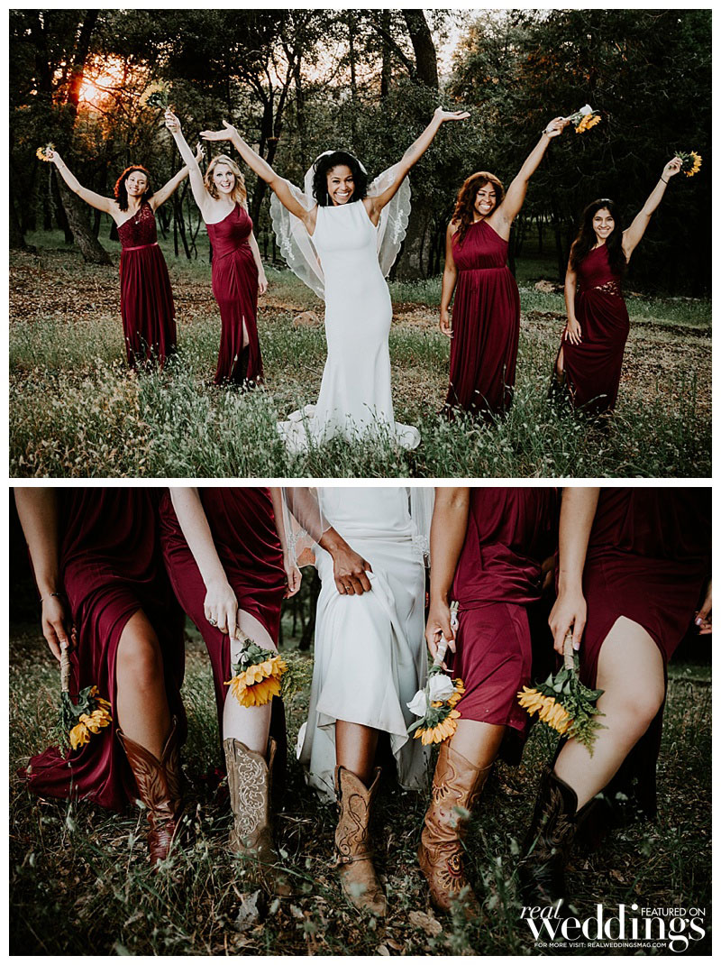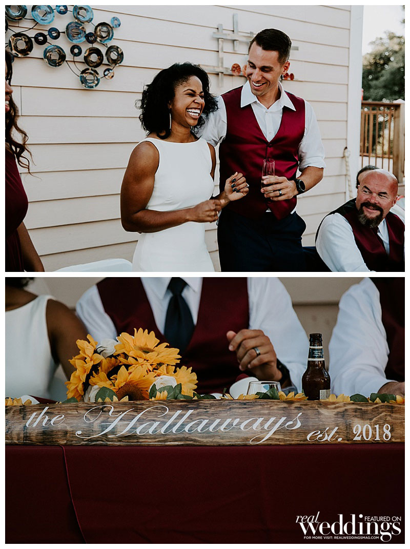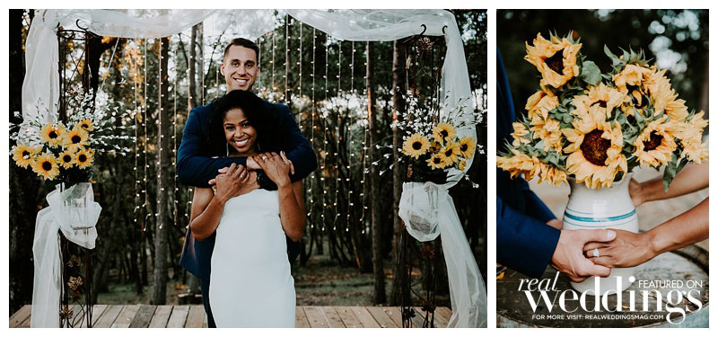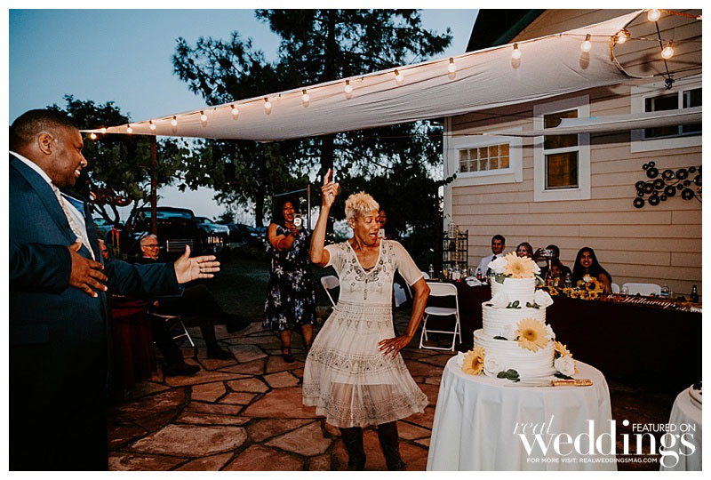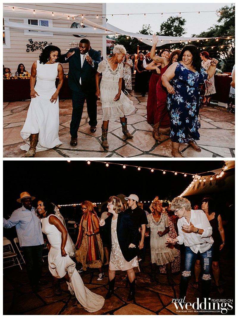 A reception on the property followed. On the menu? Tacos, the bride’s favorite food. The couple had two cakes: one for the bride that was white with sunflowers as décor, and a groom’s cake that surprised them both. “It was a Chipotle burrito surrounded by guac and chips,” she says. “My grandma, that sneaky devil, made it happen.”