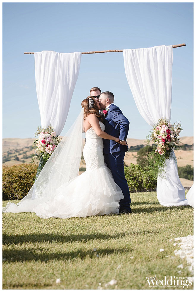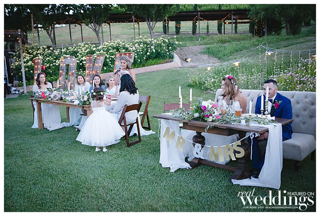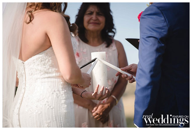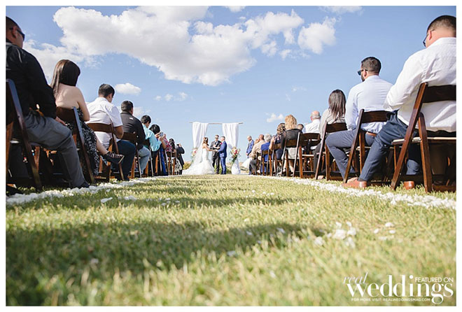 Their wedding was simple and classic, seamlessly incorporating traditional Catholic elements including a lasso, 13 gold coins and a unity candle into the beautiful setting of their venue. “My family was coming from Mexico so keeping some our family traditions was very important to me. We made sure we incorporated our religious traditions into our outdoor ceremony,” Gaby explains.