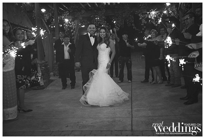 Their commitment to tradition did not prevent them from giving their reception some personal and unique touches that provided entertainment as well as enchanting memories. Gaby recalls, “Ryan had this awesome idea of having a caricature artist for our reception. We used it as one of our party favors; it was an amazing idea and our guests loved it.” In addition to the caricature artist, the couple filled out the festivities with a photo booth, a Mariachi band and a “sparkler starter” first dance.