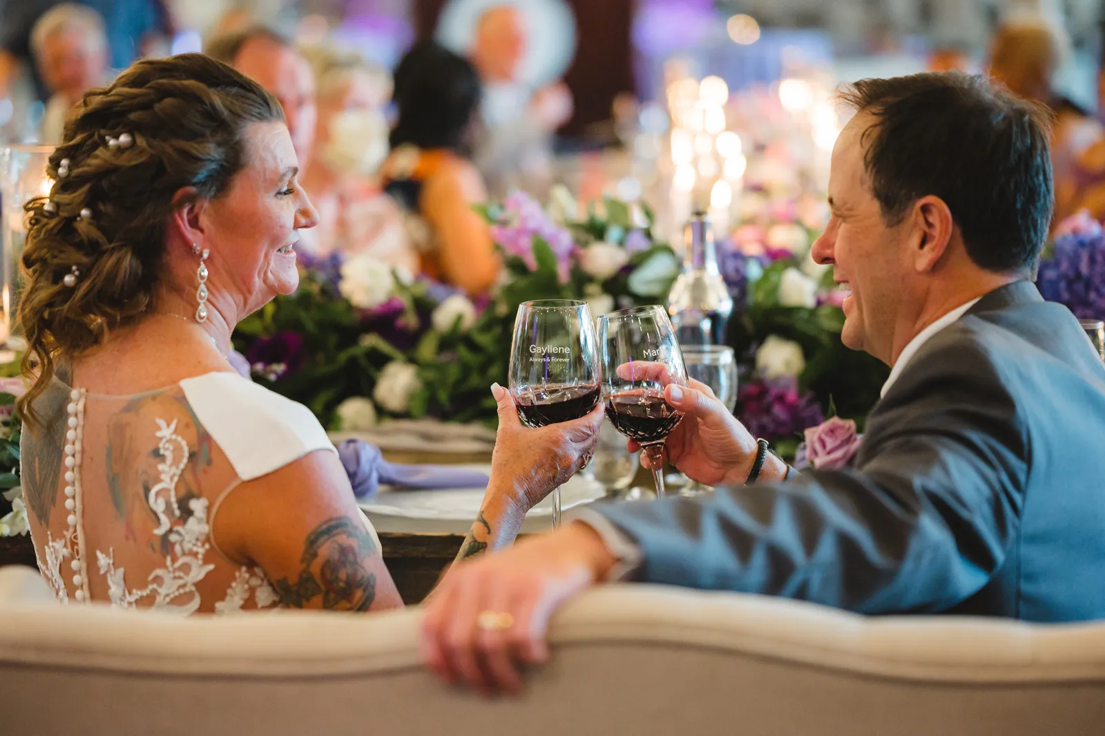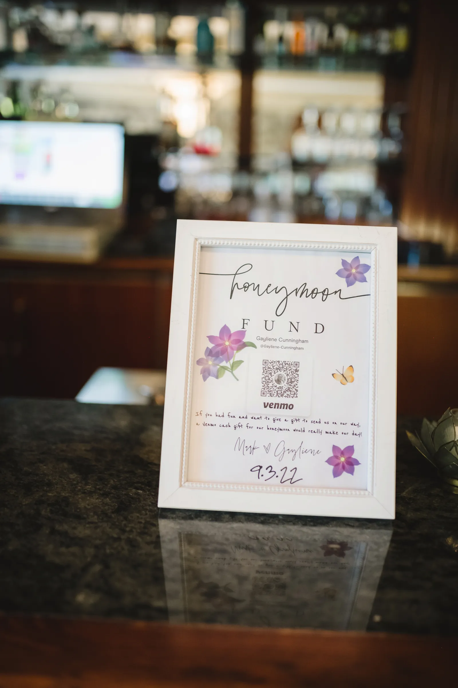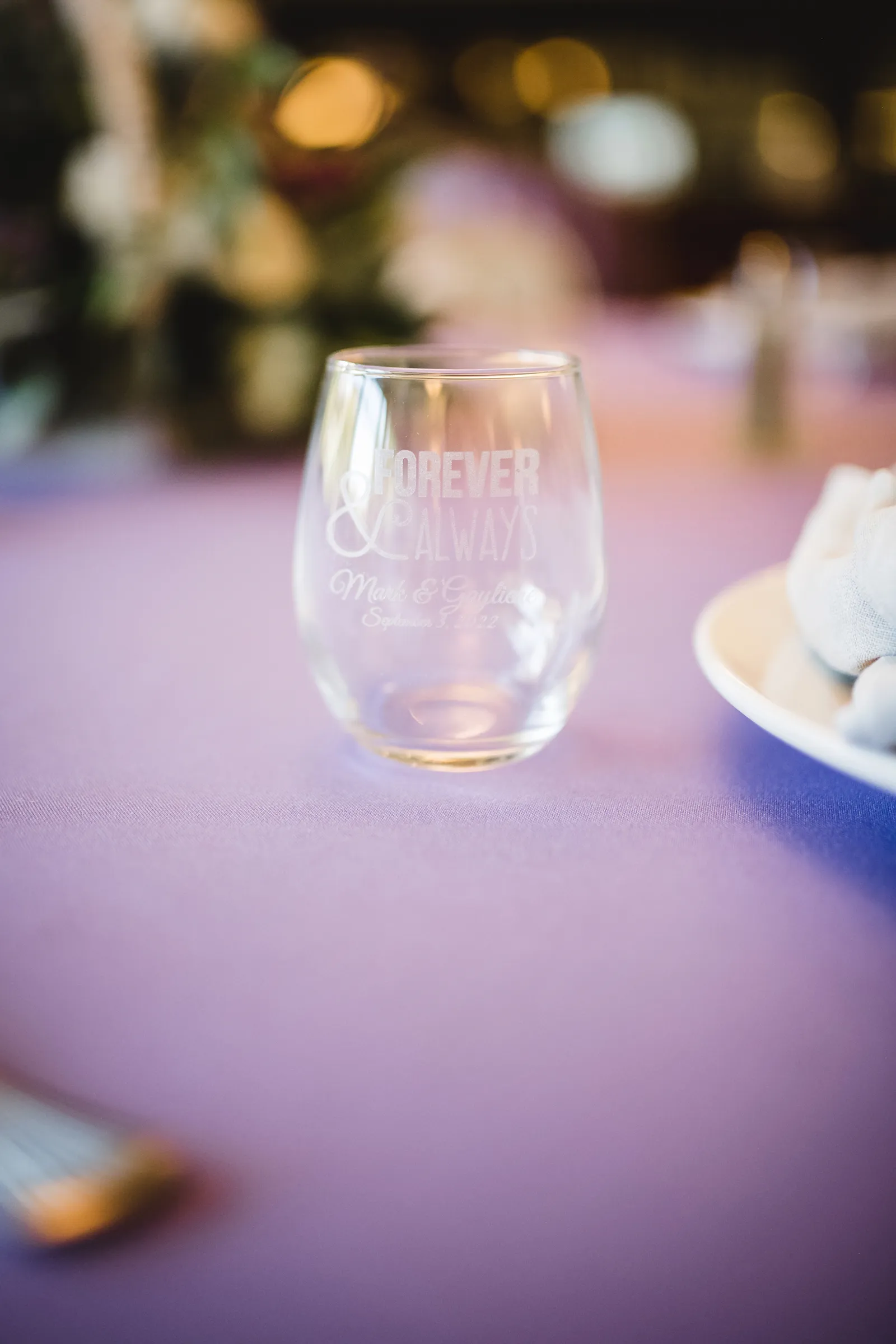 He asked me to marry him at a wine event at Cakebread Winery in Napa, December 2021. We were in Napa for my birthday weekend and attended a wine club event [there]. We were talking to another couple, [and] he left to get more wine. I did not know, but he asked another guest to video the proposal. He came back, got on one knee behind me and said, “Gayliene Cunningham will you marry me?” I turned around (at first I thought he fell), [and] when I realized what he was doing I said, “You’re doing that here?” He replied, “Yes!” (in my defense I don’t remember saying that — I was in shock! I screamed, “Yes!”