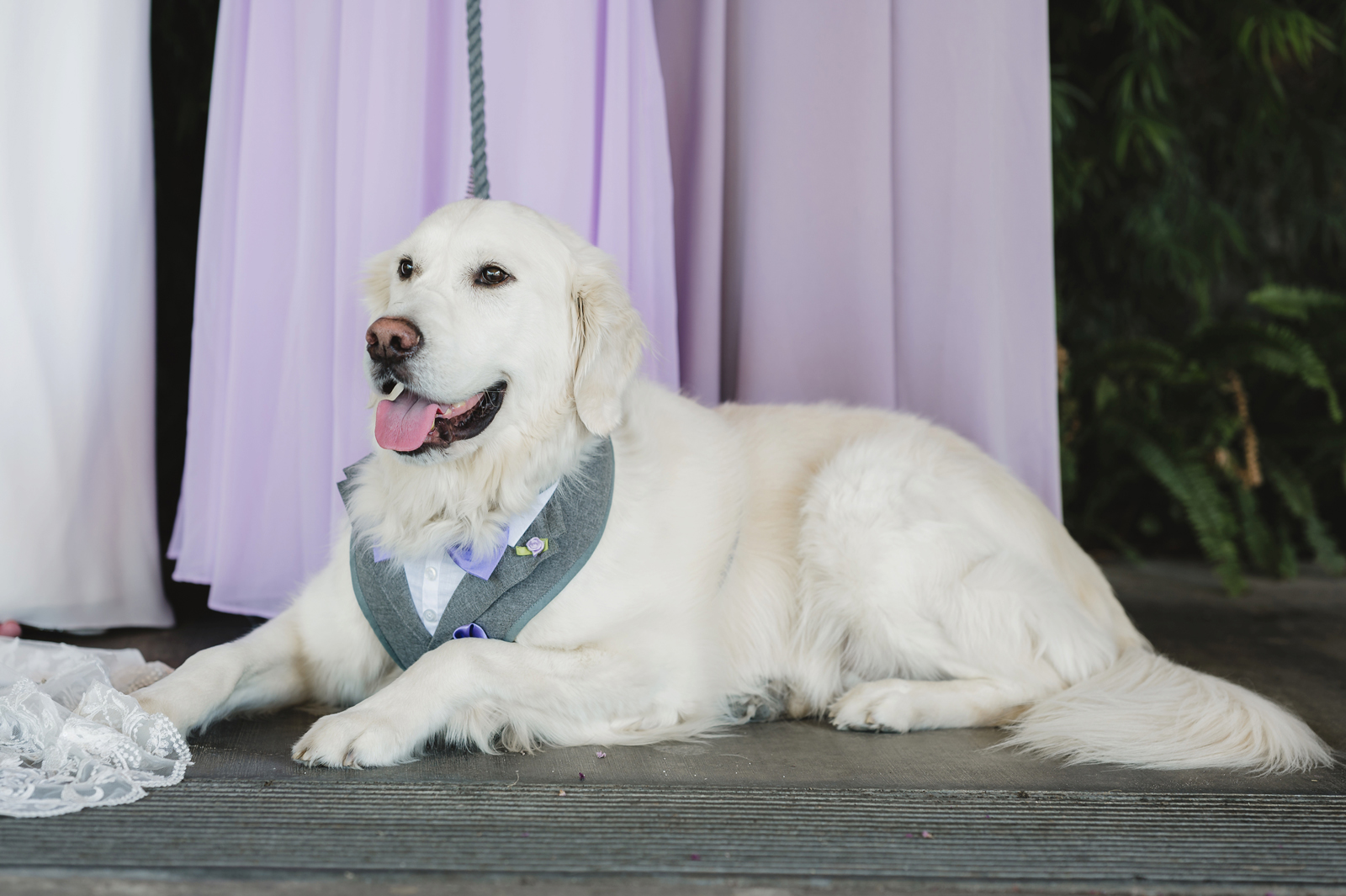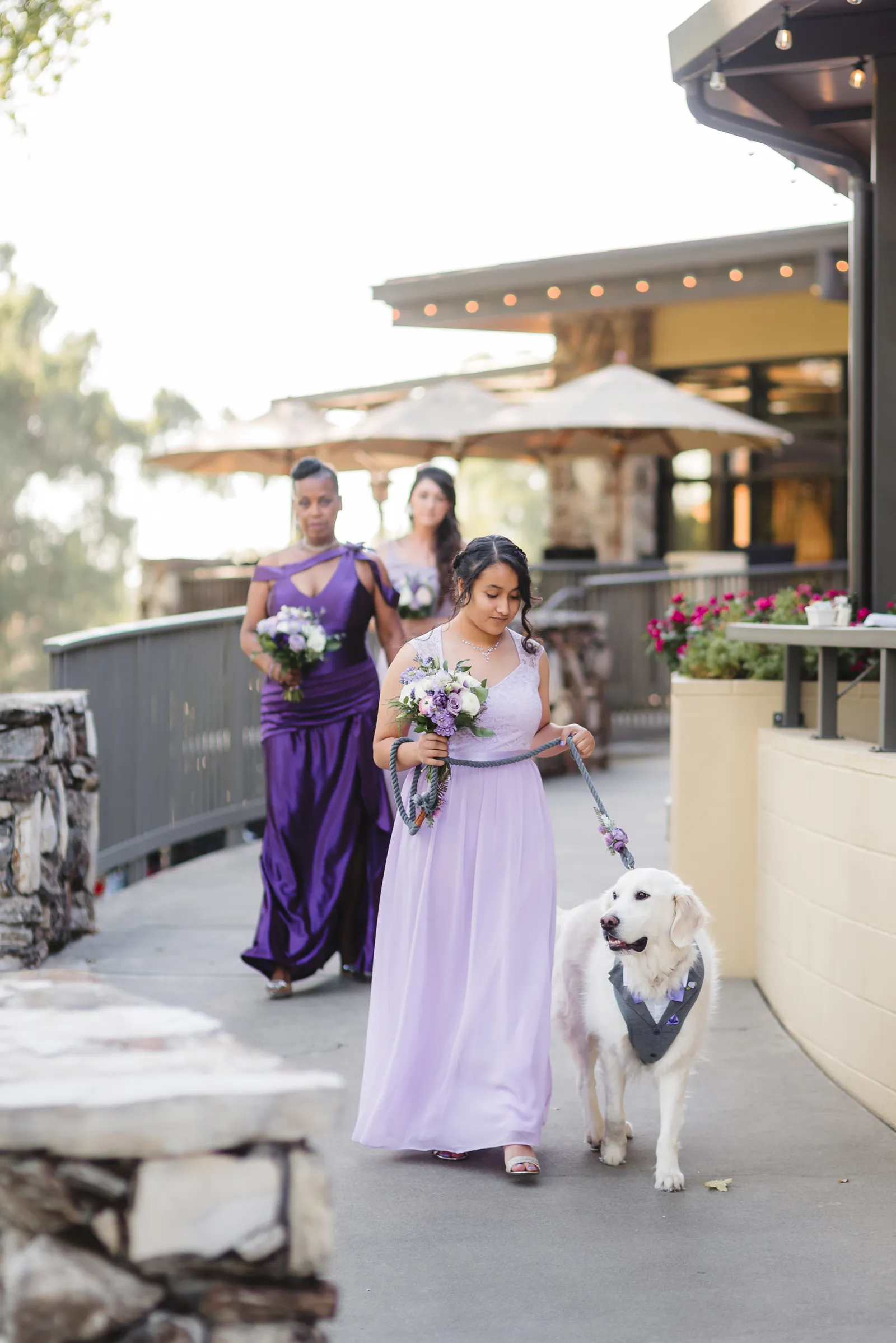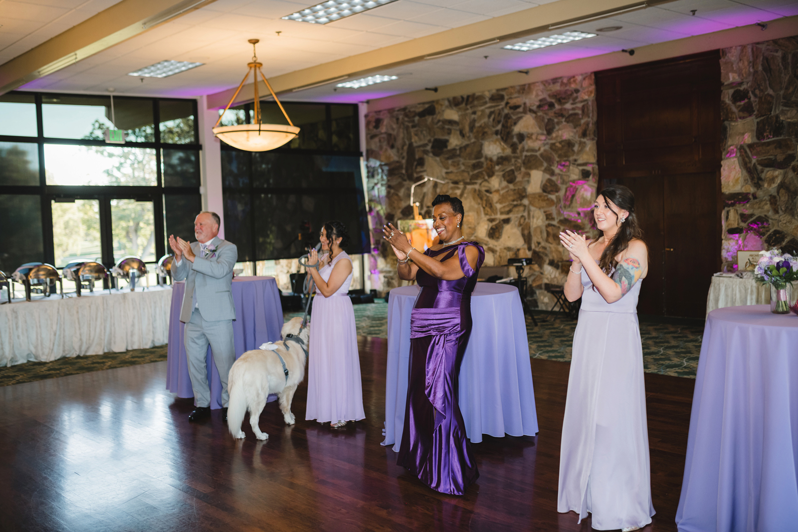 Gayliene: When the wedding party was introduced, the flower girl and our dog, Shasta, came into the ballroom to “Who Let the Dogs Out!” The place was roaring!