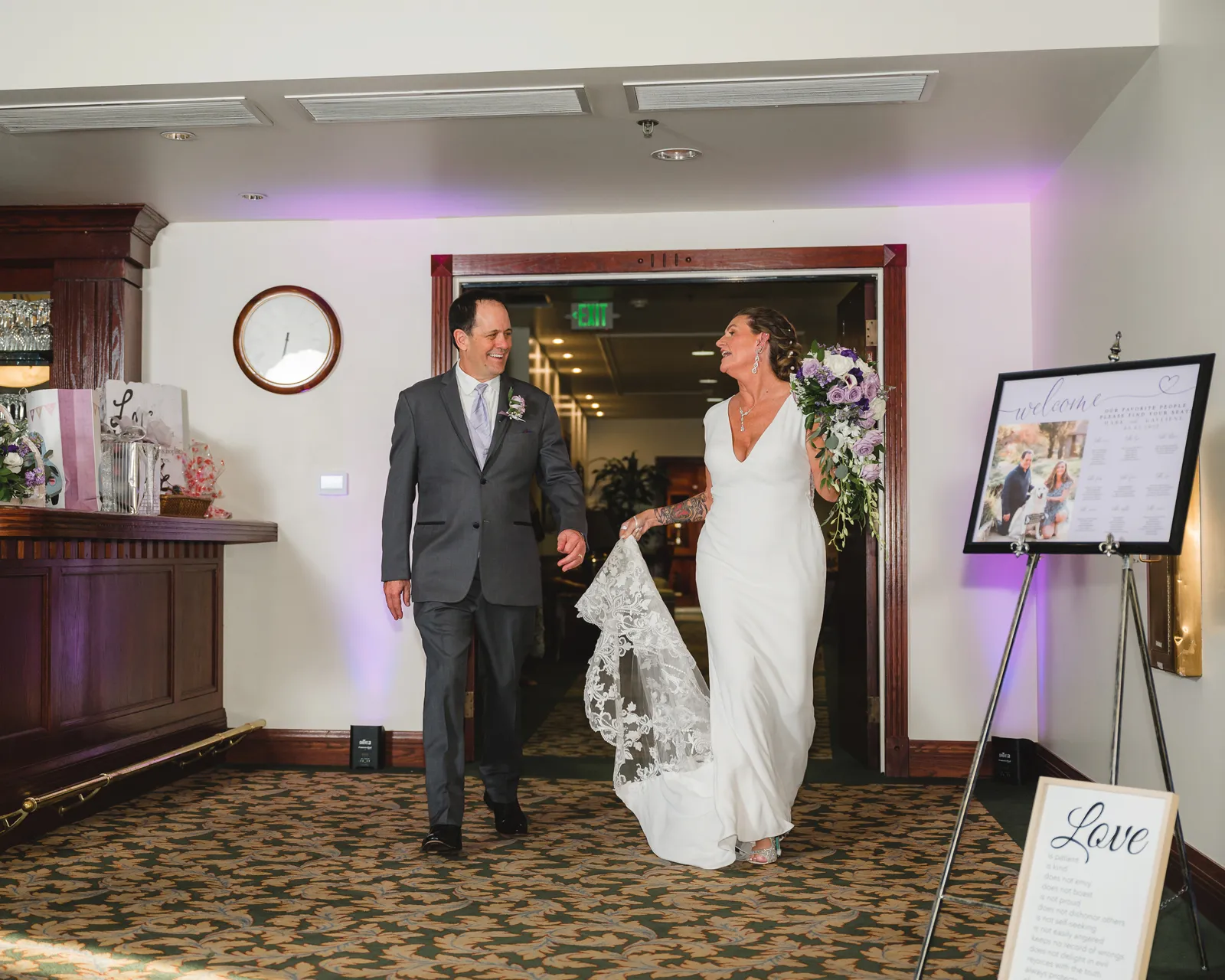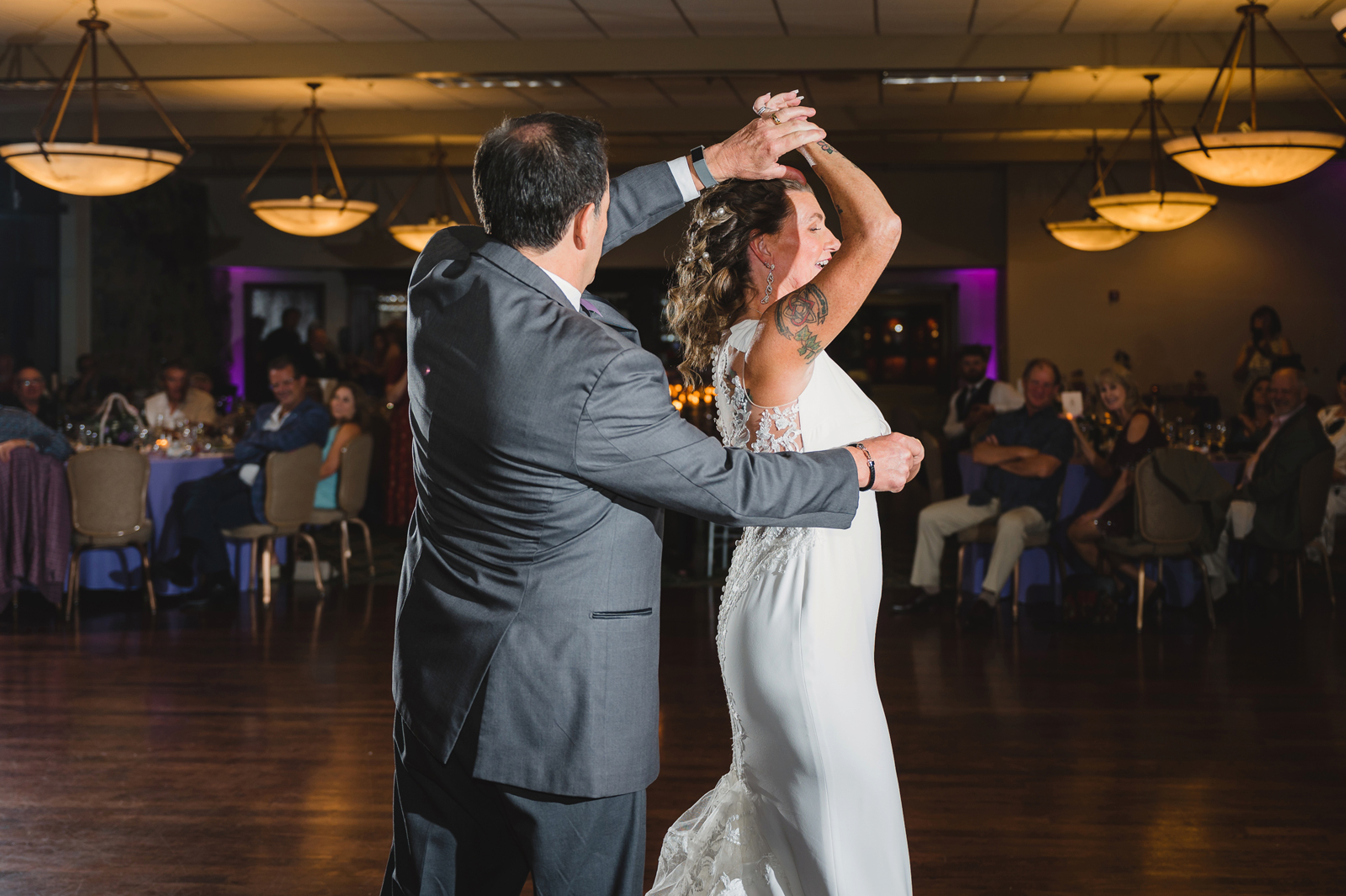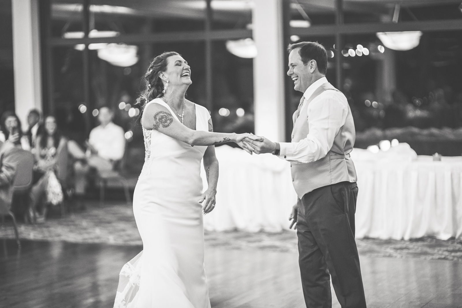 Gayliene: When the wedding party was introduced, the flower girl and our dog, Shasta, came into the ballroom to “Who Let the Dogs Out!” The place was roaring!
