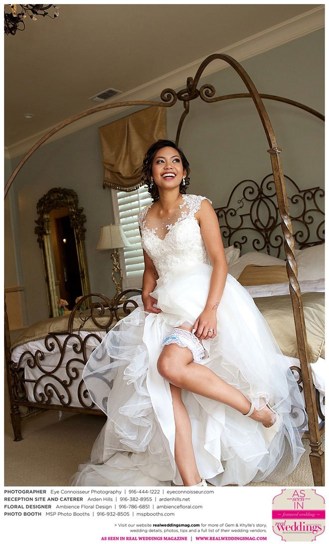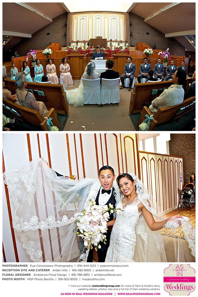 When Khylle came home from deployment the following April, the couple decided to plan a church wedding with their family and friends. “We are devoted to our church and have strong faith,” Gem says, so it was only fitting that they married in front of 200 guests at the Church of Christ in Sacramento.