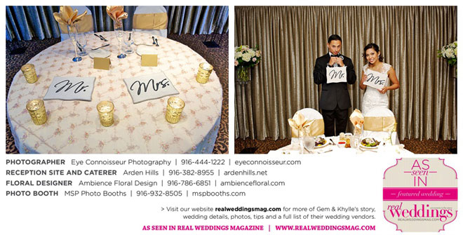 Gem, a student majoring in nutrition at CSUS and Khylle, a staff sergeant in the U.S. Air Force, met in December 2011, started dating in July 2012, and got engaged in July 2013. They married at the Sacramento Courthouse in front of her and his respective parents in September 2013, since the groom was being deployed to Kuwait for six months.