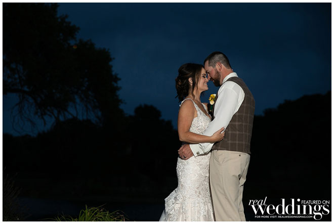 They chose to have their wedding at Dodasa Ranch, a breathtaking venue according to the bride. “It was under a huge oak tree with a beautiful lavender field behind it,” she says. “It was everything we were hoping to find.”