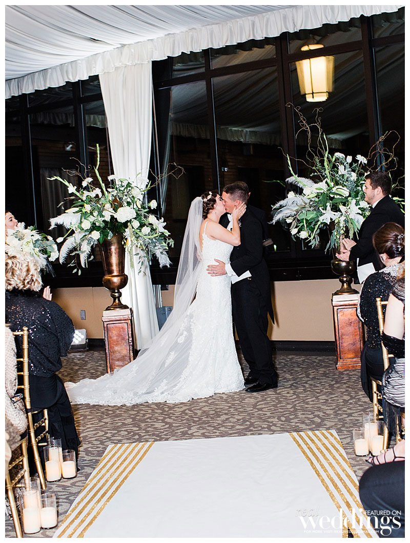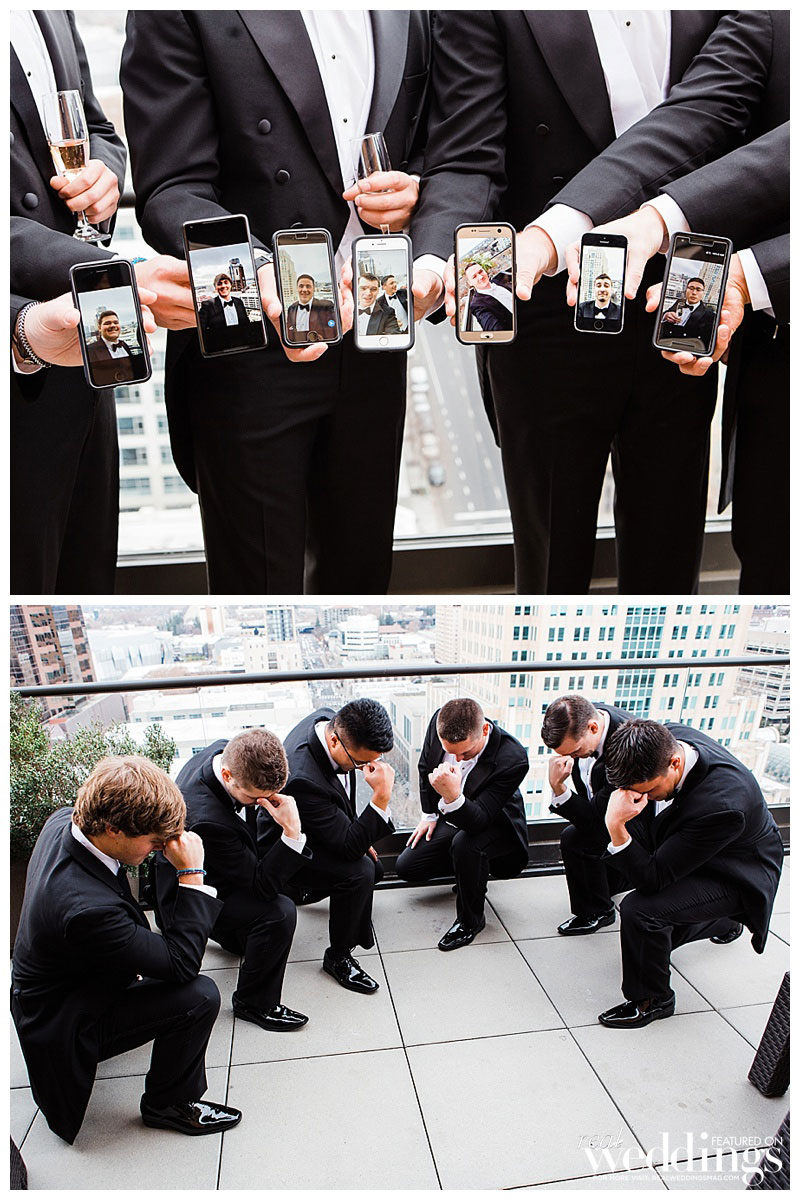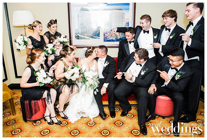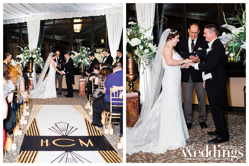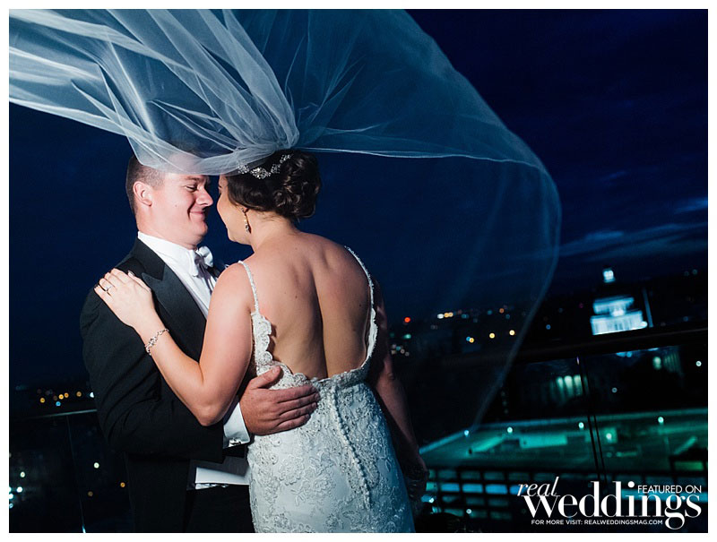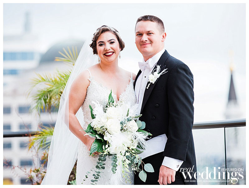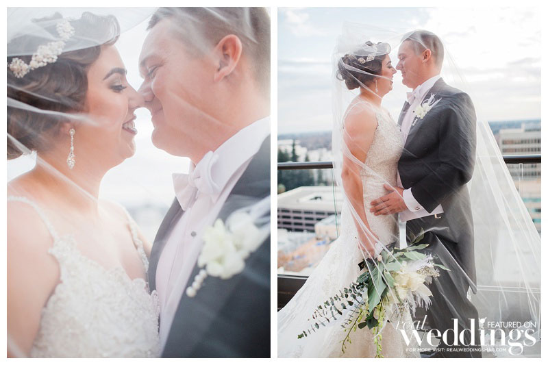 With the Capitol in full view, the couple exchanged vows in a simple but beautiful ceremony at The Citizen Hotel. “We added in little personal touches to make the ceremony feel like us,” says Haley. “From the custom aisle runner with our initials to the snow falling after our first kiss as husband and wife and dancing on the clouds during our reception (courtesy of the snow and fog machines from Mike at Creative Memories Entertainment), it was all just so magical. I even had a locket connected to my bouquet that had a photo of my great-grandmother, great-grandfather and grandfather on the inside. It really made me feel like they were there with us.”