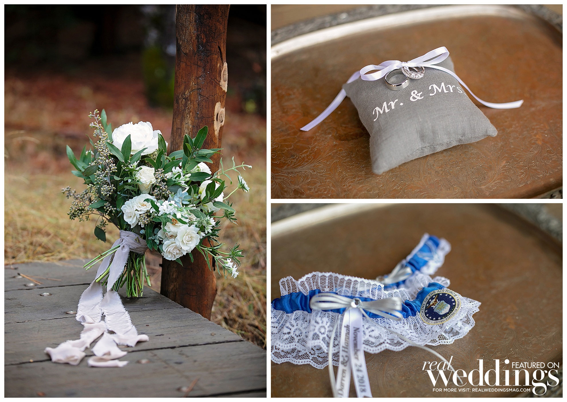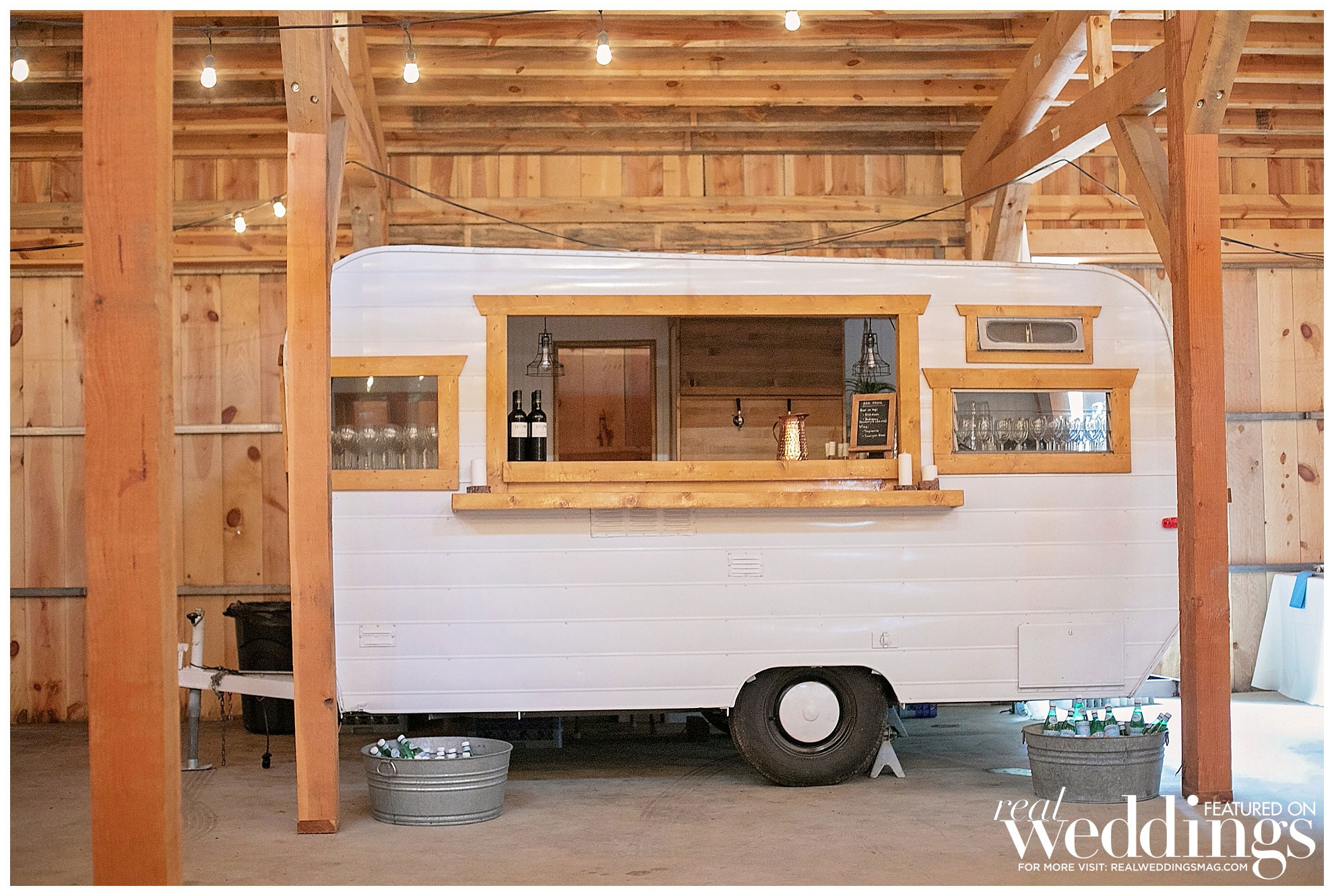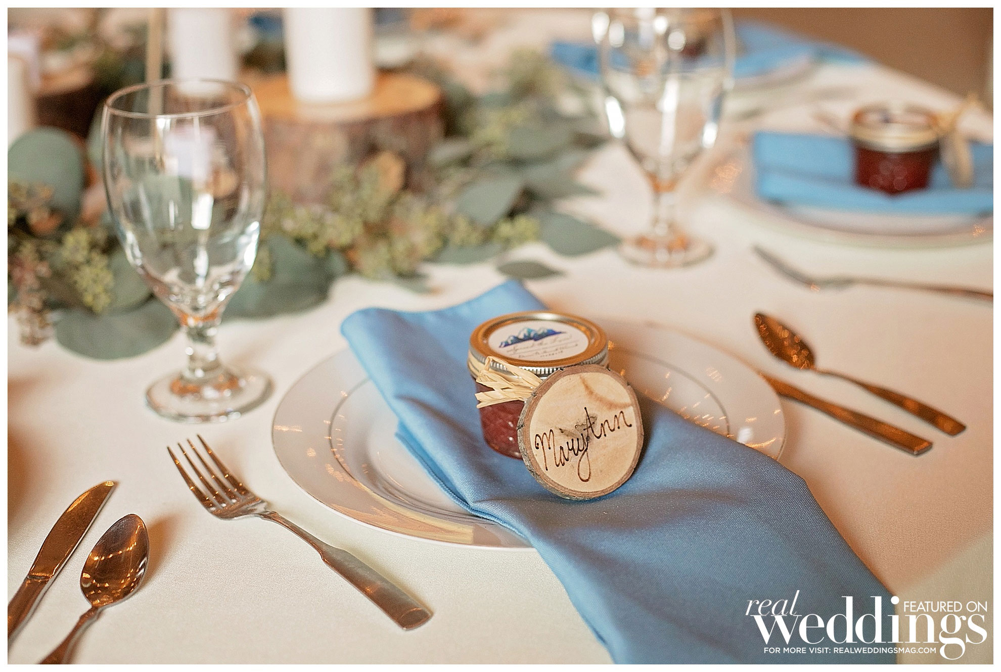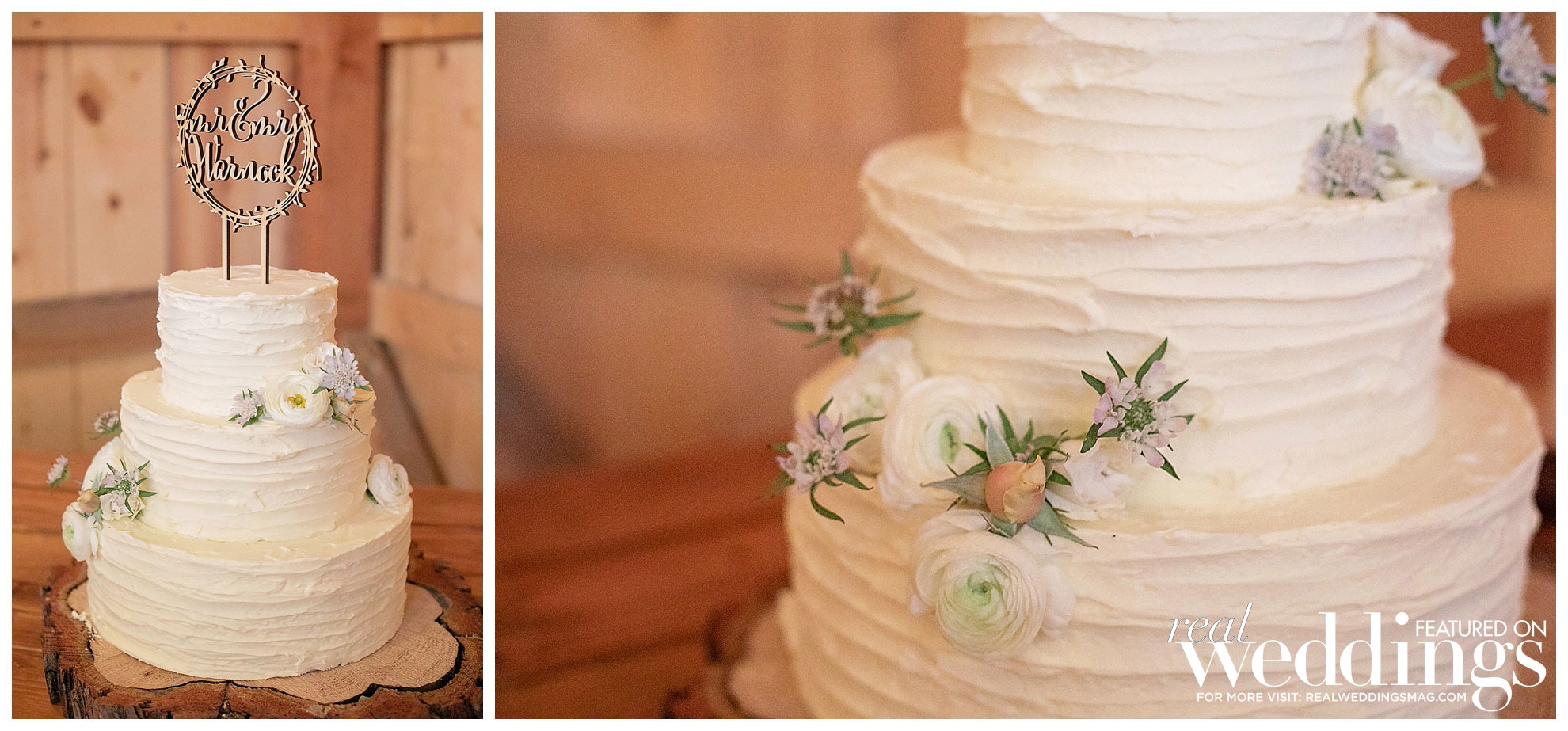 The 240 guests dined on a pasta bar, tri-tip, chicken and s’mores. Their rustically decorated cake featured three tiers with buttermilk frosting. It was completed with flowers and a personalized wood burned topper.