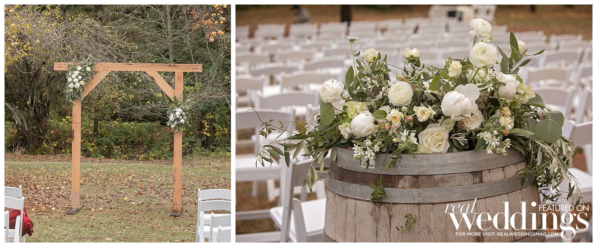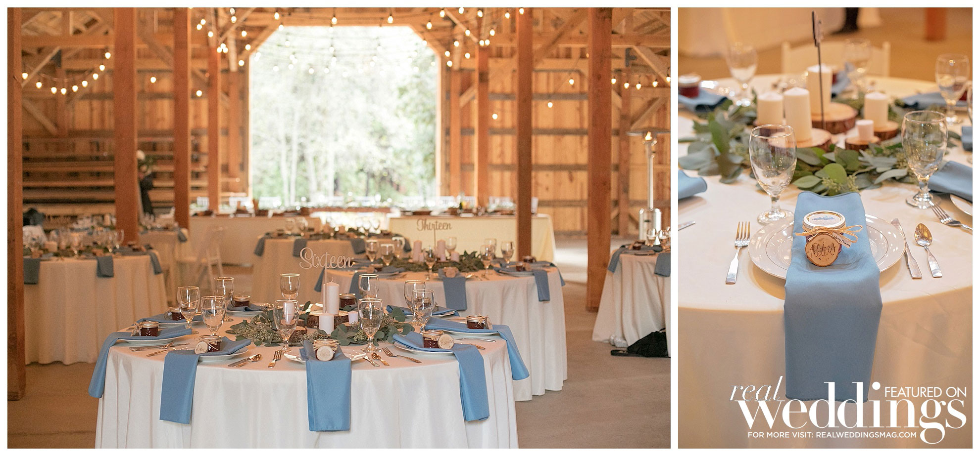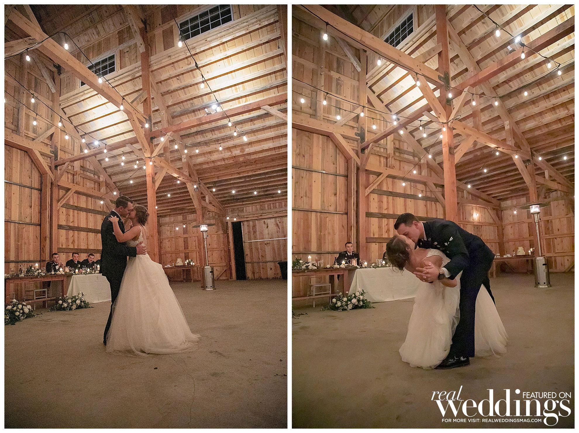 They held their reception in a barn that has special significance to the couple—growing up, they both often passed the barn as it was being built. “It would be Darren’s dream house and our dream to have a cabin like that when we grow old,” says Hannah. “It just fit us, we grew up by it, and it was gorgeous just like our relationship.”