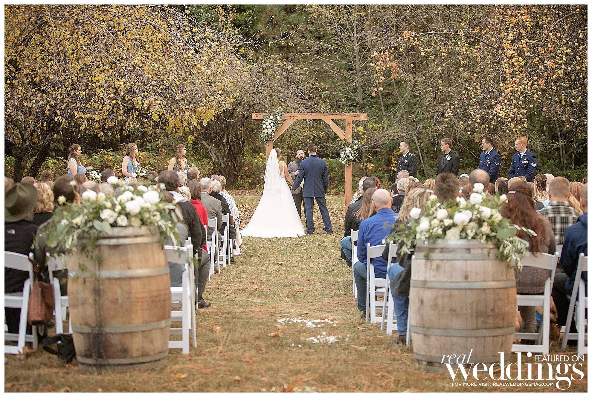 Before the wedding, Hannah had butterflies in her stomach but felt so much better when she saw her groom at the reveal. “I was so happy and relieved when we finally got to see each other,” she says. Darren says seeing Hannah was a “feeling unlike anything else. I quite literally was at a loss for words and couldn’t look at her enough.”