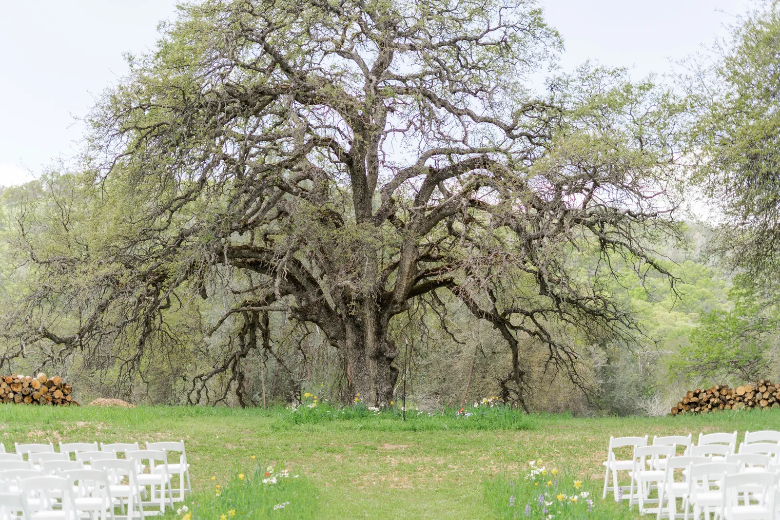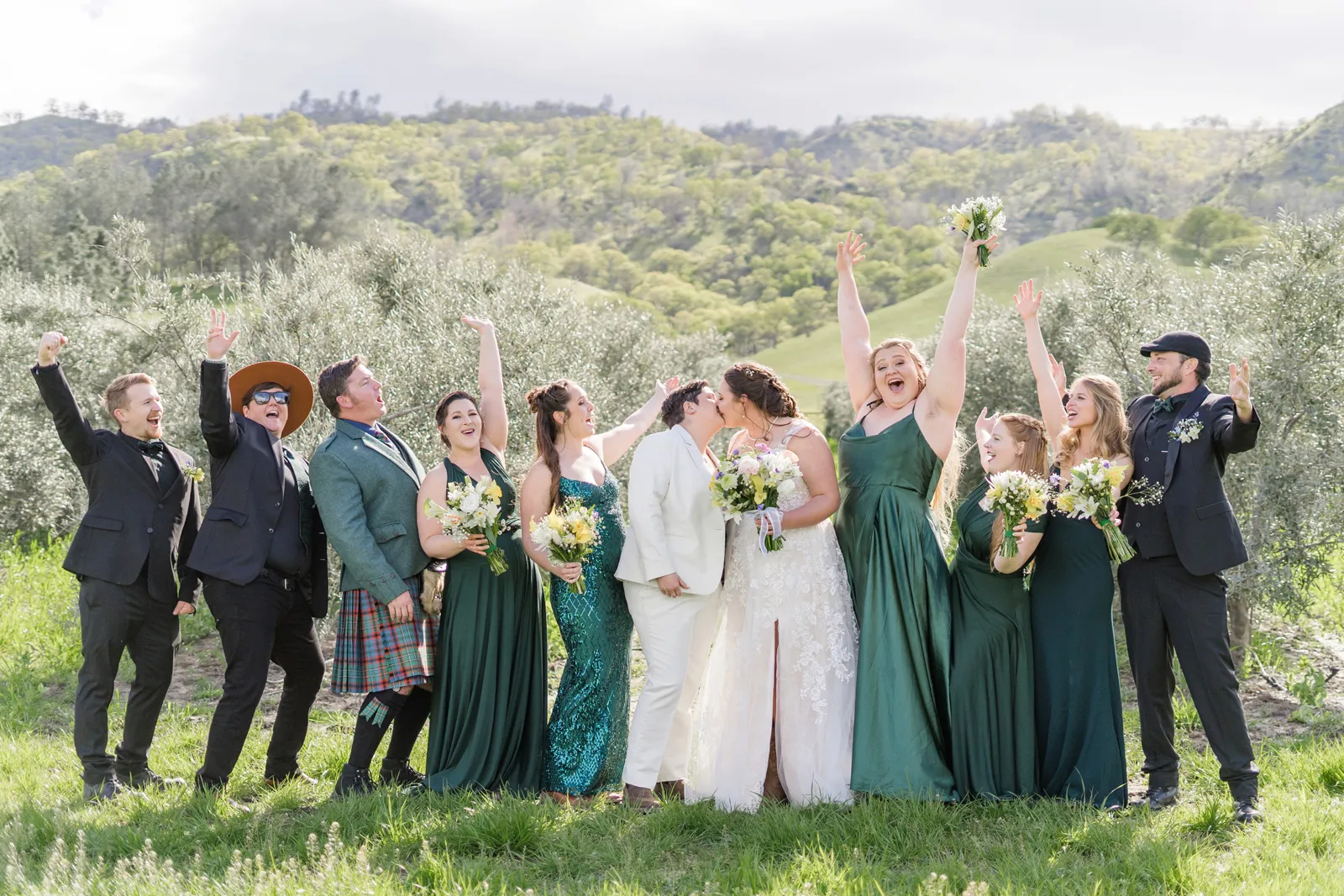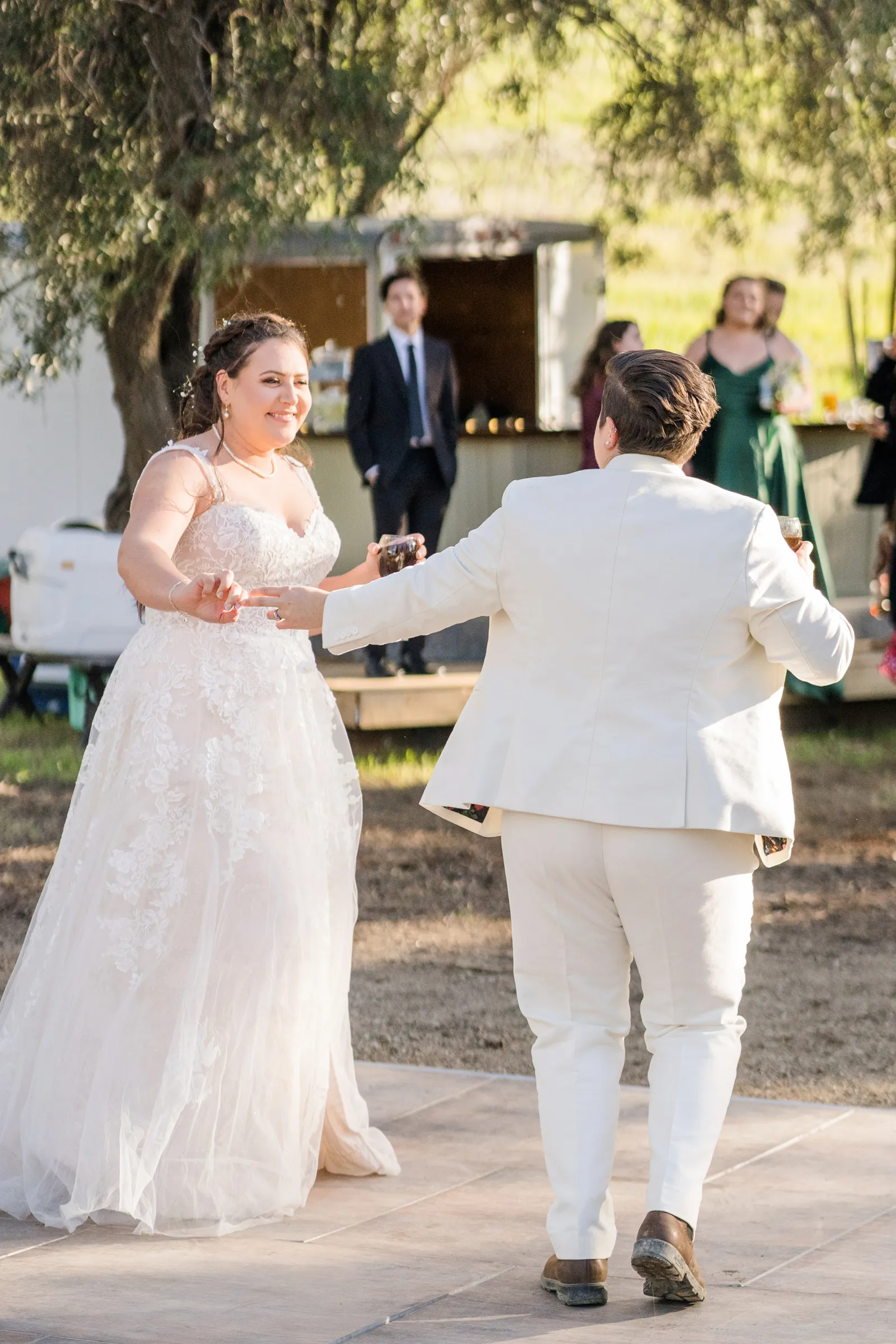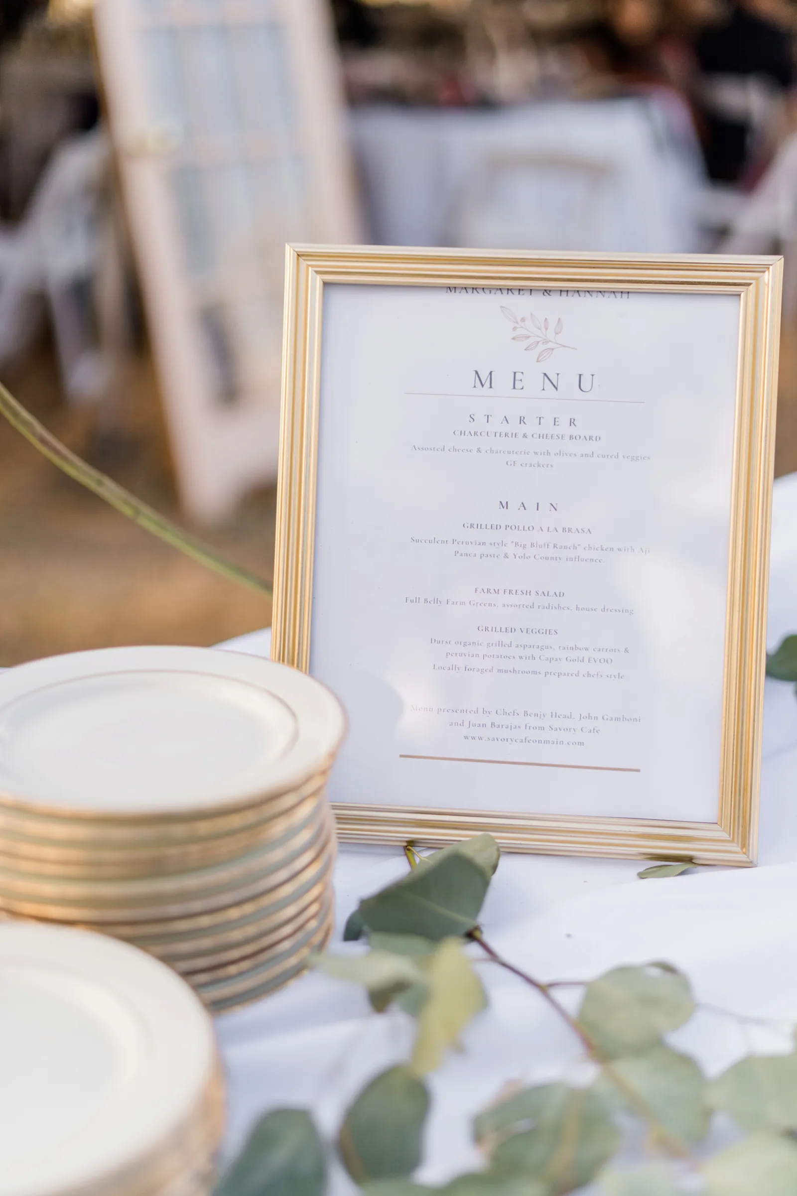 All of our food and desserts served were allergen free. We had kosher and halal options for some of our guests and had a focus on creating the most inclusive dining experience possible. Food was served family-style at each table on a lazy susan handmade for the event. Juan Barajas is the owner and operator of Savory Cafe and we chose him because he has a focus on farm-to-fork slow food that is grown local by our neighbors in the valley. Every ingredient was sourced from a farmer we know by name and the meal featured olive oil from our family farm: Capay Gold Olive Oil Company. Juan Barajas included wild mushrooms that our friends in Fort Bragg foraged for and sent special for the event.
