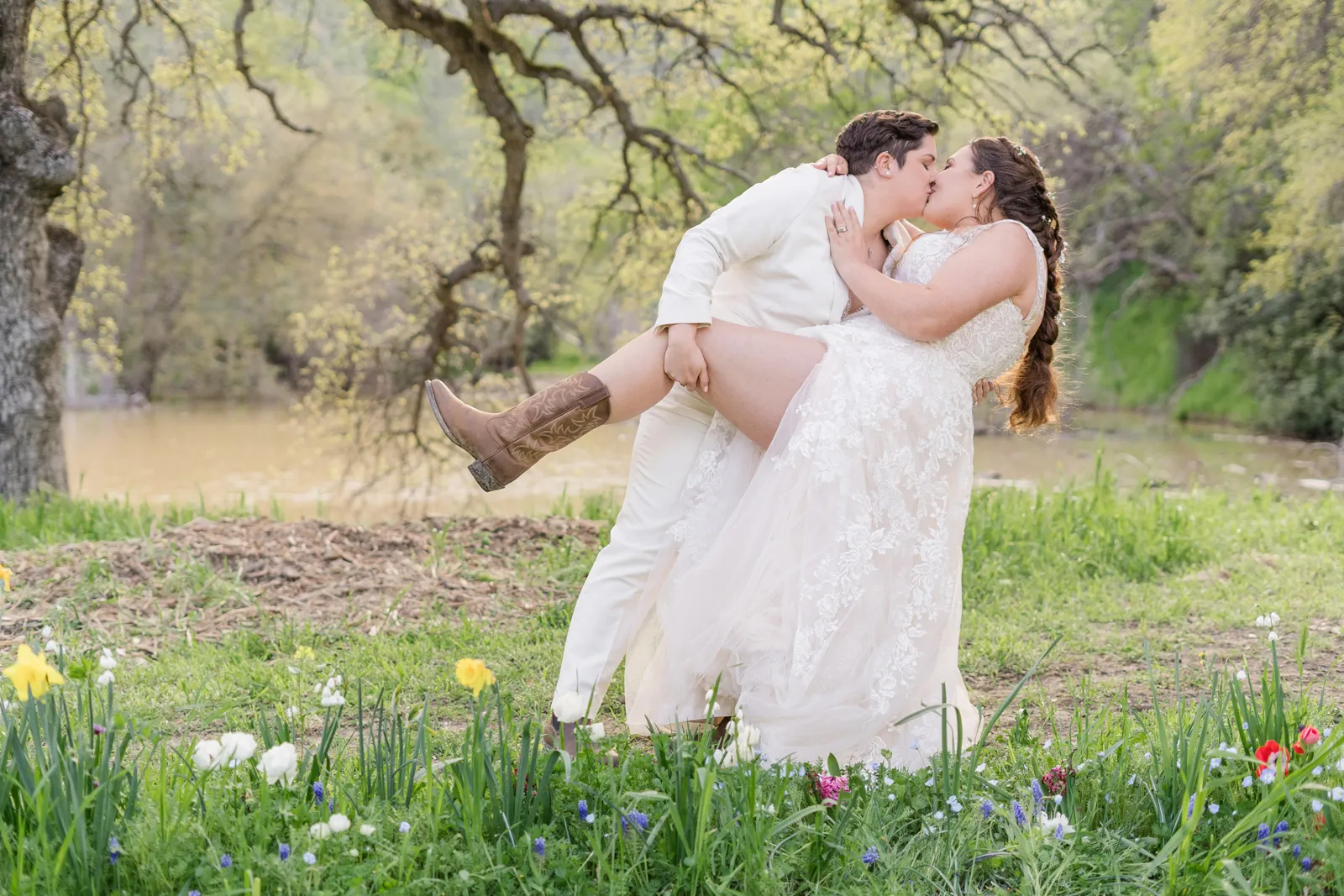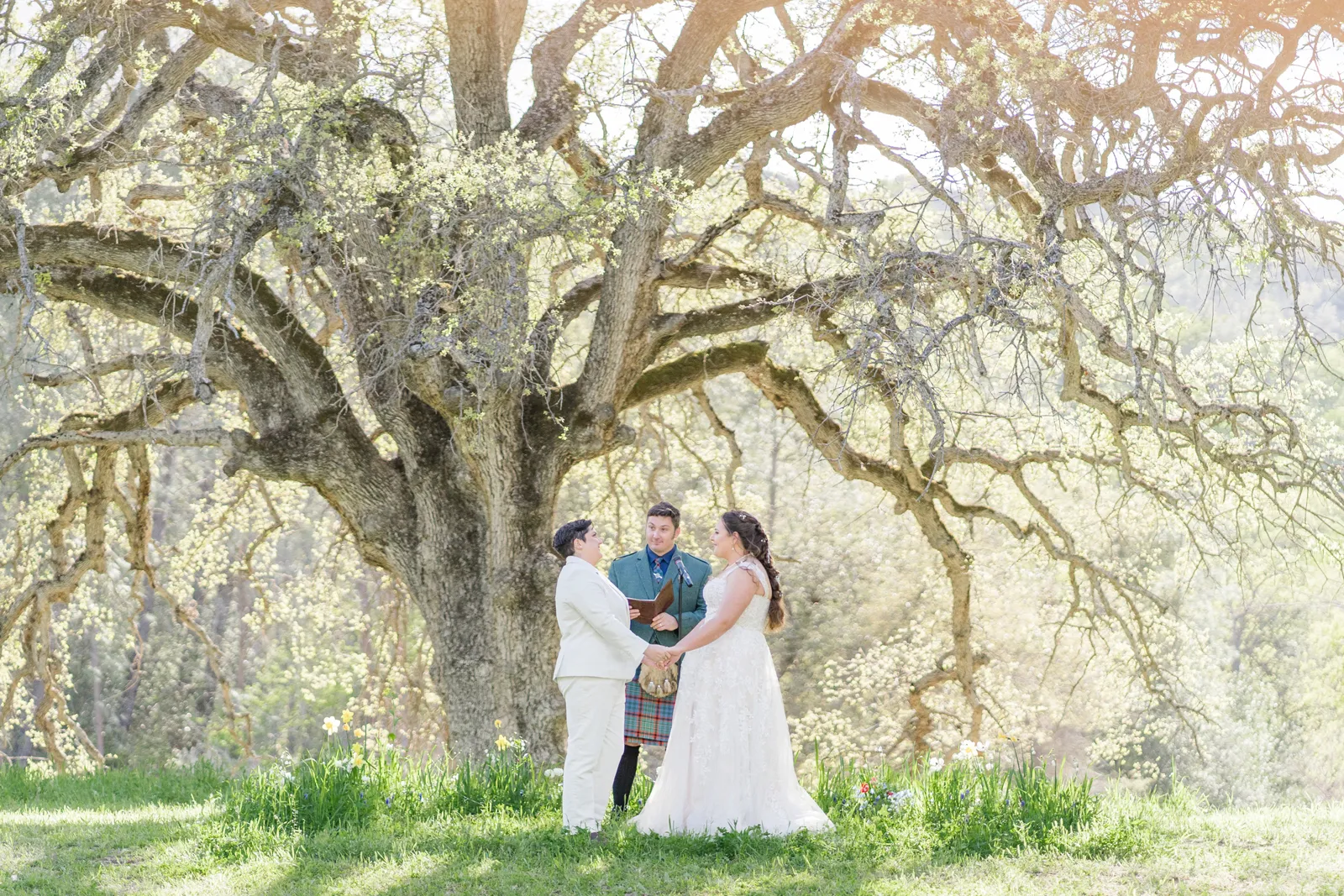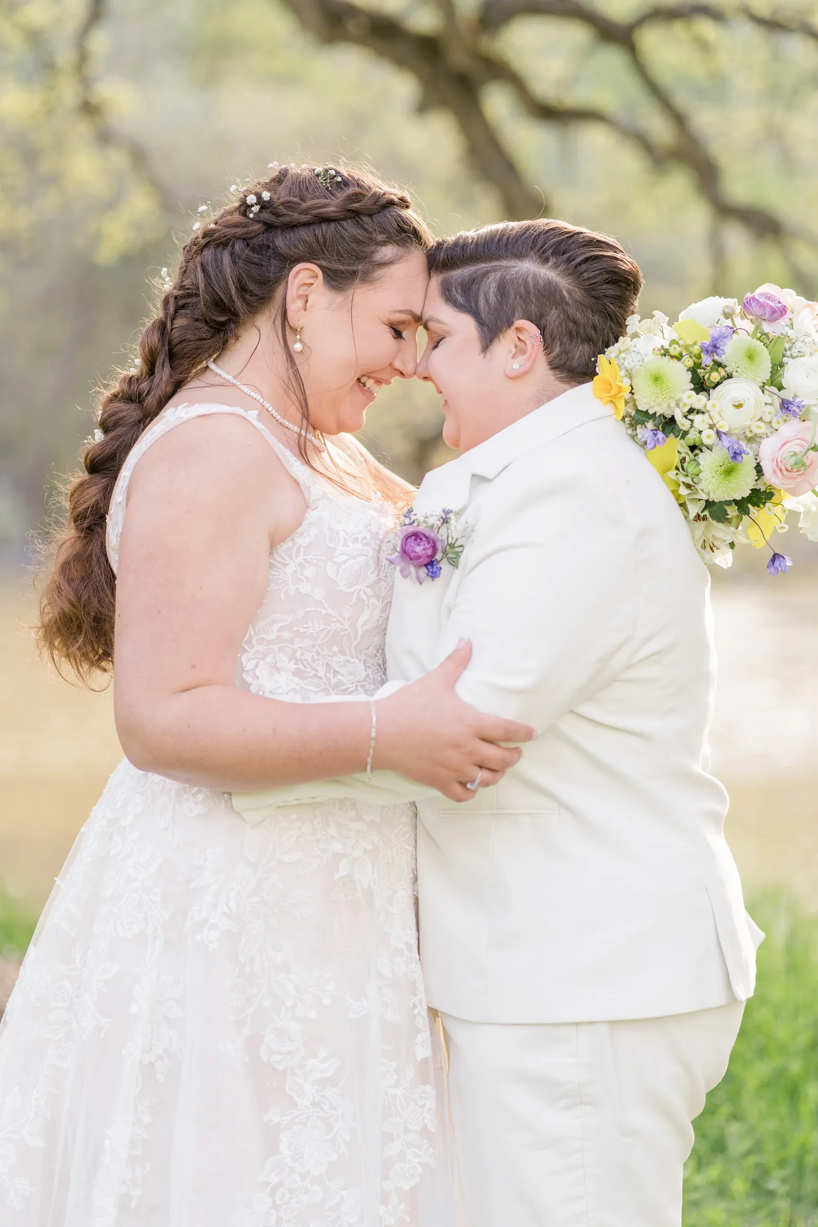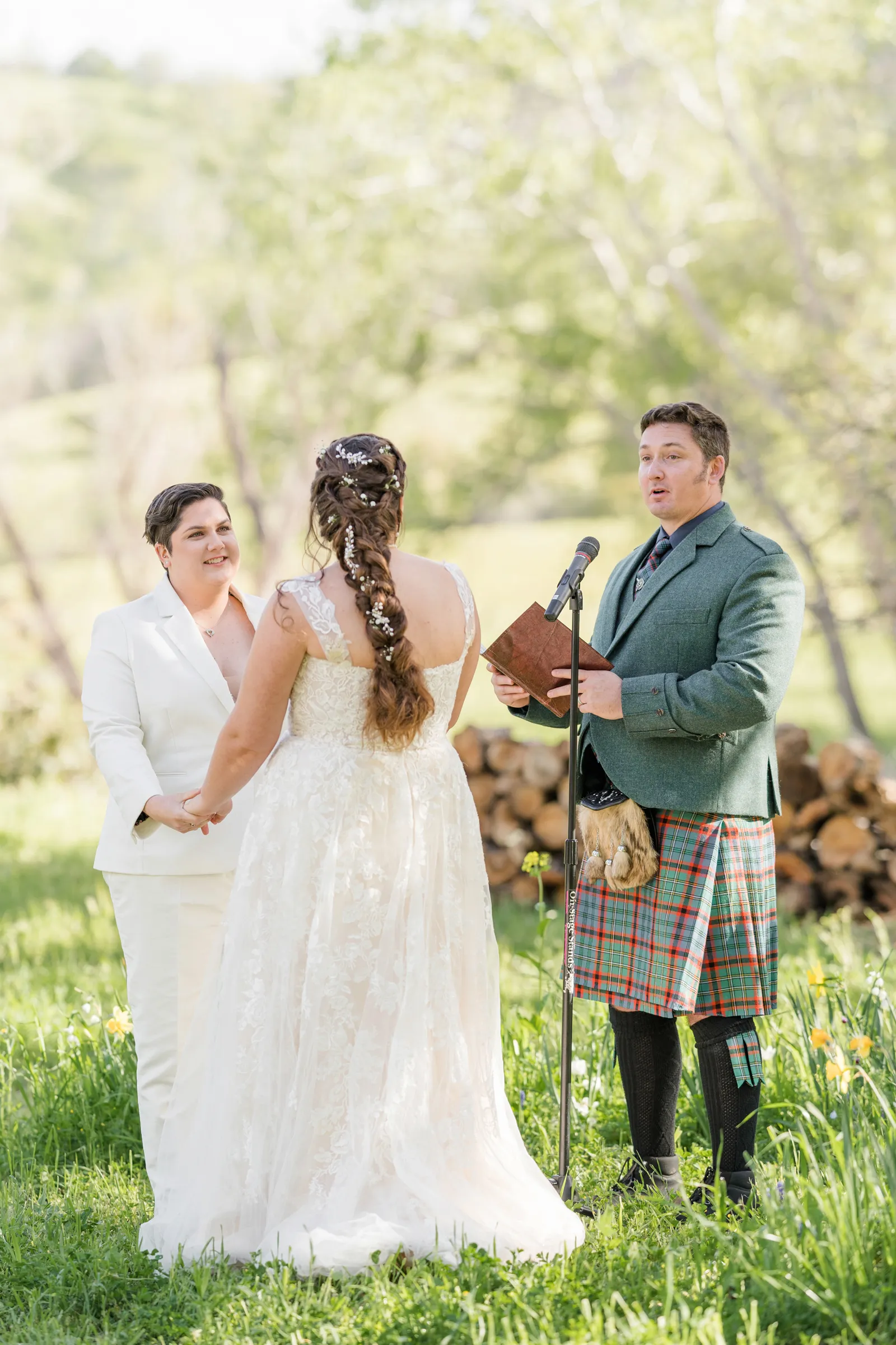 We wanted the ceremony to be short and sweet. One thing that people still comment on was how much they loved our vows! In truth, we wrote them 24 hours before the wedding and we kept them private until we shared them with each other and our loved ones during our ceremony. A unique aspect of our ceremony is that we gave ourselves away—we walked each other down the aisle. And for our reception, we forwent the gendered garter toss, bouquet toss and money dance. For every aspect of our wedding, we went with what felt right for us.
