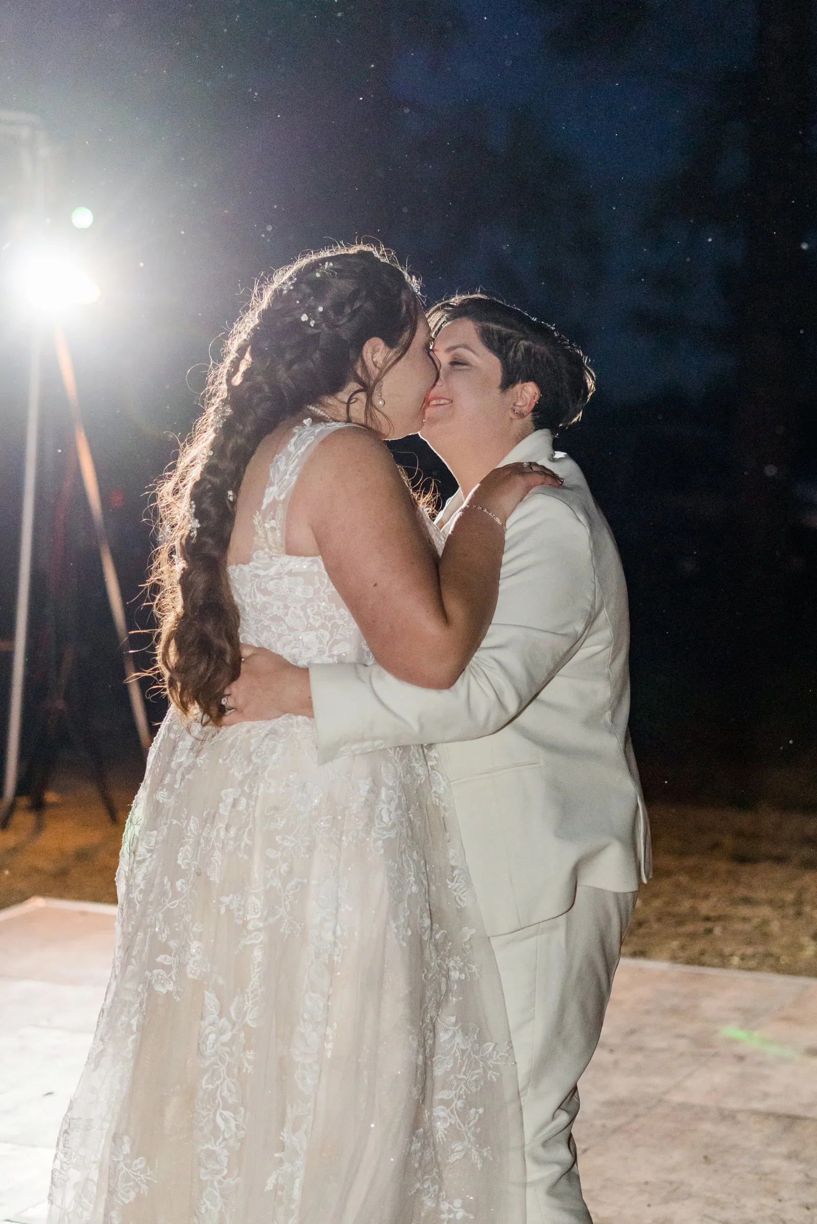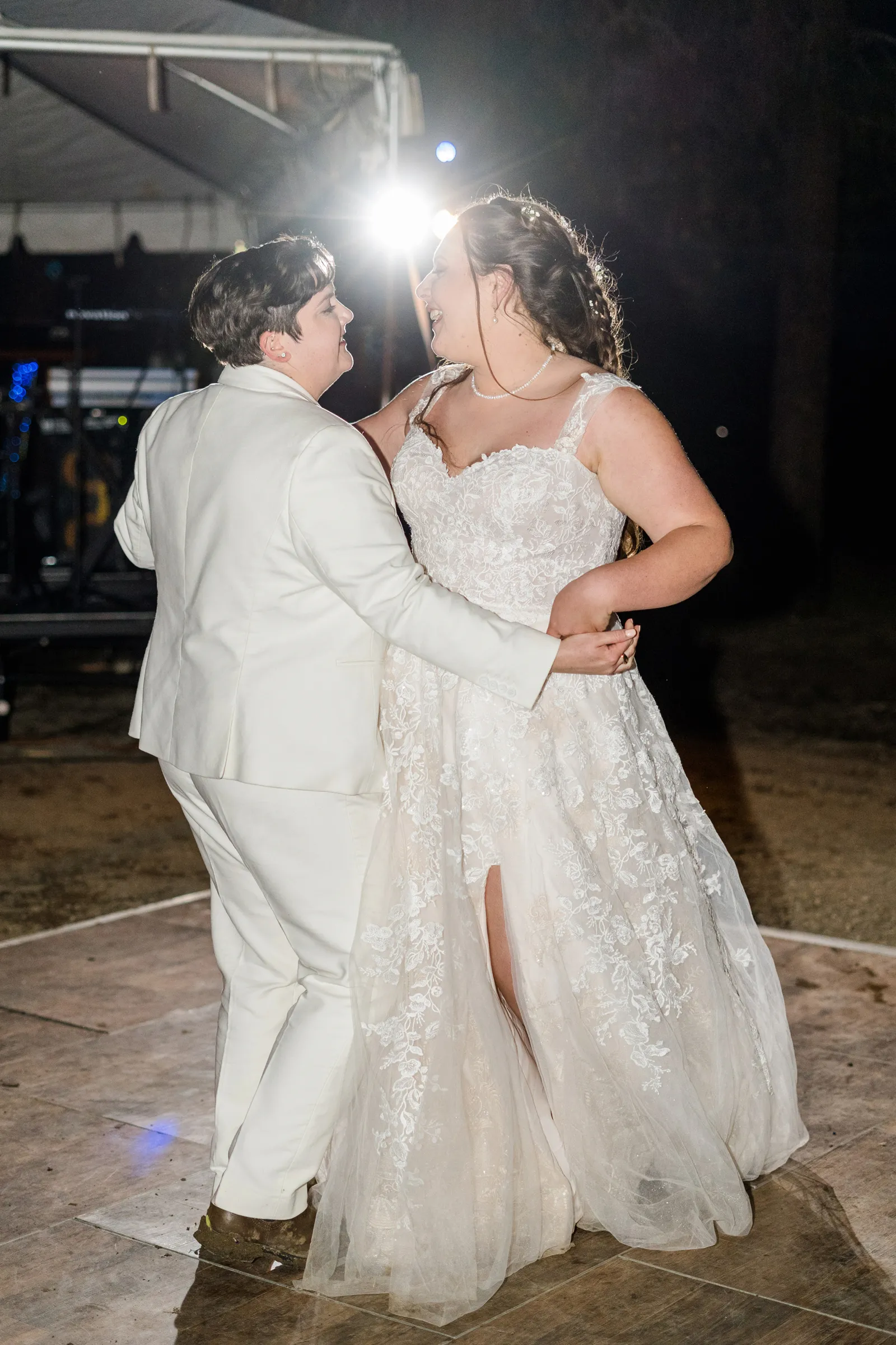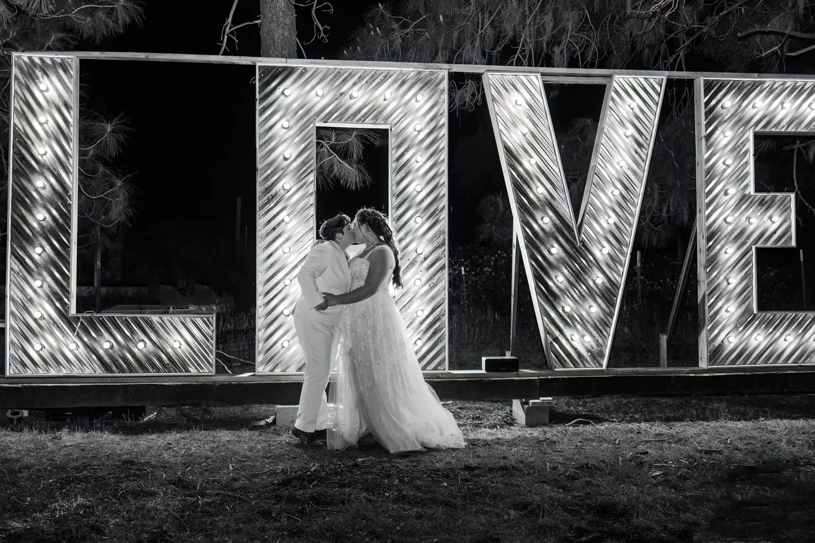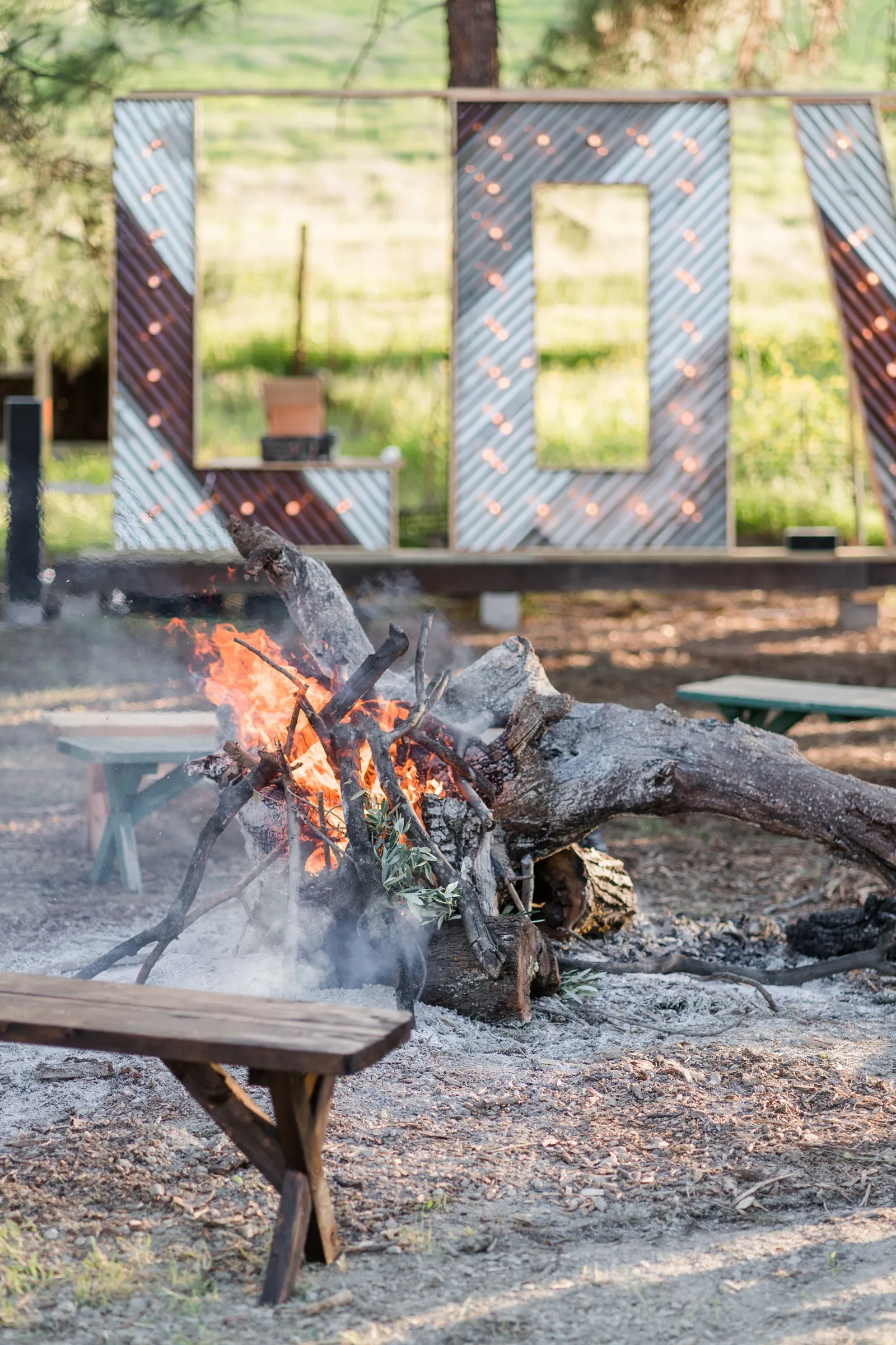 The biggest challenge of wedding planning was picturing what a space would look like before it was ever put together for the first time. We were working with a space that was originally a rundown mobile home and turned it into a pine tree-edged magical square with a 200-person tent, a bar, a stage and dance-floor, a LOVE sign with 20-foot letters, luxury portable trailers, a charcuterie table, cake table, gift table, a bonfire, and lighting to light the place up. Going with an experienced venue and team would have made this seamless but the way we did this has never been done before and was unique to our personal desires. We wanted no noise curfew, no additional time fees, and basically no rules. We hired inclusive security to make sure there were no problems and we really enjoyed having a layer of security to create a safe and inclusive place for ourselves and our guests.