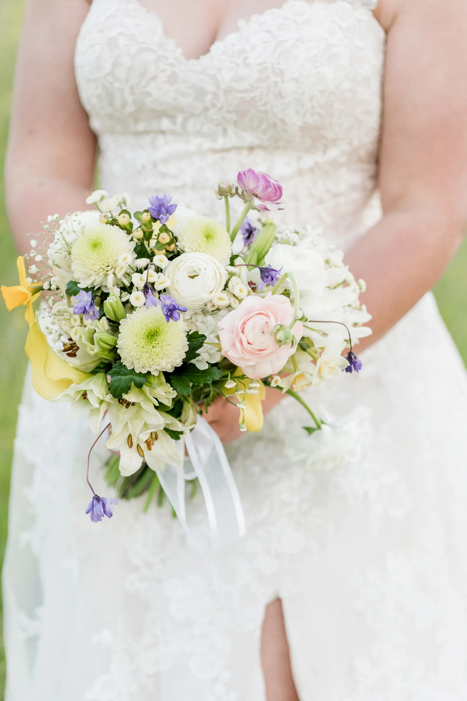 We grew our own flowers to create an aisle and altar area. With the help of friends and family we all planted seeds and bulbs and they magically came up right in time for our wedding. We saved thousands of dollars to create this effect by planting our own. Several were collected by the matron of honor to create pocket bouquets for those with suits.