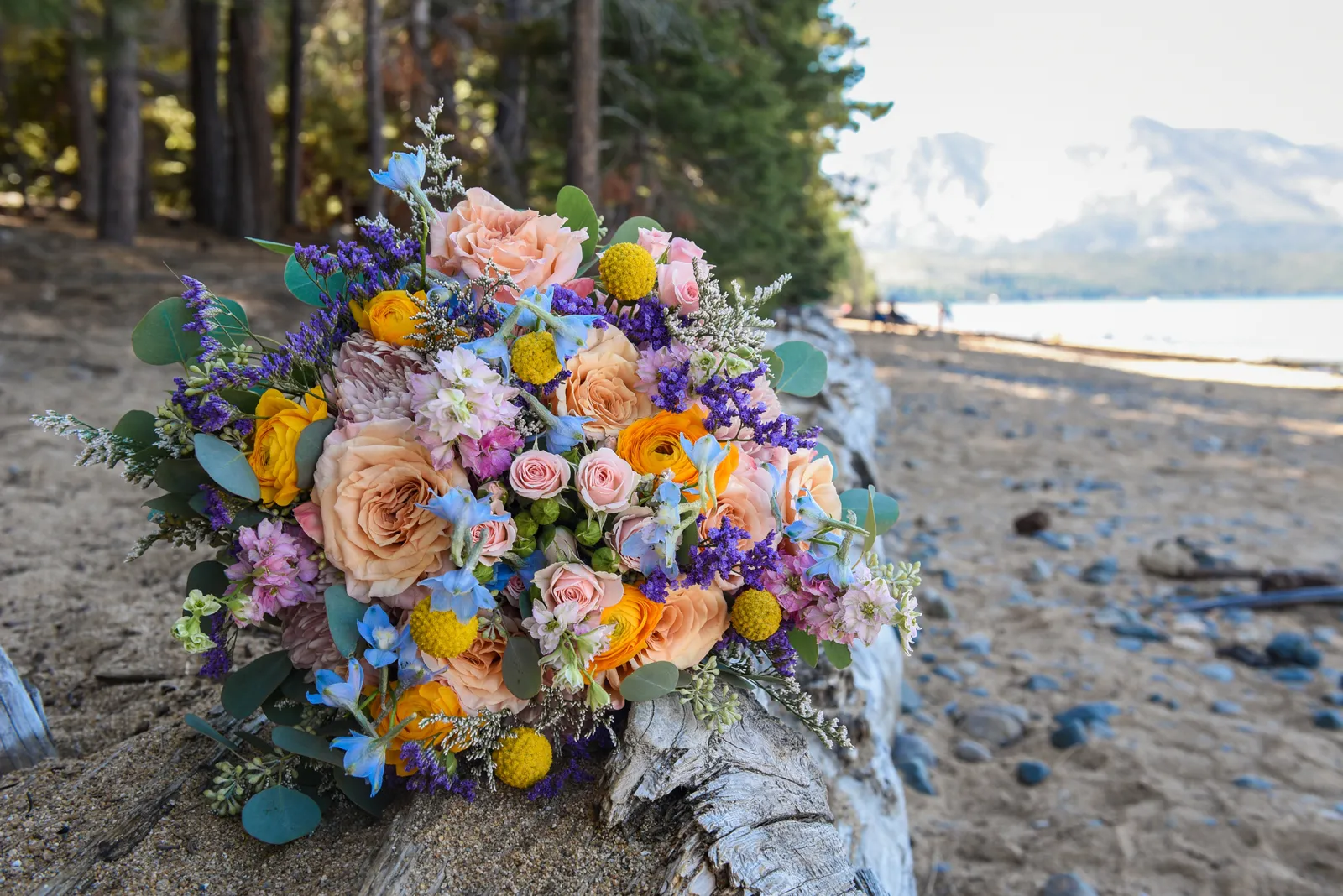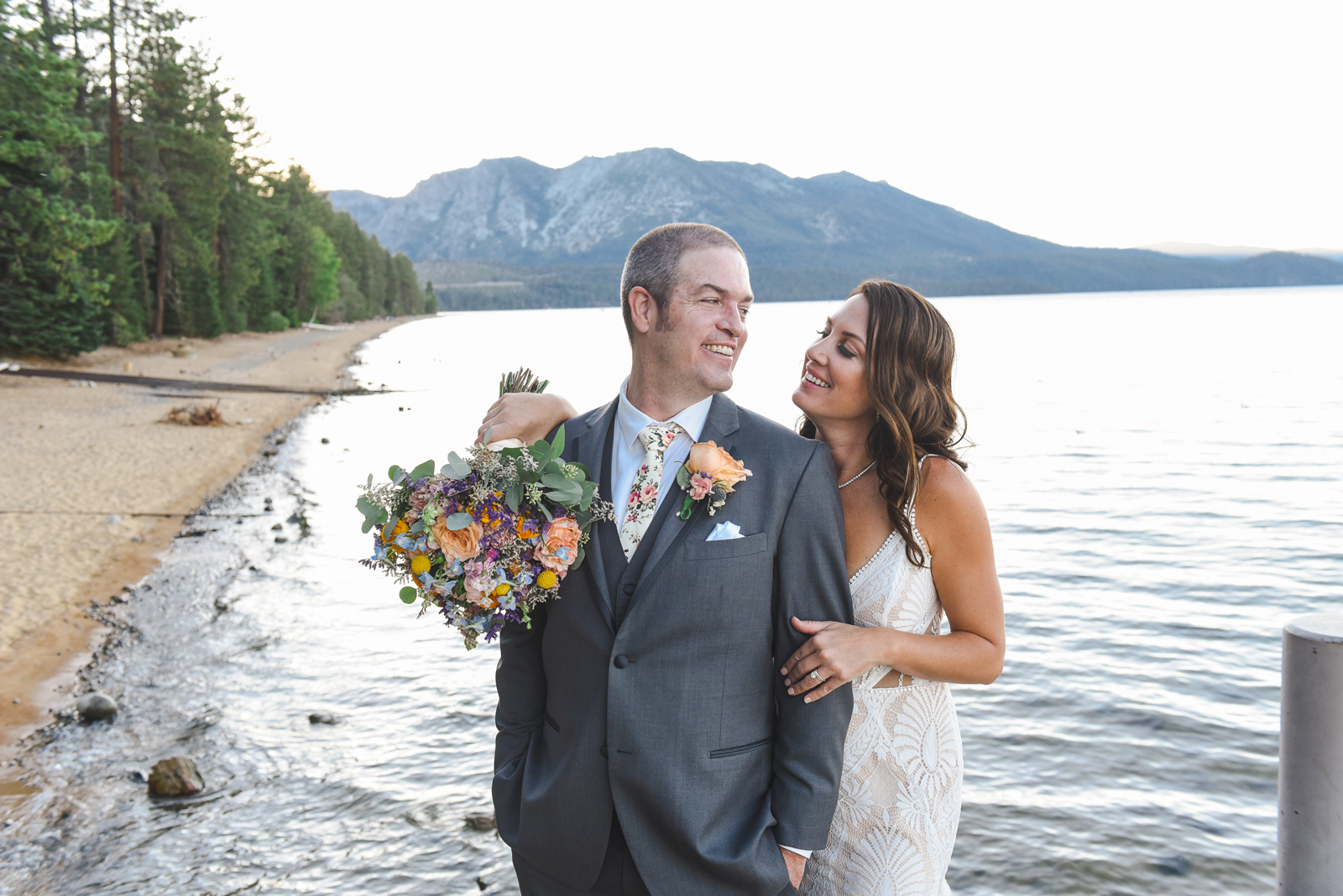 I knew I wanted the reception to be outside, and we both wanted to get married in Lake Tahoe. August is our favorite summertime month in Tahoe because the water is the perfect temperature.