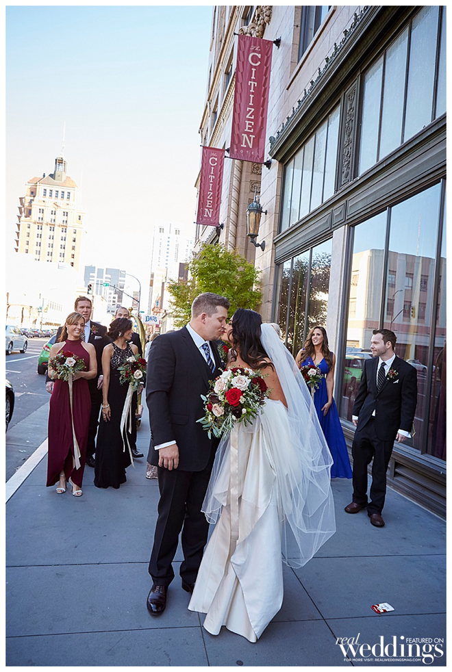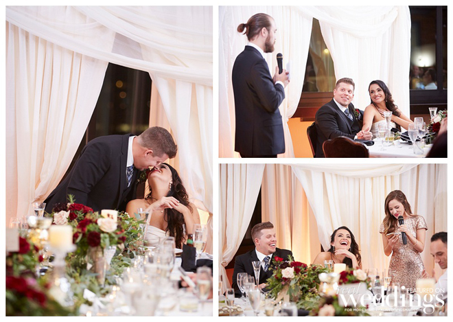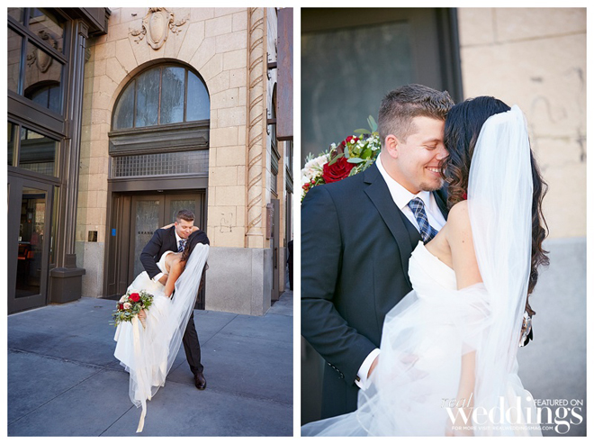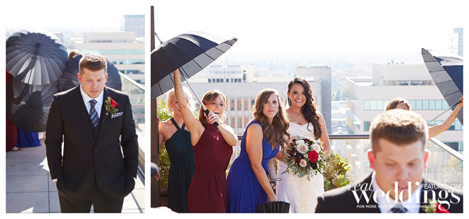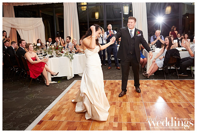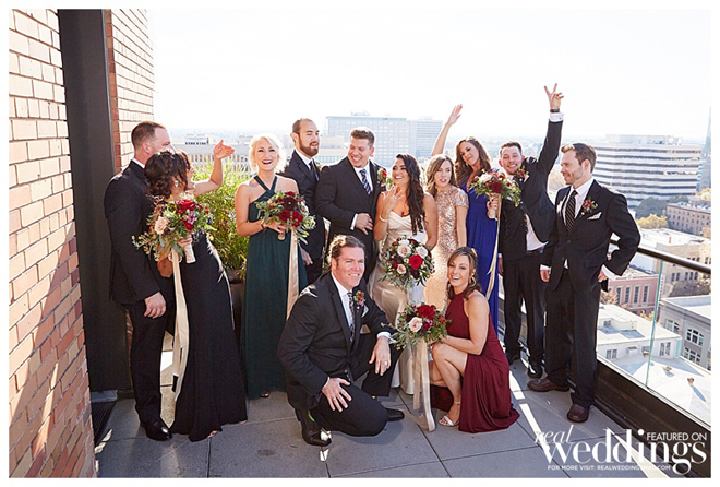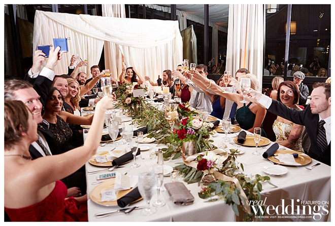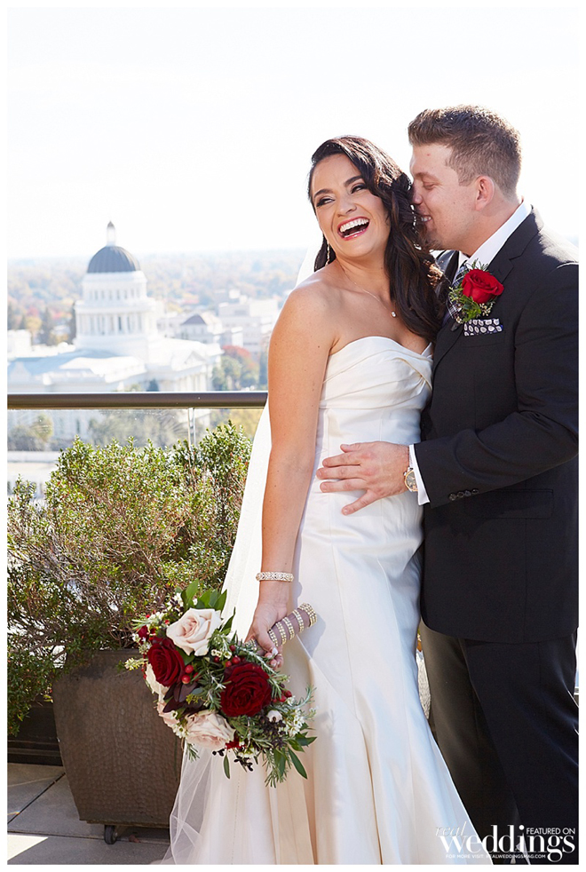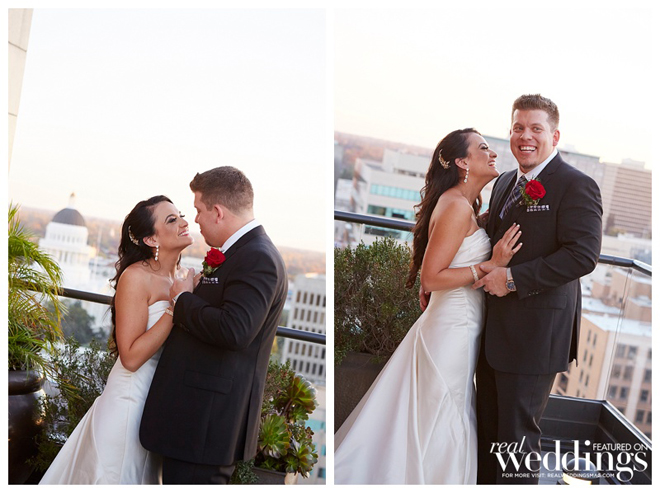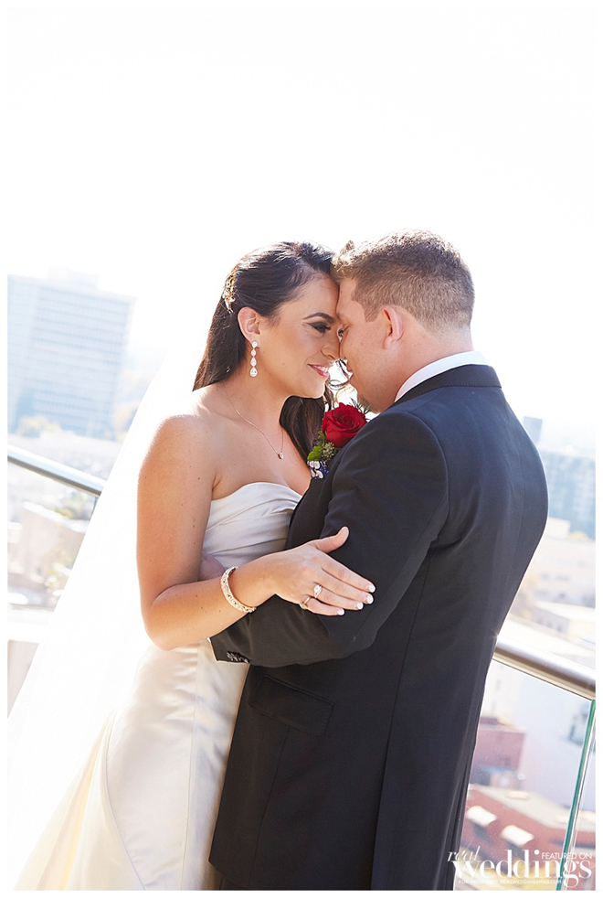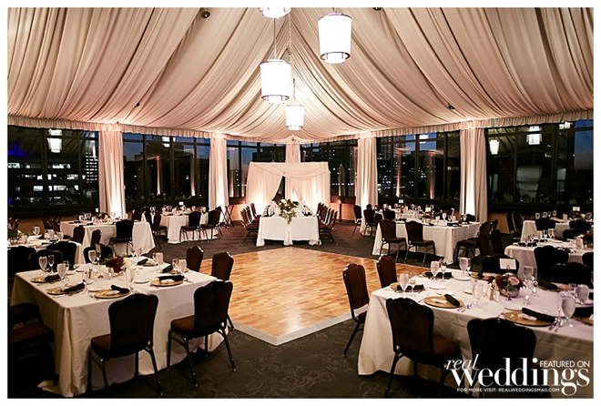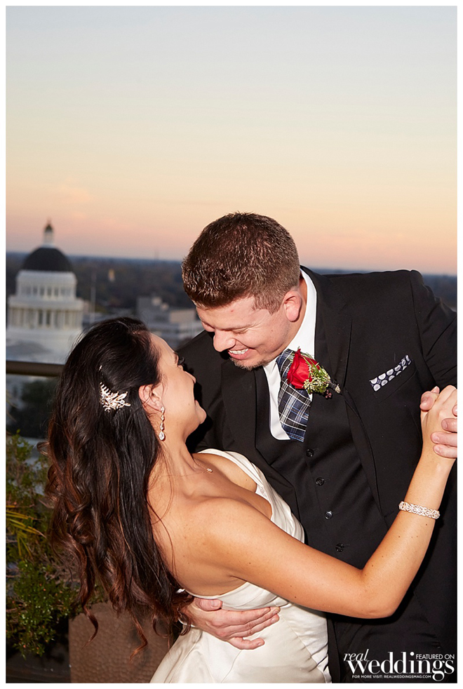 The reception took place in the same spot as the ceremony following a complete room transformation. The drapes were pulled back for a night view of the Capitol and the walls were uplit with a warm sunset color. “The room was filled with energy with lots of laughter, and was a complete change from the ceremony other than the lingering scents of the aromatics,” says Heidi. “The night seemed to fly by, but I will always remember our last dance with our eyes closed and reminiscing about what had just happened.”